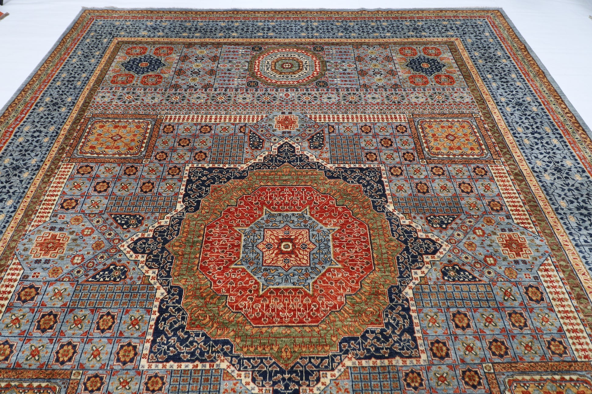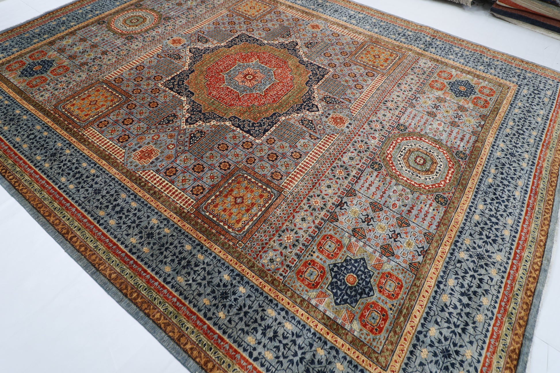 302 x 398 cm | Mamluk Gray Area Rug Afghan Hand Knotted veg Dye Wool carpet