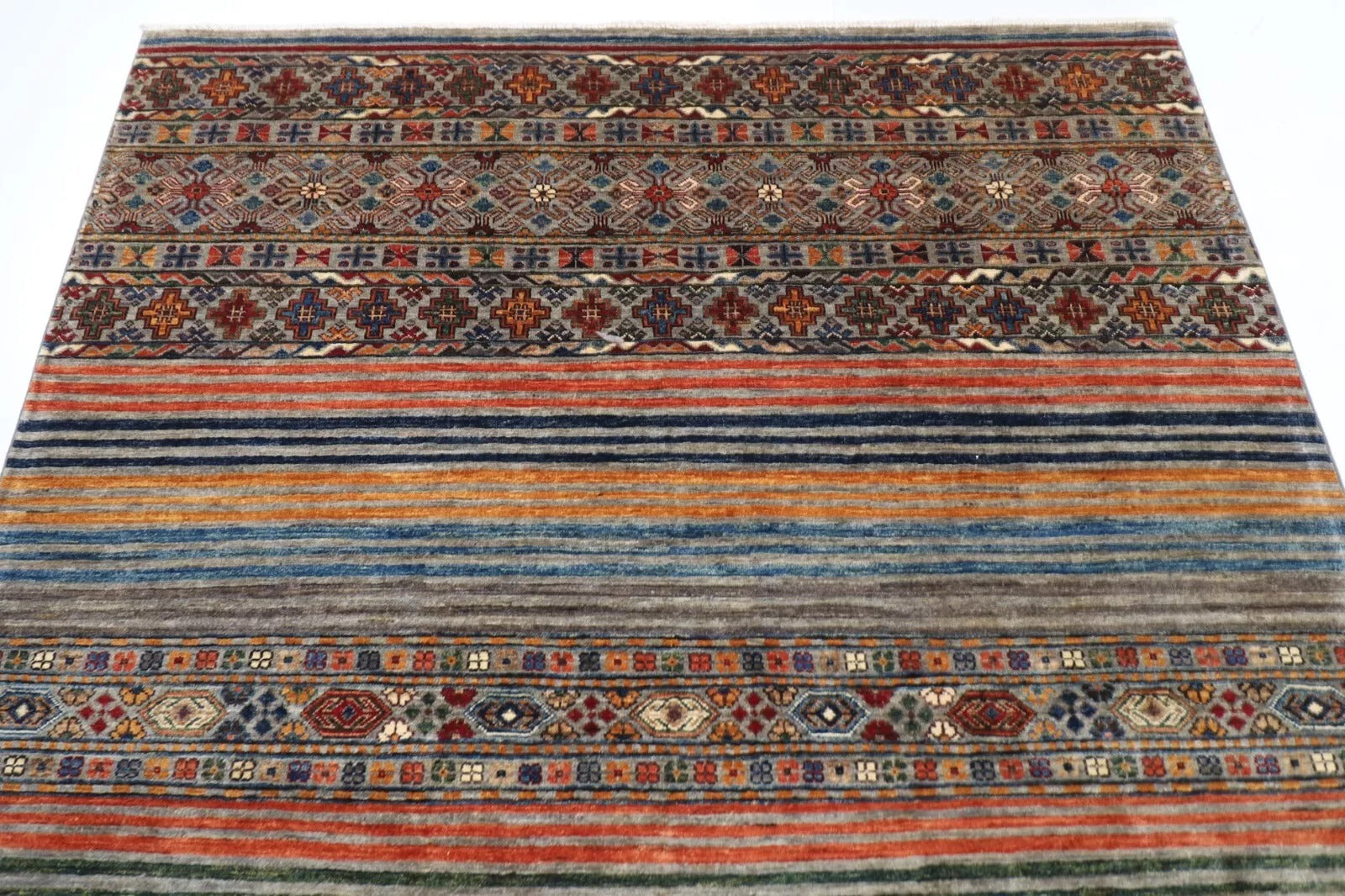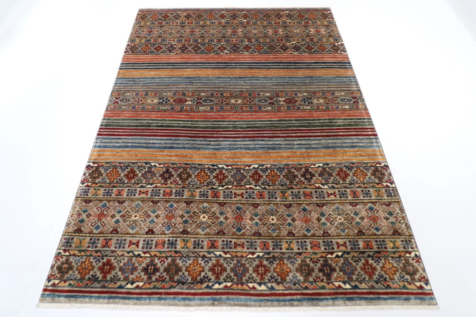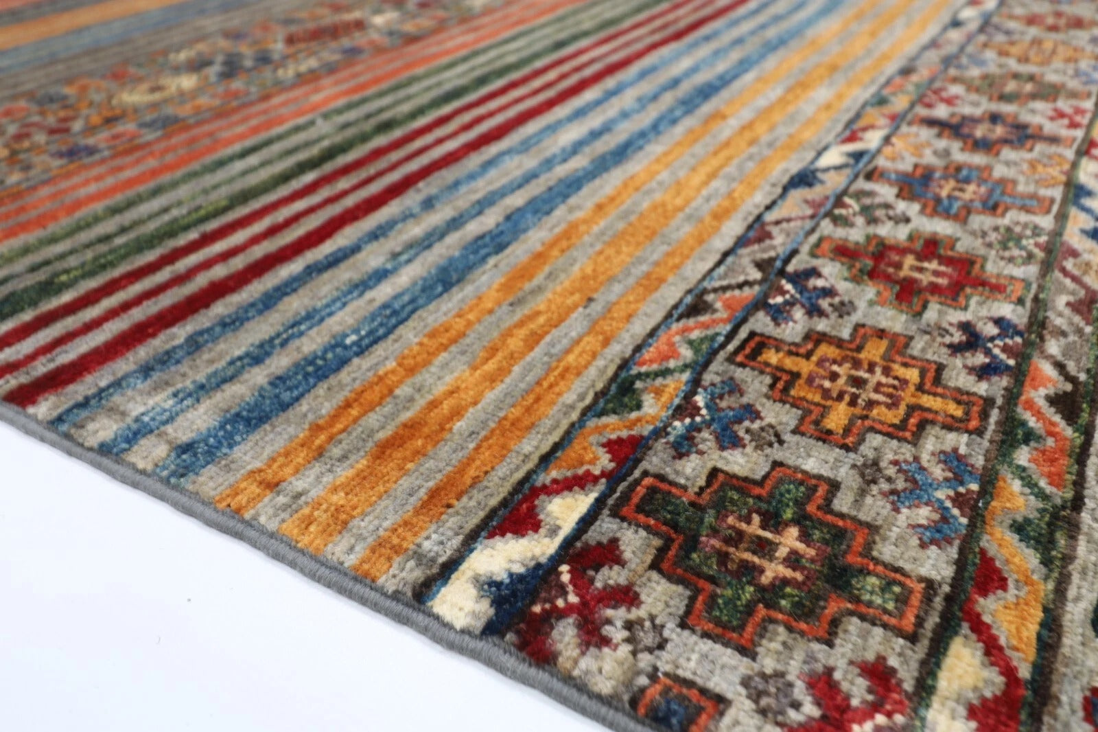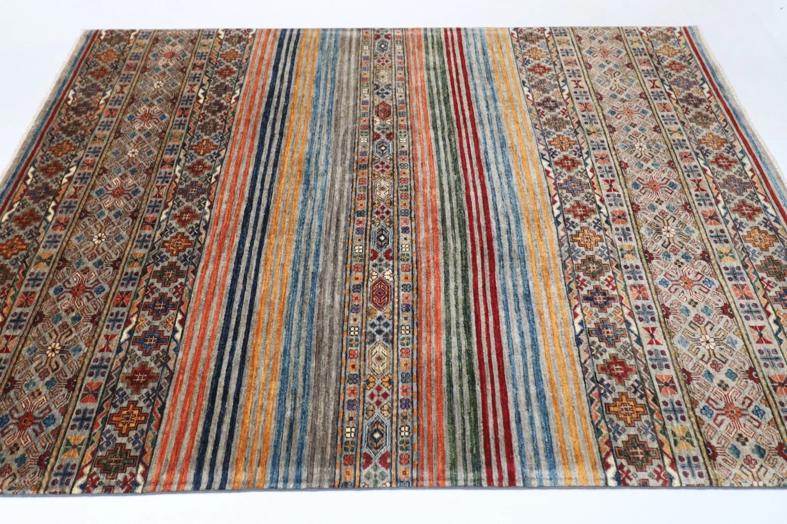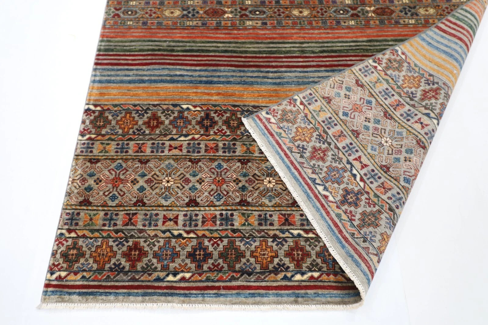 175 x 240 cm | Striped Afghan Tribal Hand Knotted Veg Dye Wool Carpet