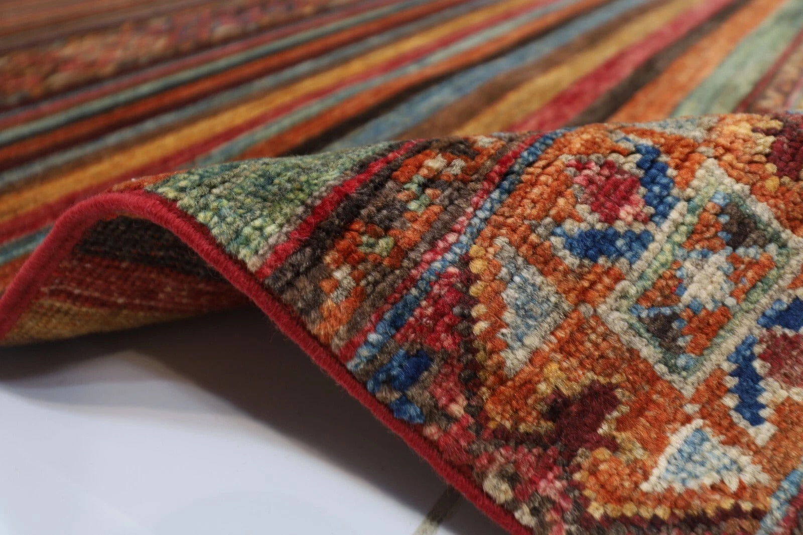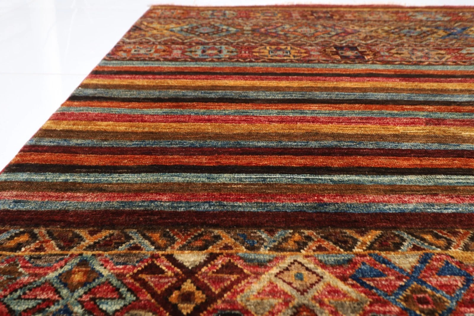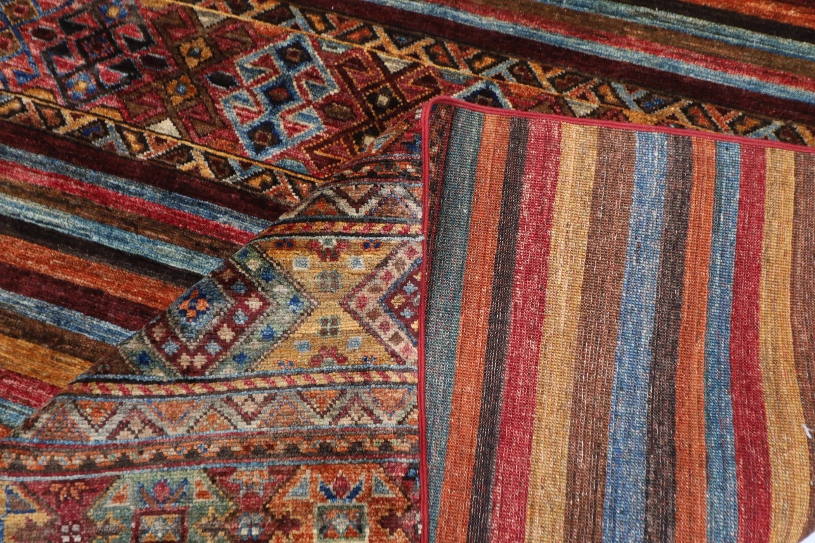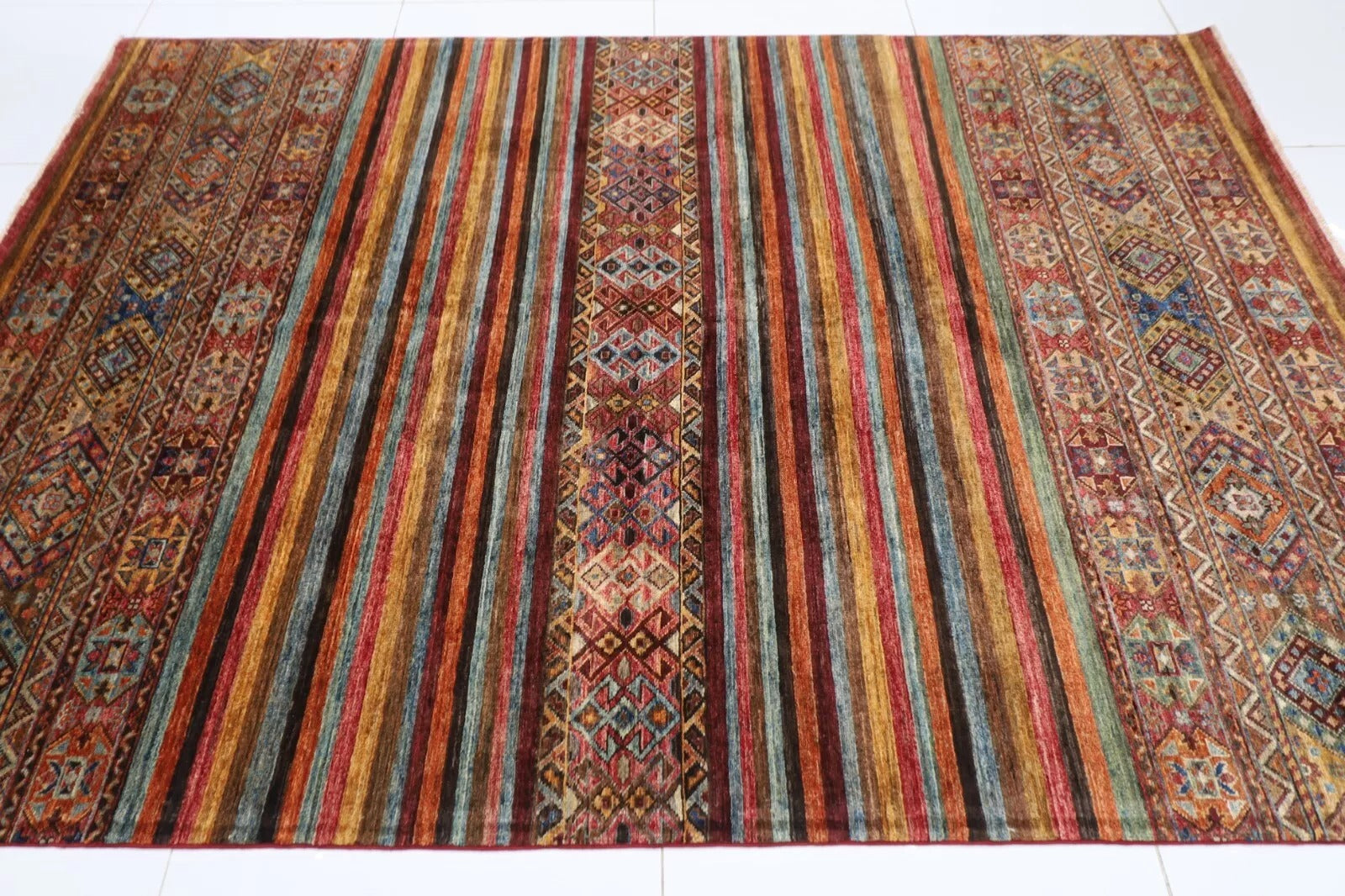 180 x 248 cm | Striped Afghan Tribal Hand Knotted Veg Dye Wool Carpet