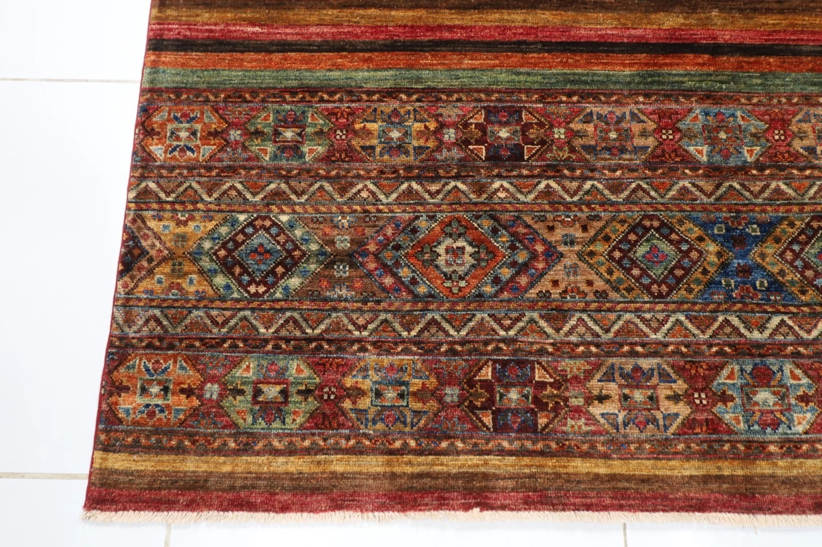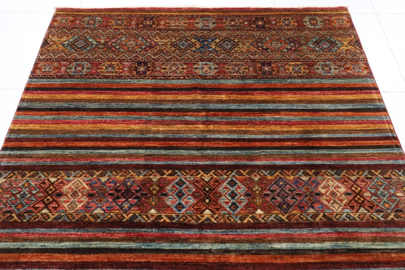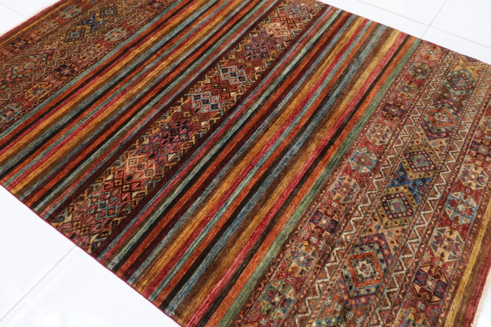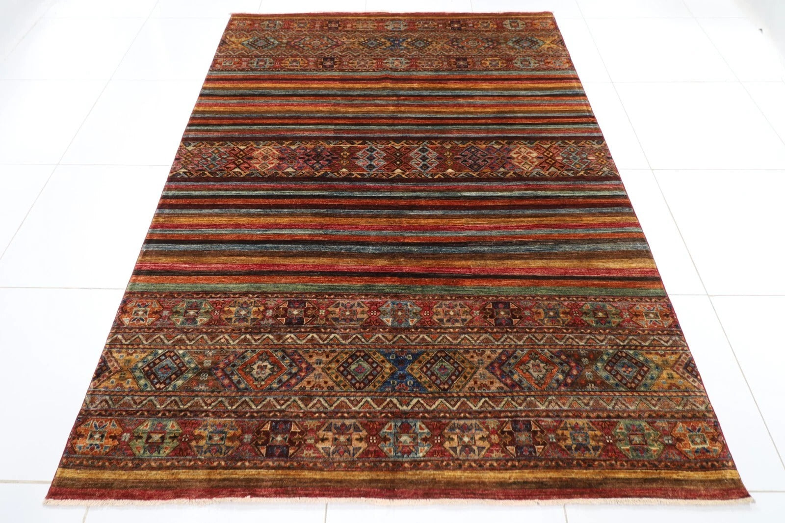 180 x 248 cm | Striped Afghan Tribal Hand Knotted Veg Dye Wool Carpet