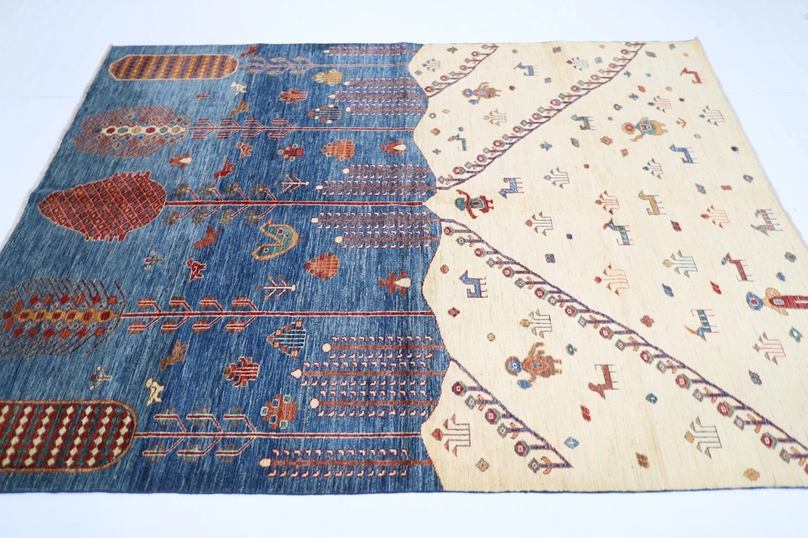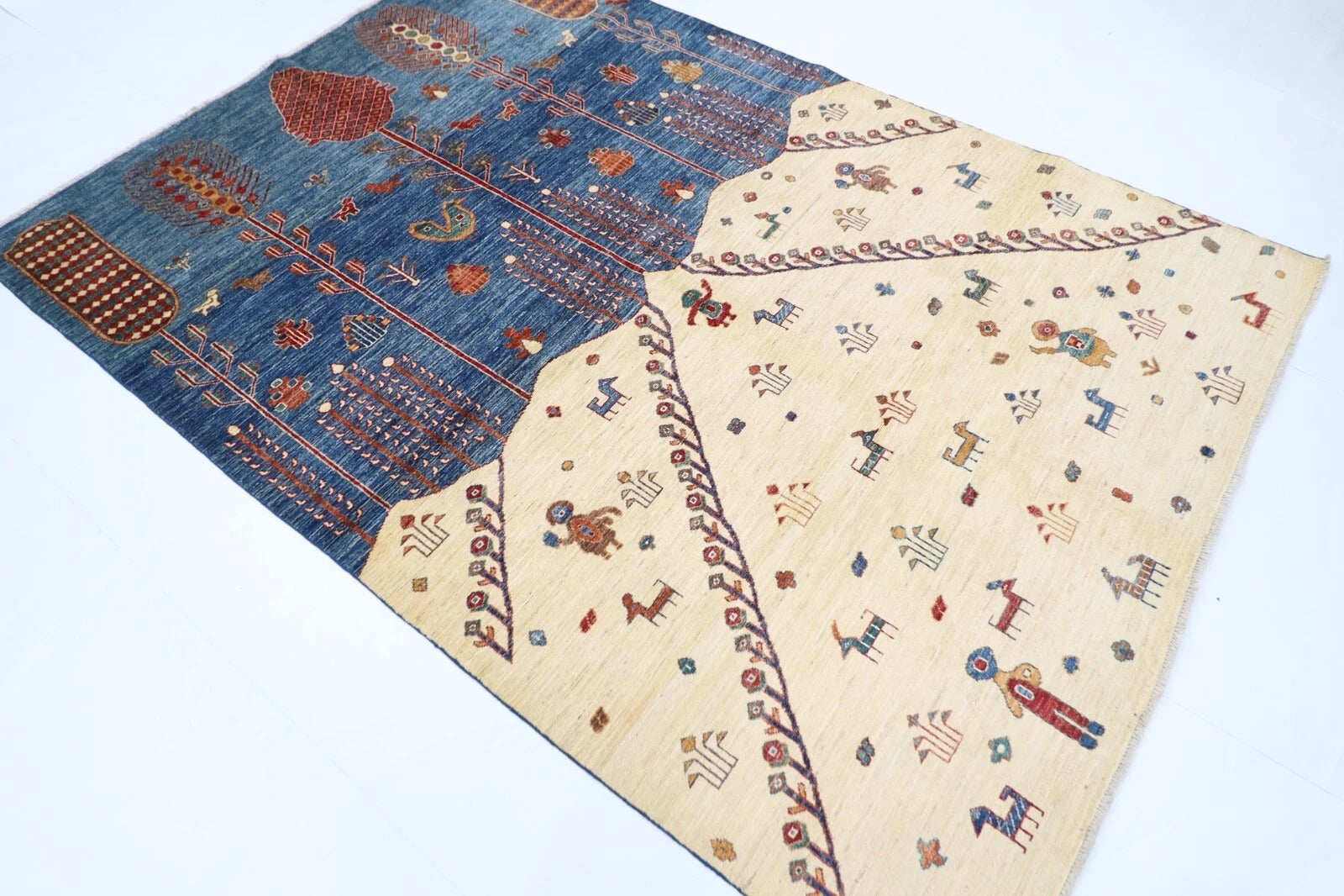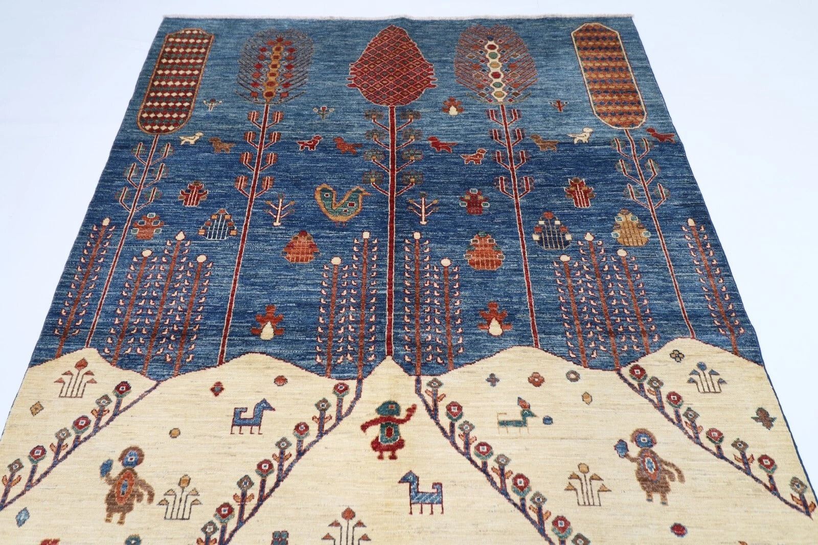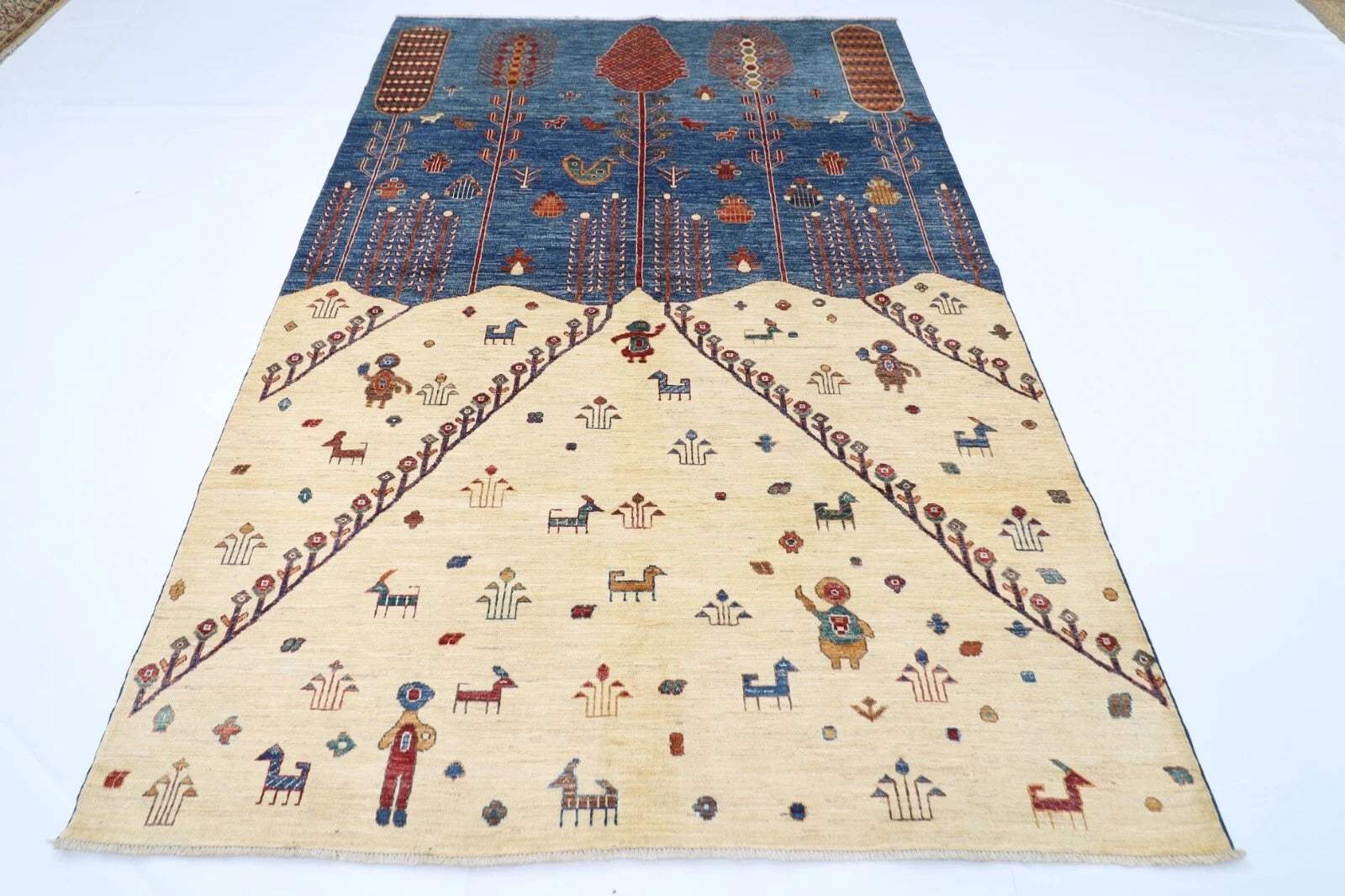 182 x 262 cm | Gabbeh Landscape Afghan Tribal Hand Knotted Veg Dye Wool Carpet