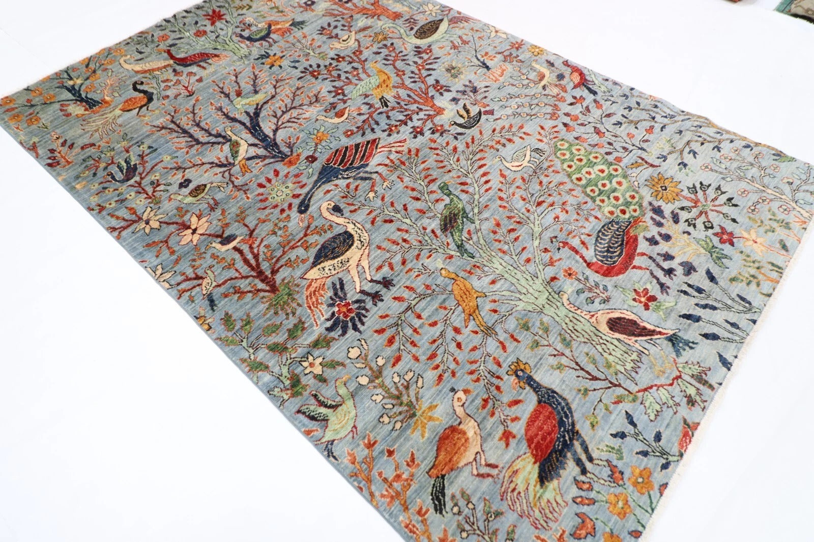 The photographs presented are captured indoor room lights without editing to show the beauty and vibrancy of the rug and also to give you the better idea that how the rug will look in your room and office, the colors in the rug will be perceived differently depending on the angle you view it from.