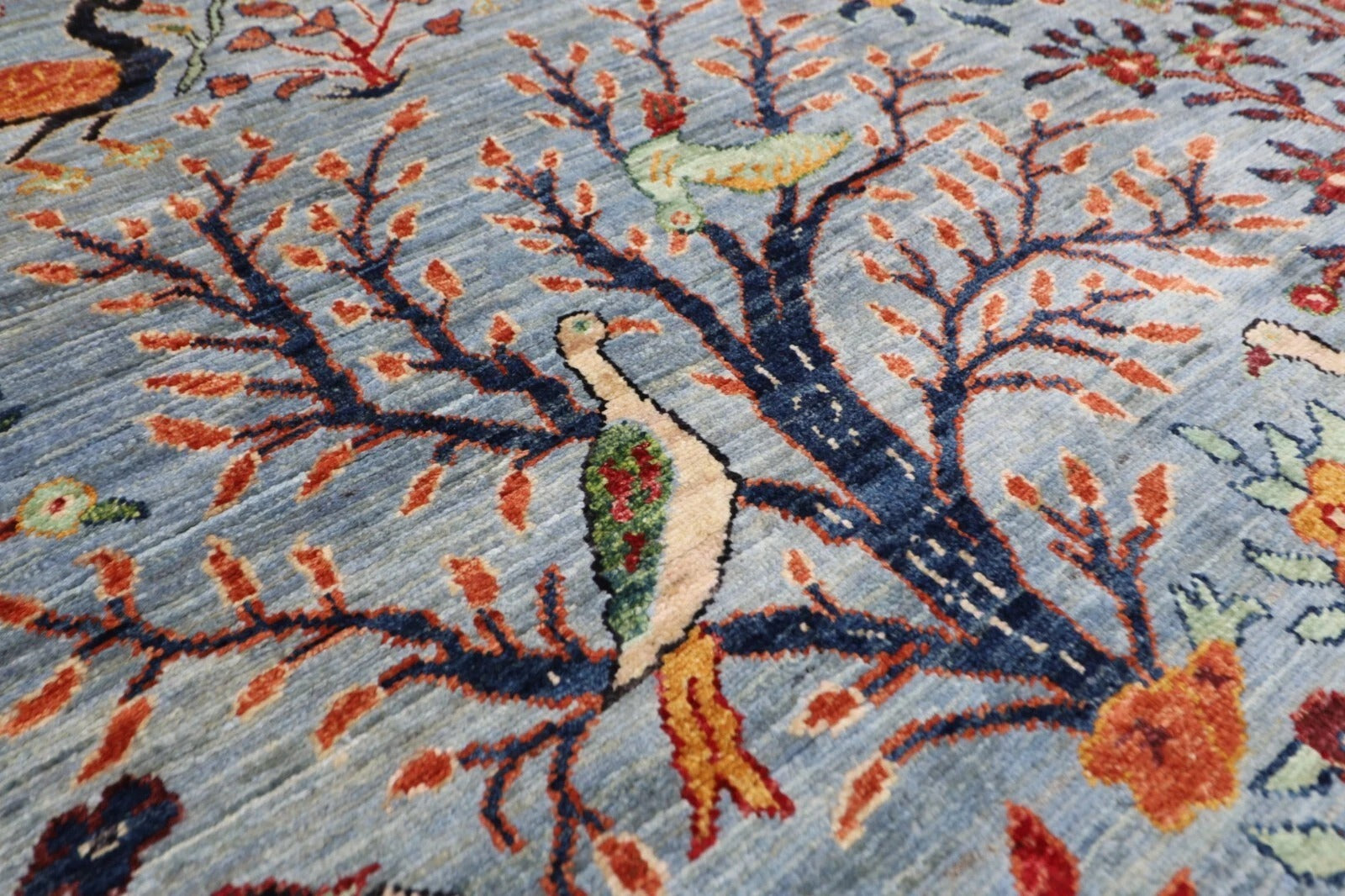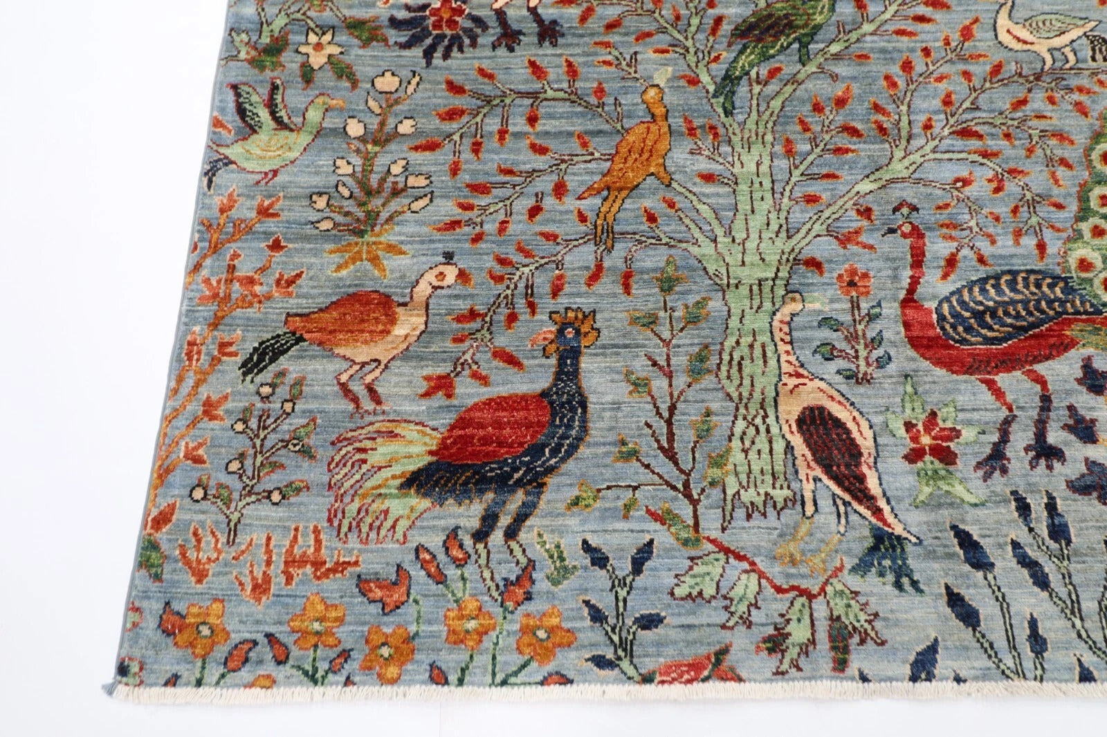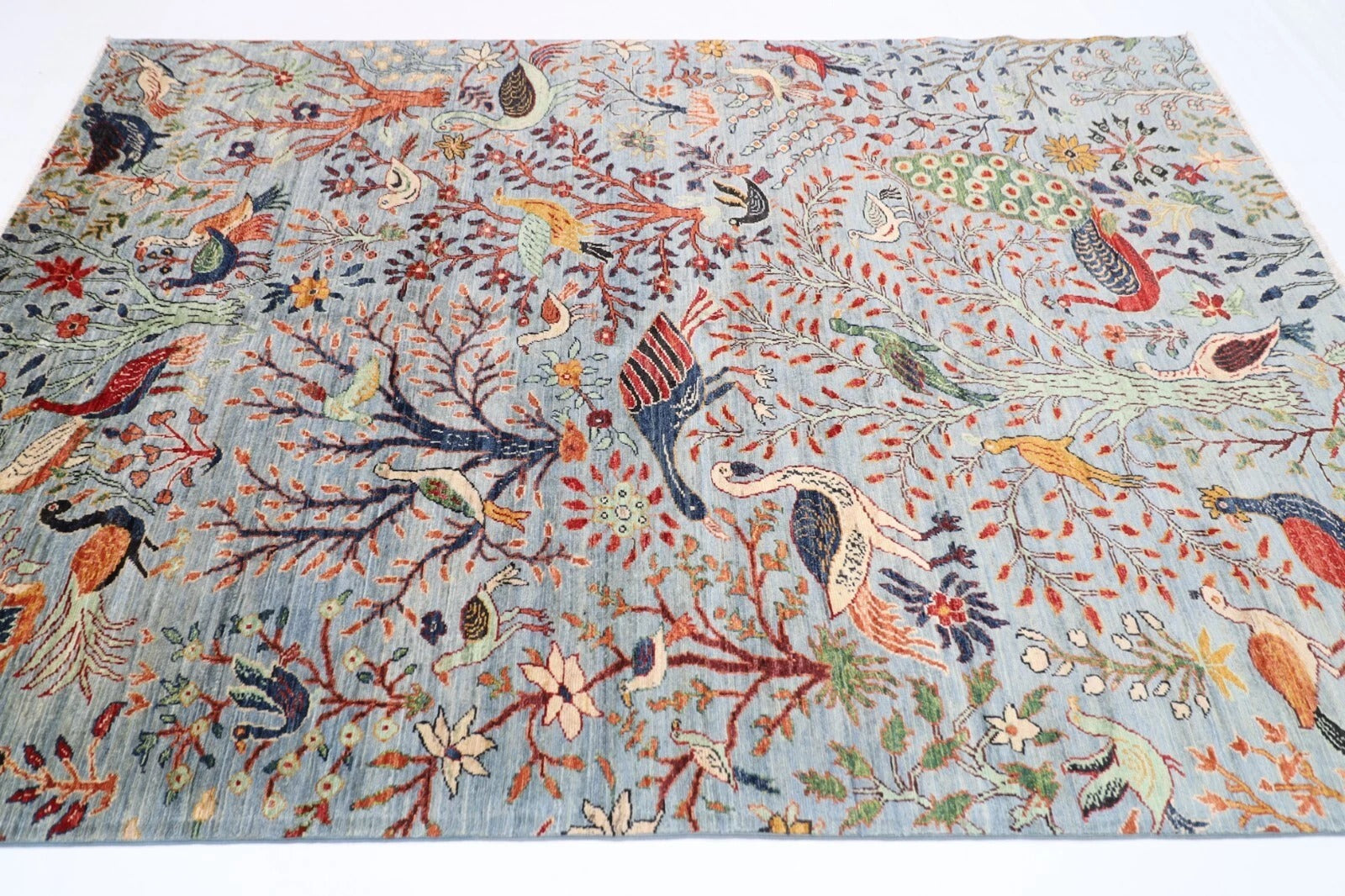 188 x 266 cm | Birds Gray Afghan Tribal Hand Knotted Veg Dye Wool carpet