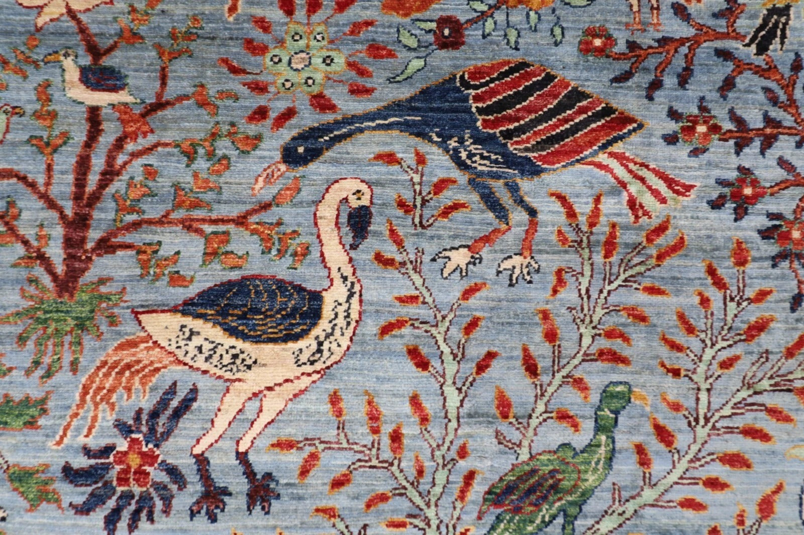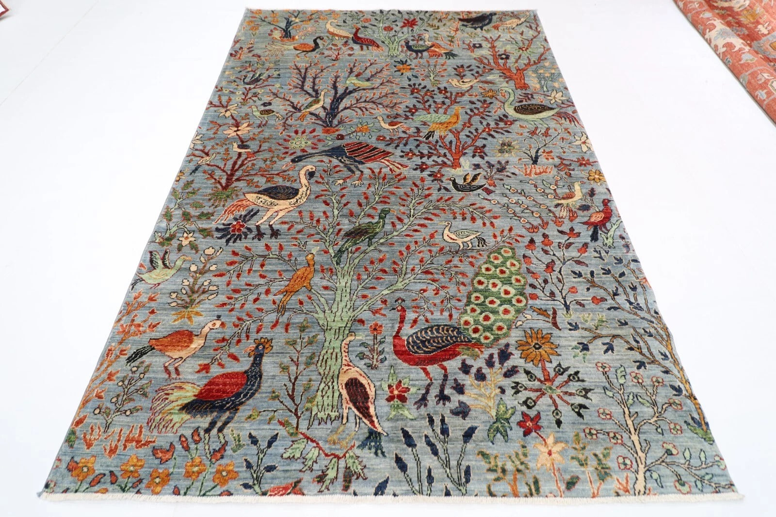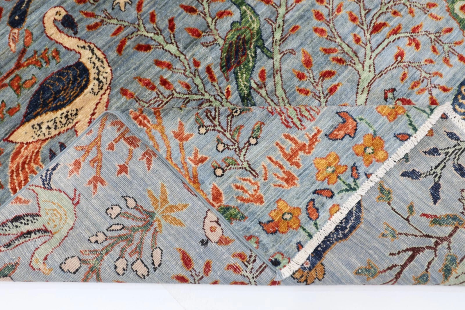 188 x 266 cm | Birds Gray Afghan Tribal Hand Knotted Veg Dye Wool carpet
