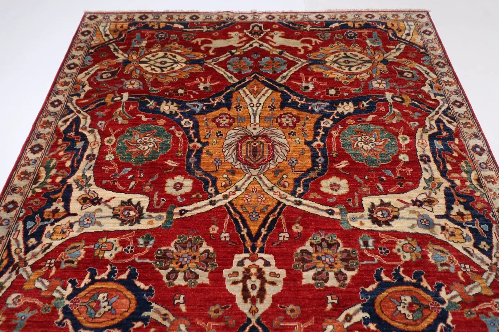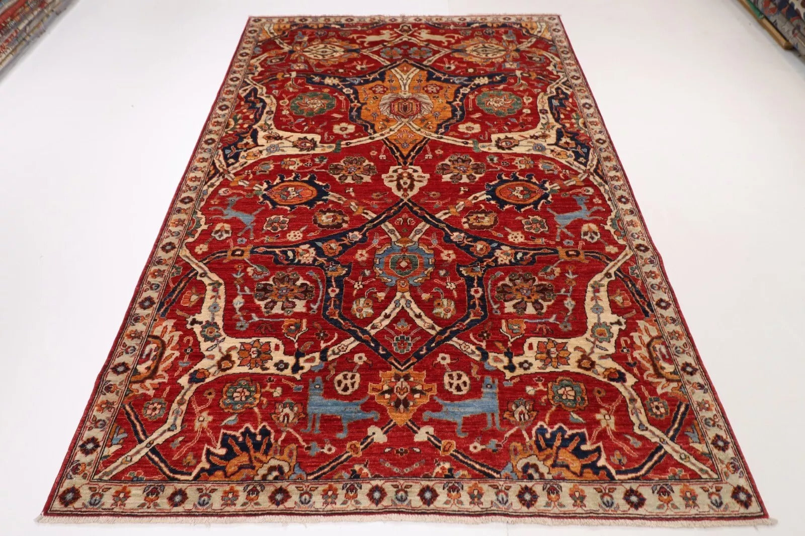 184 x 273 cm | Red Afghan Tribal Hand Knotted Veg Dye Wool carpet