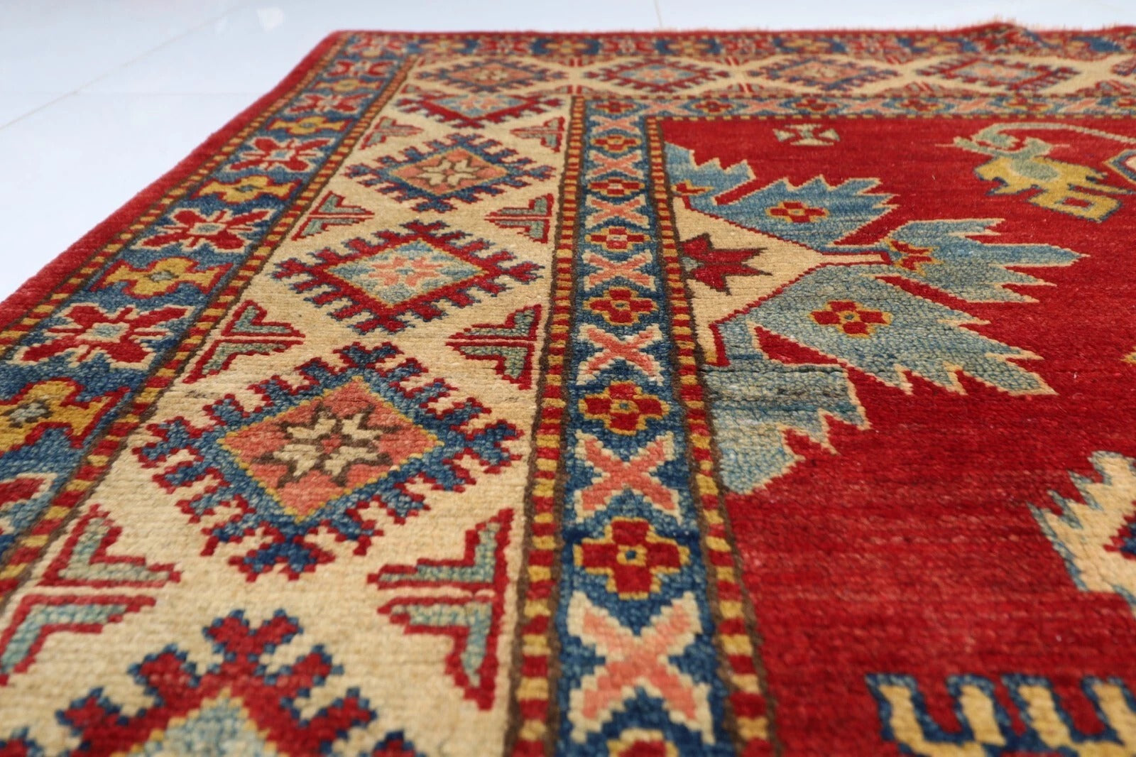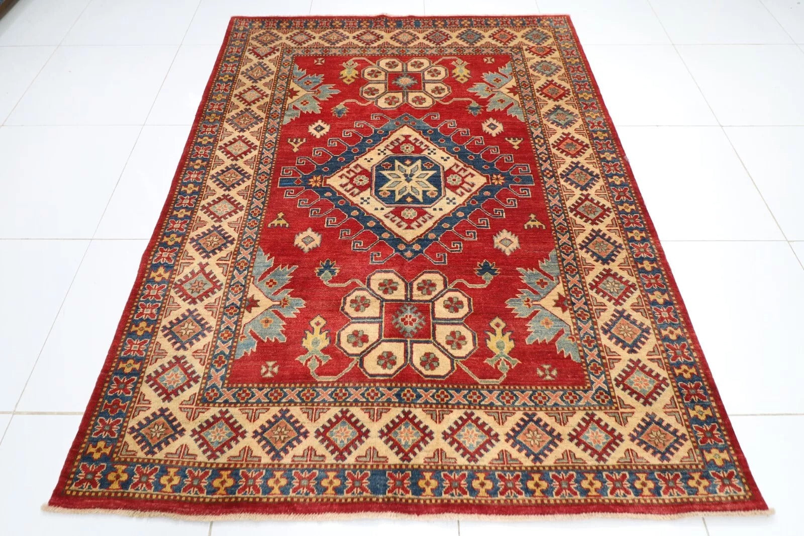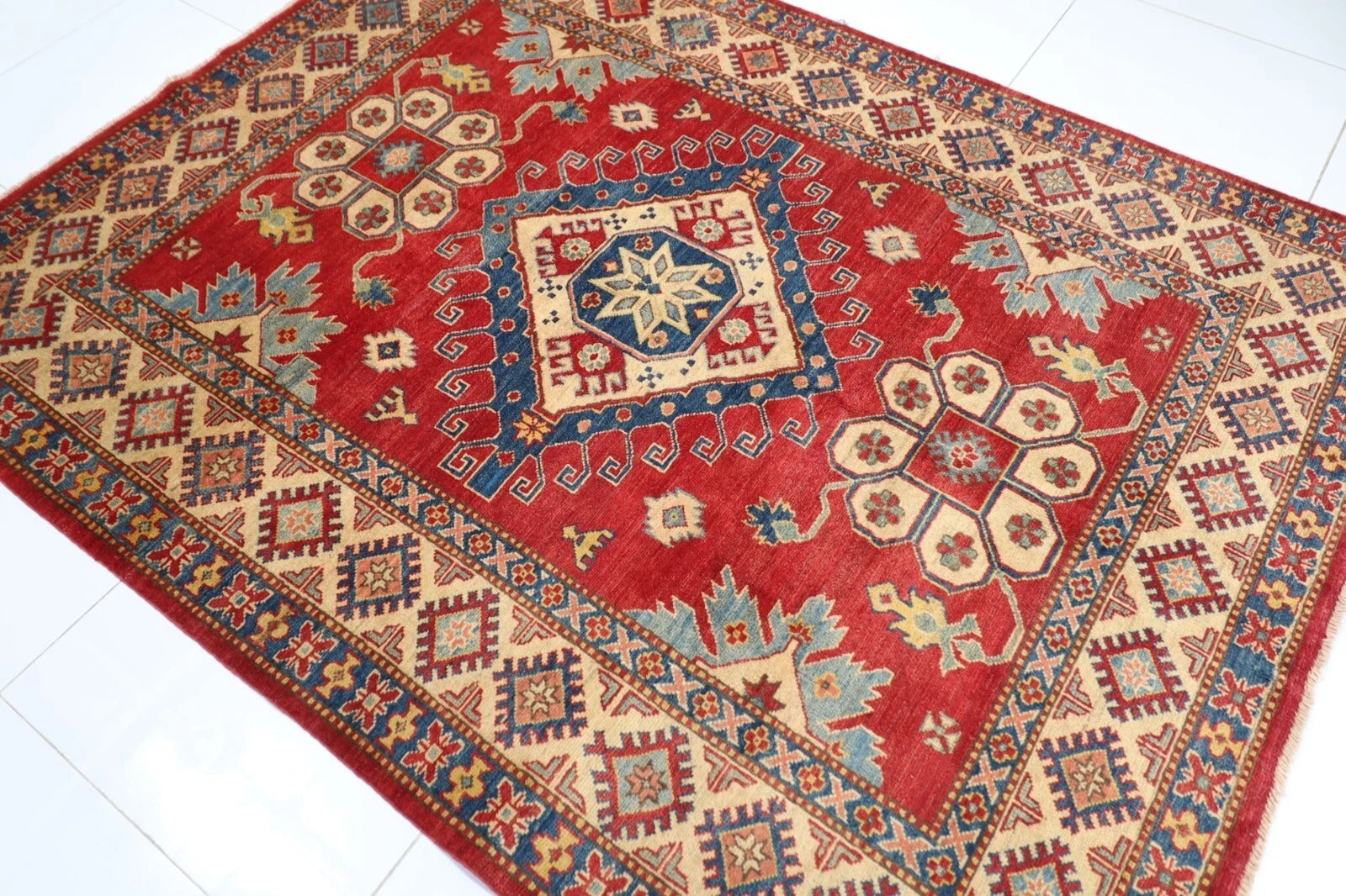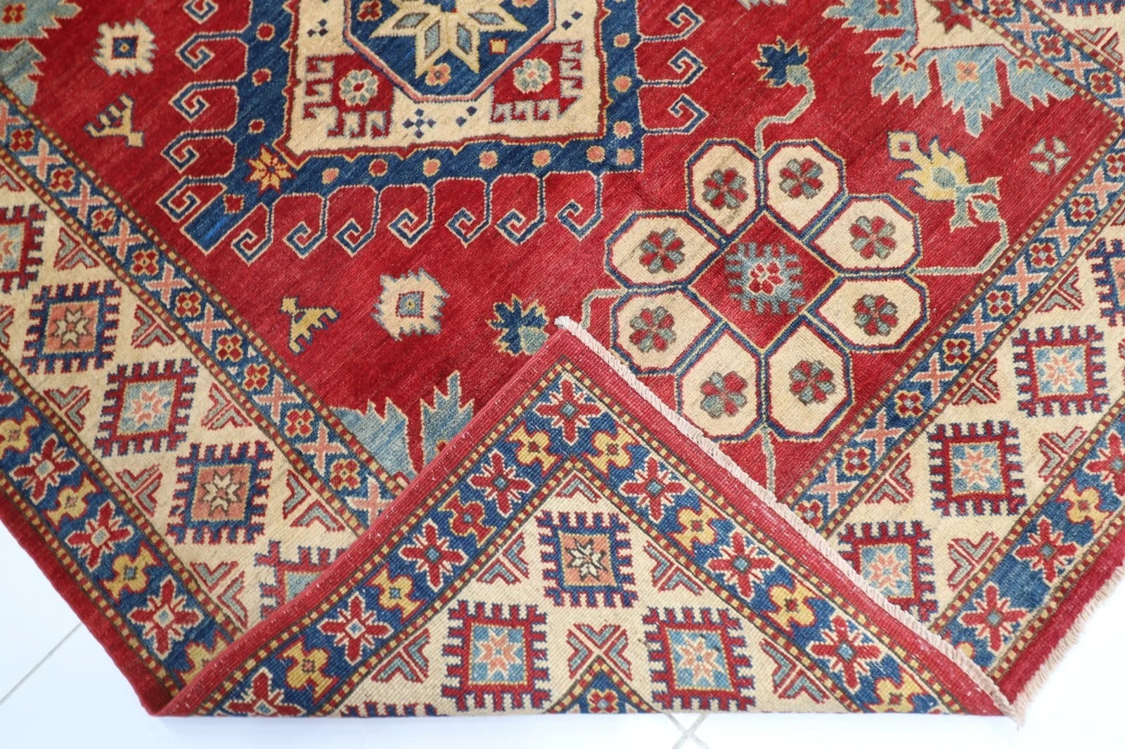 175 x 231 cm | Kazak Afghan Tribal Hand Knotted Veg Dye Wool Carpet
