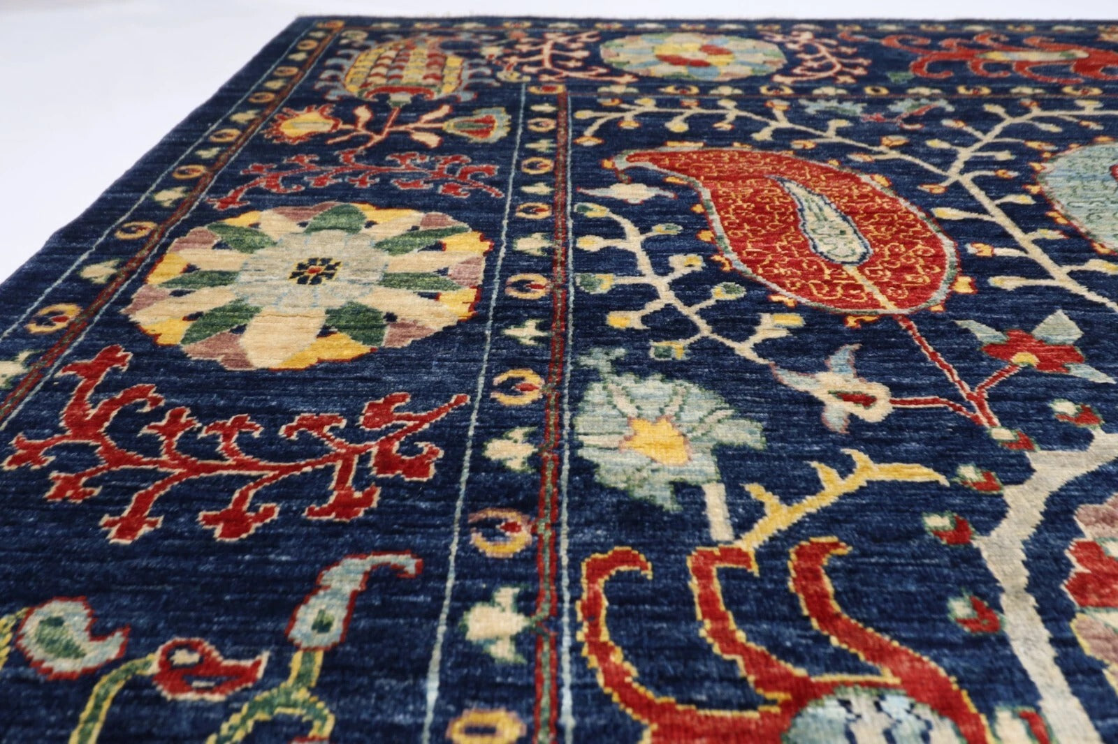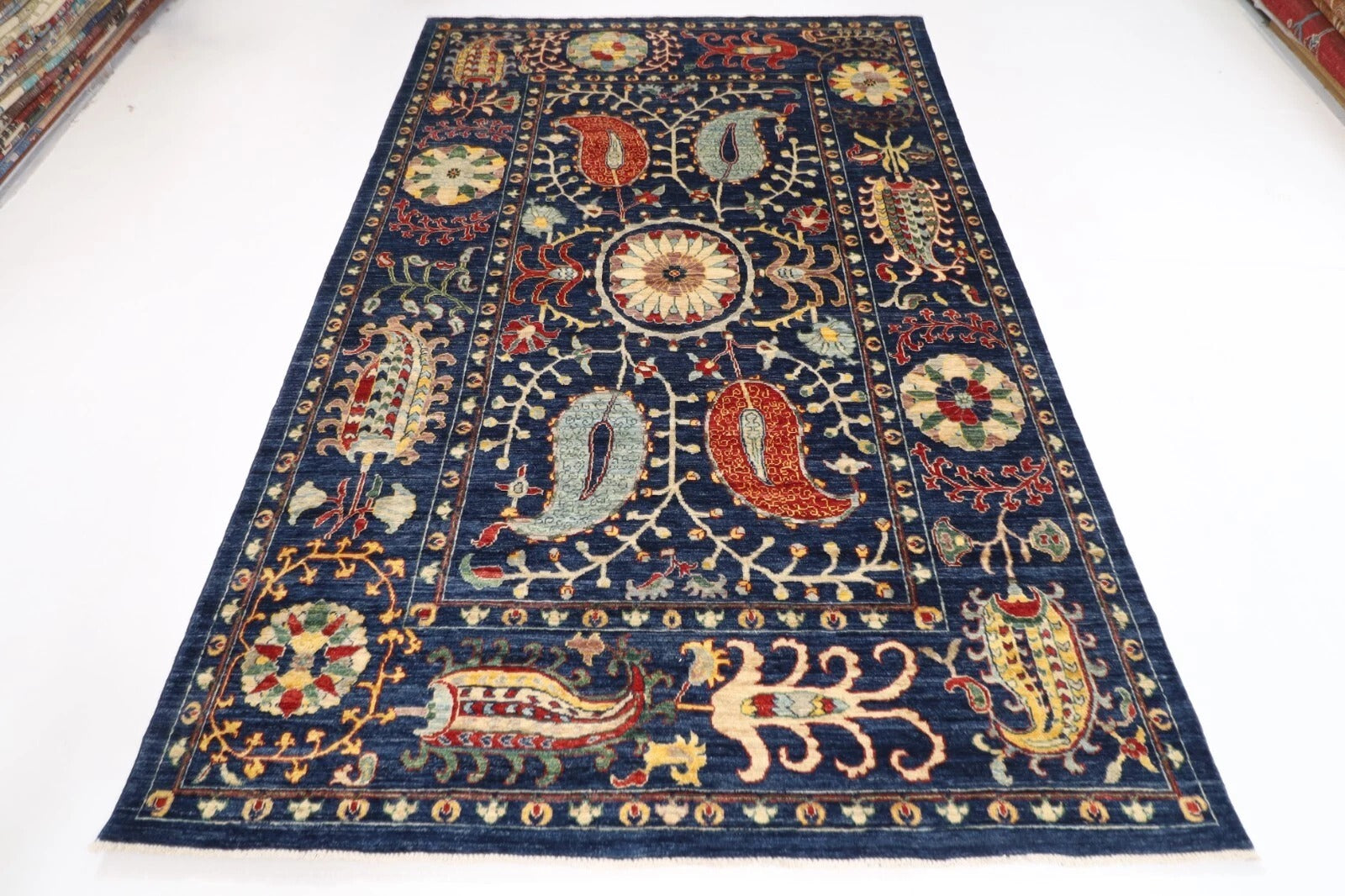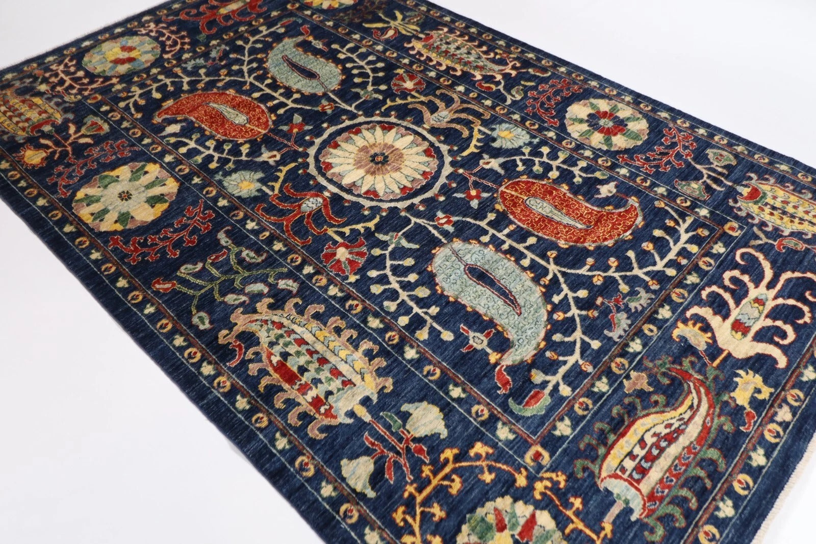 184 x 281 cm | Suzani Blue Afghan Tribal Hand Knotted Veg Dye Wool carpet
