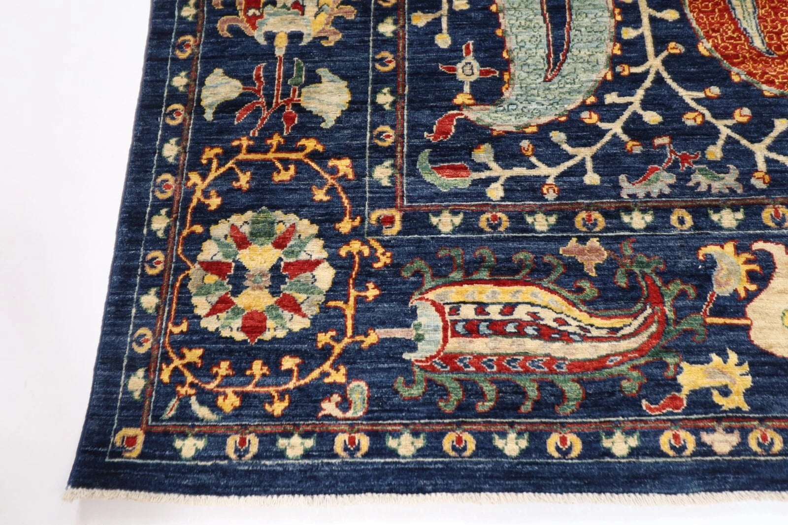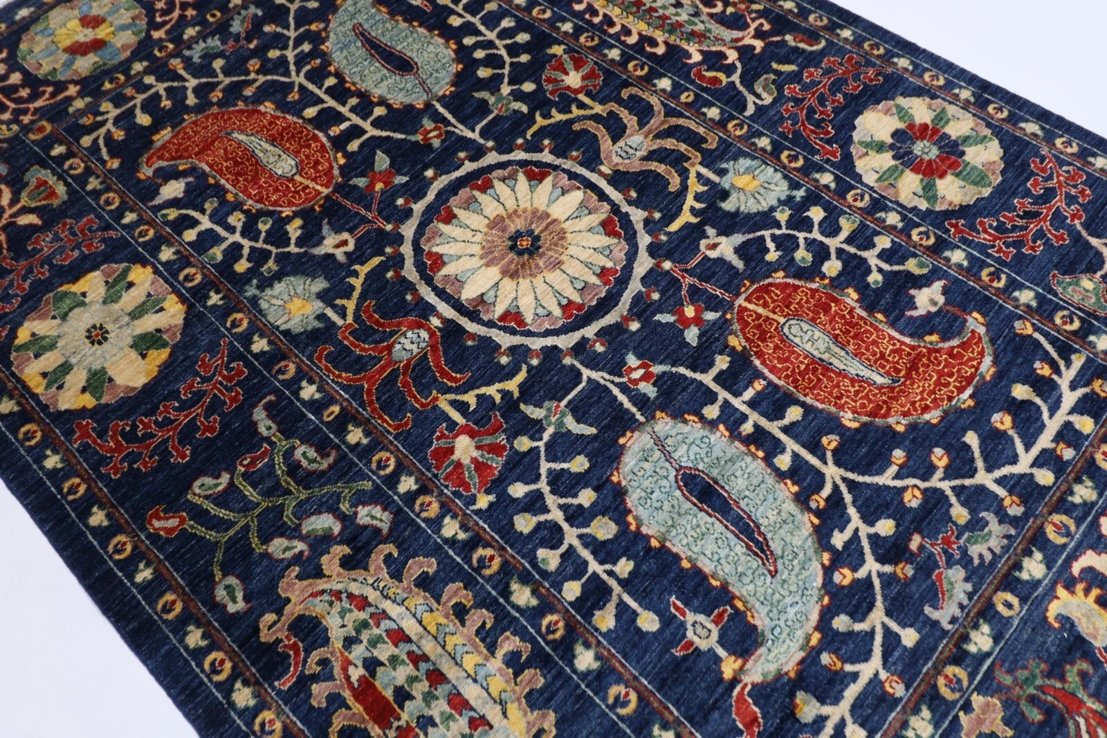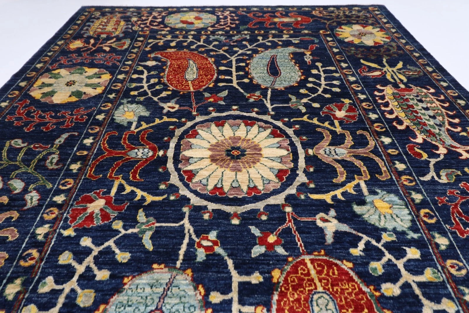 184 x 281 cm | Suzani Blue Afghan Tribal Hand Knotted Veg Dye Wool carpet
