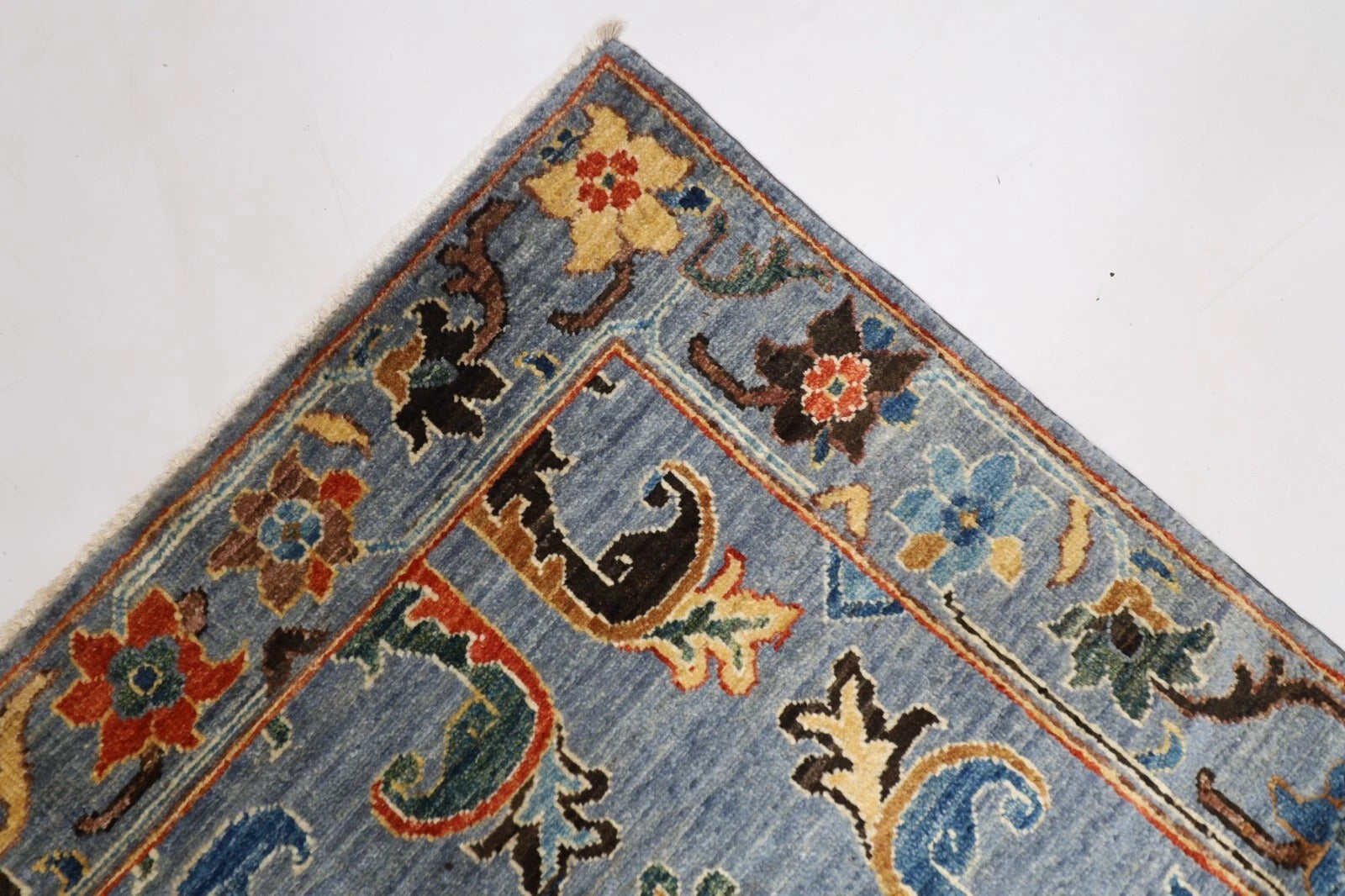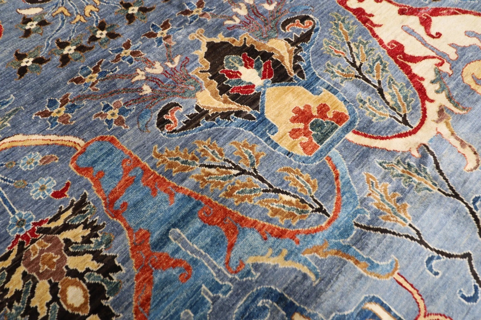 The photographs presented are captured indoor room lights without editing to show the beauty and vibrancy of the rug and also to give you the better idea that how the rug will look in your room and office, the colors in the rug will be perceived differently depending on the angle you view it from.