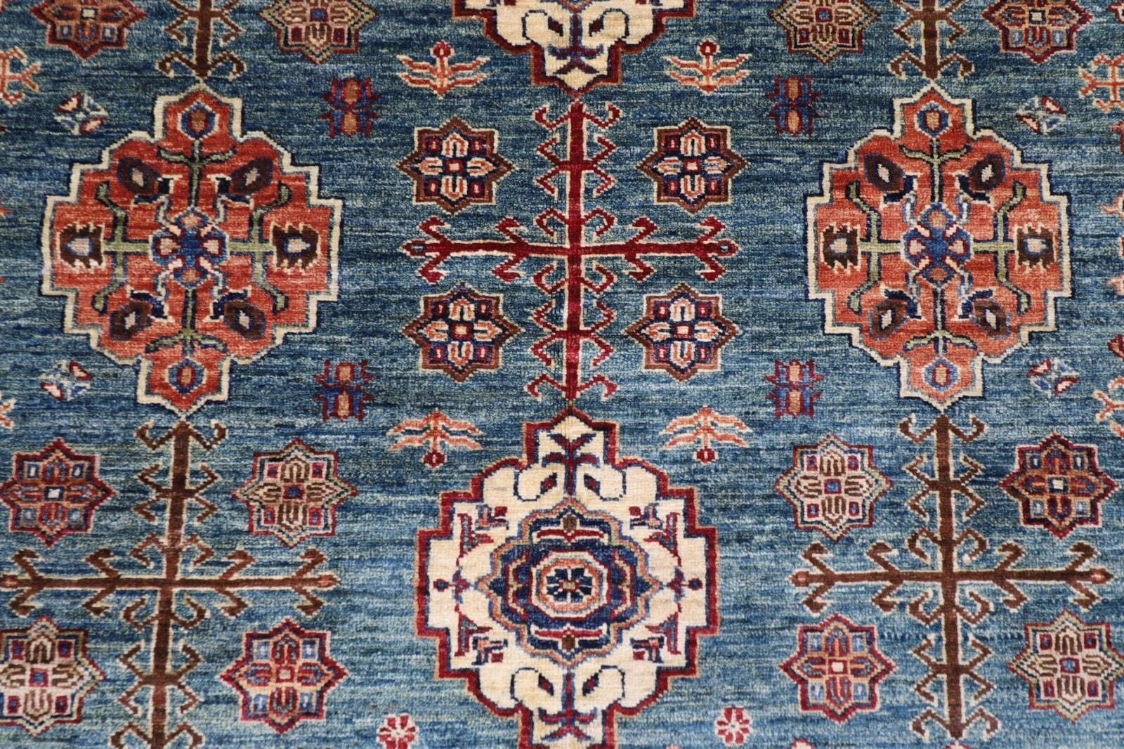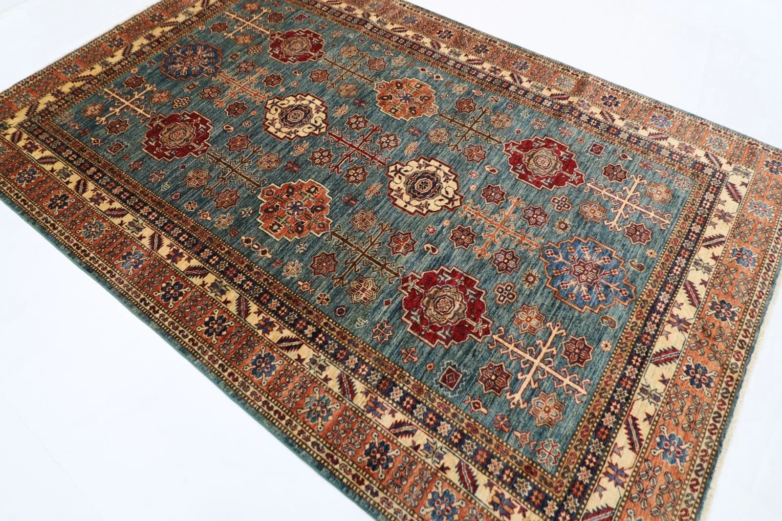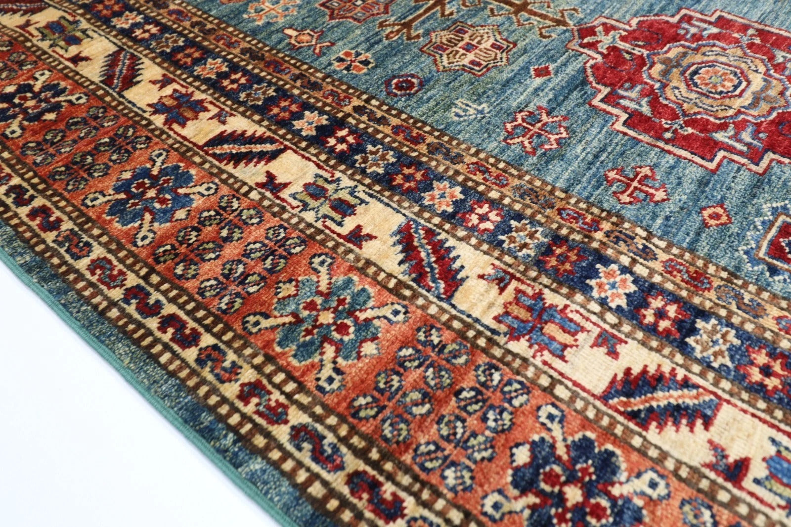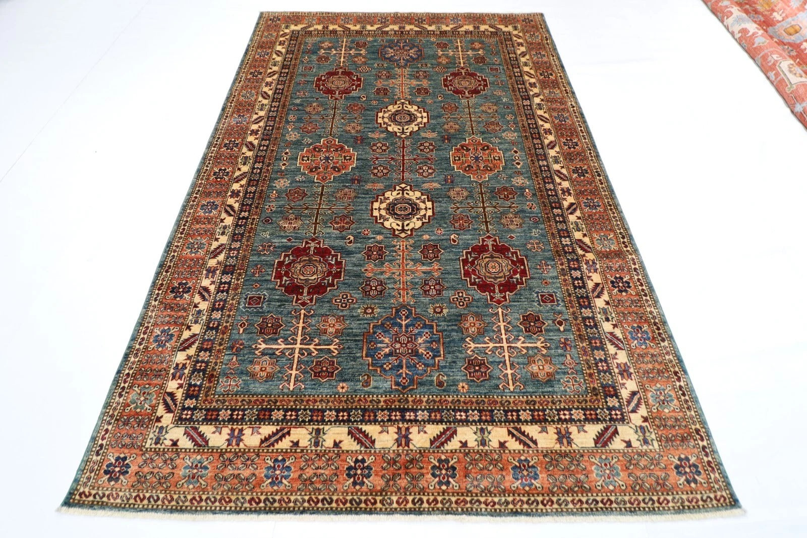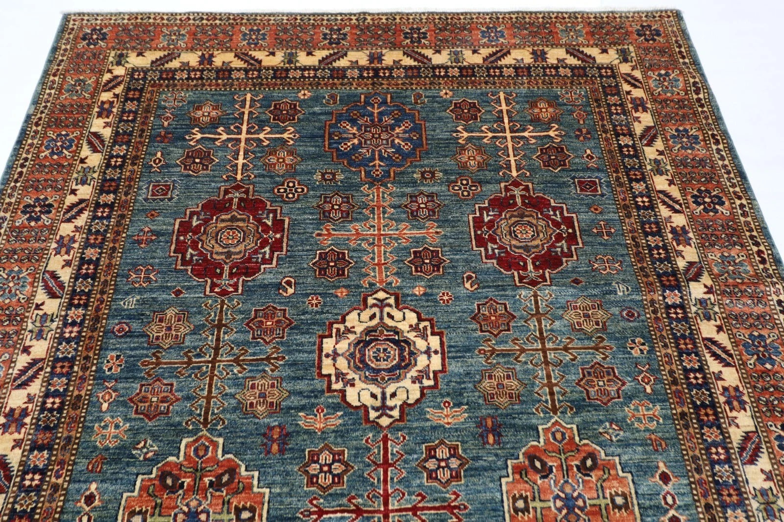 182 x 277 cm | Kazak Blue Afghan Tribal Hand Knotted Veg Dye Wool carpet
