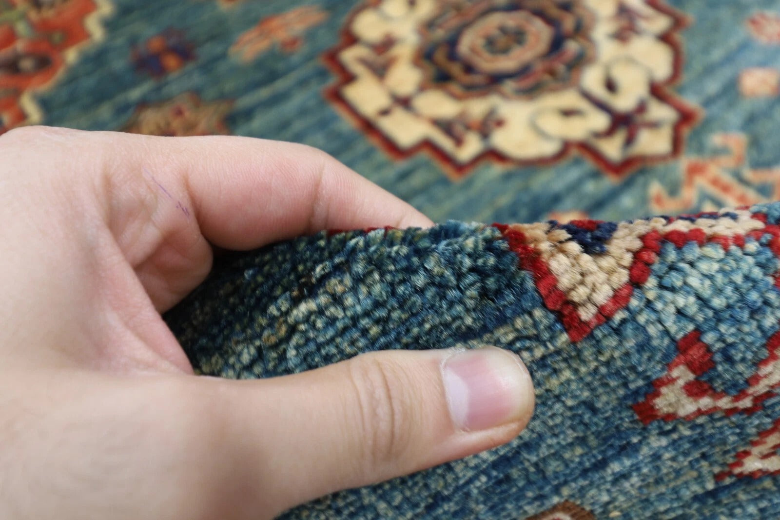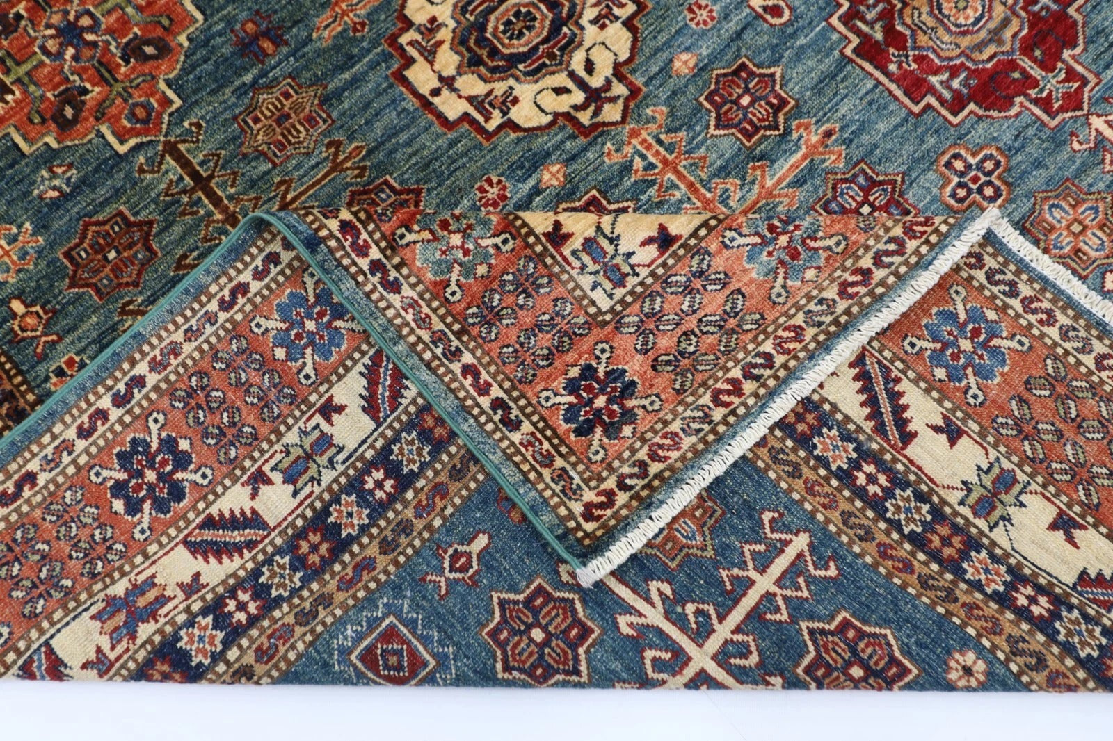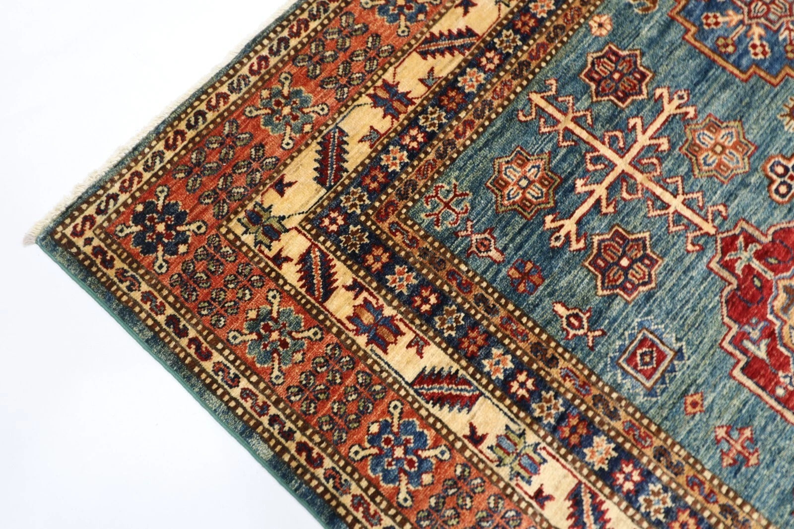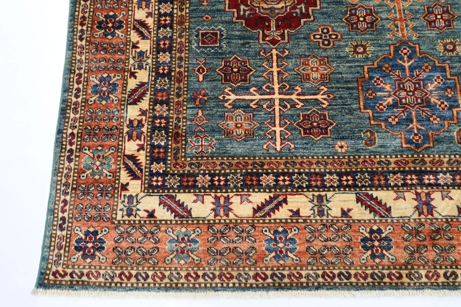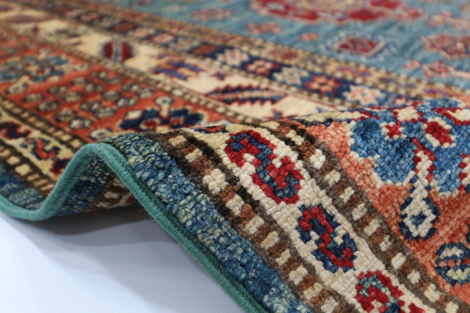 182 x 277 cm | Kazak Blue Afghan Tribal Hand Knotted Veg Dye Wool carpet