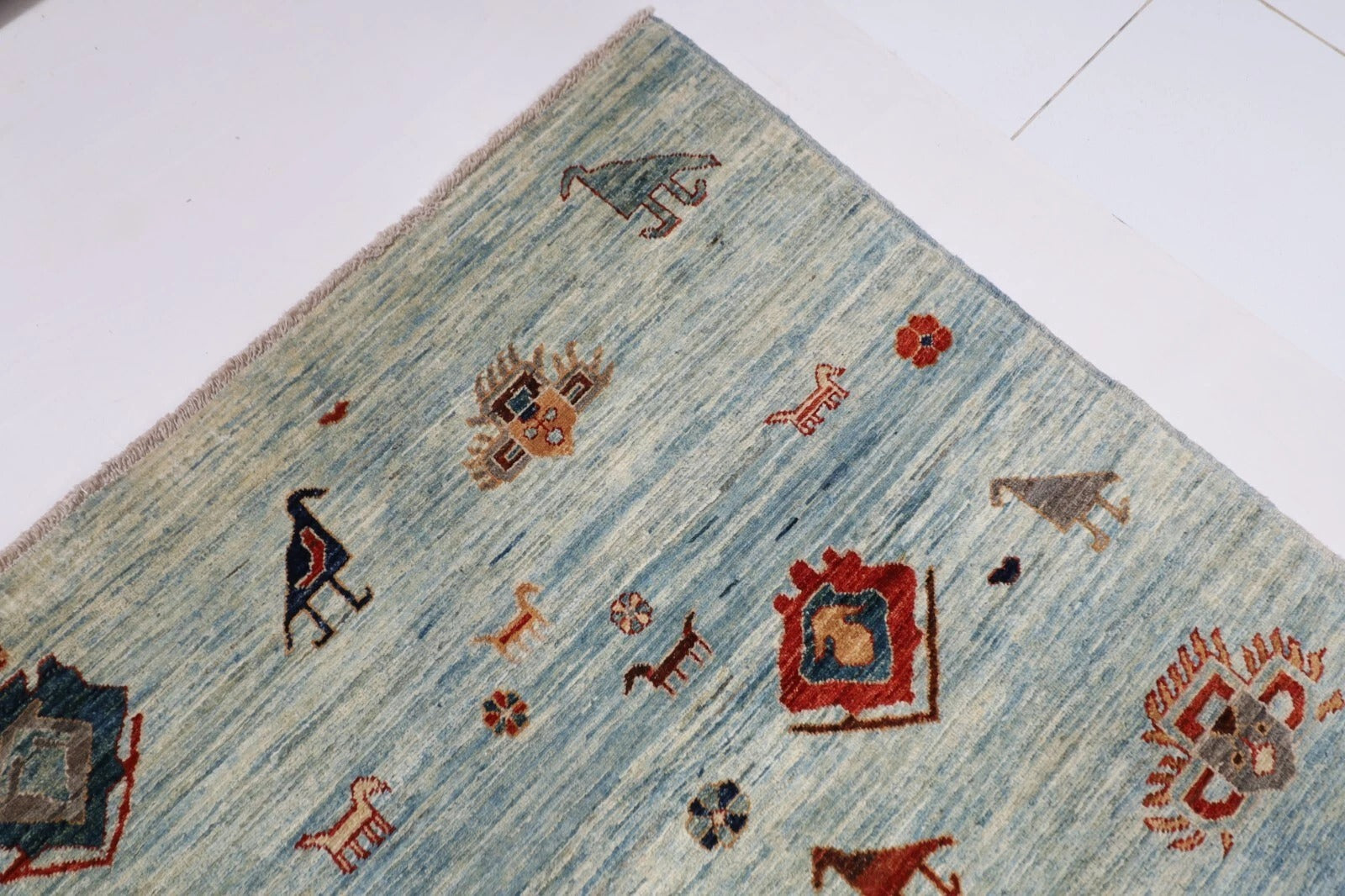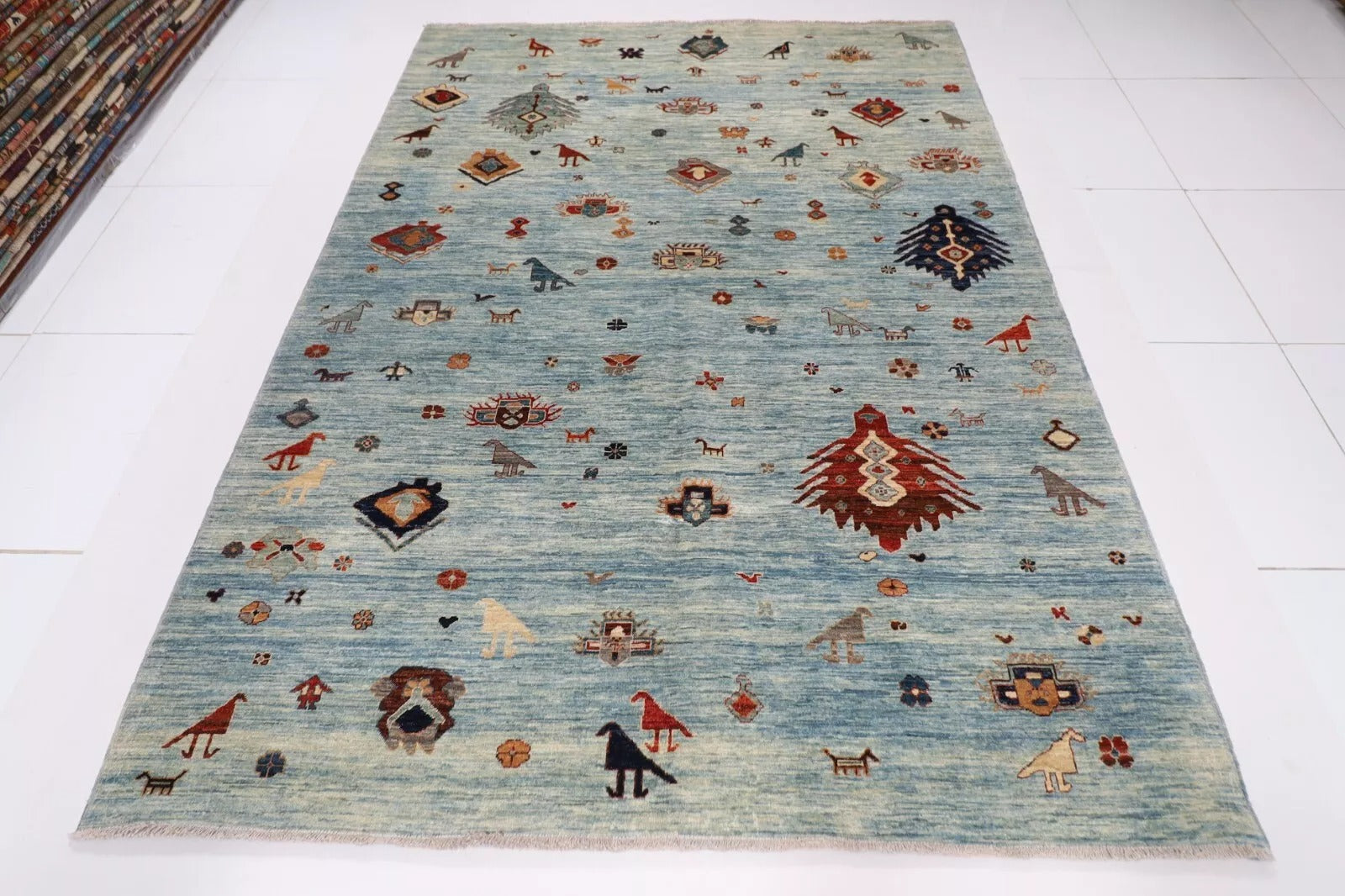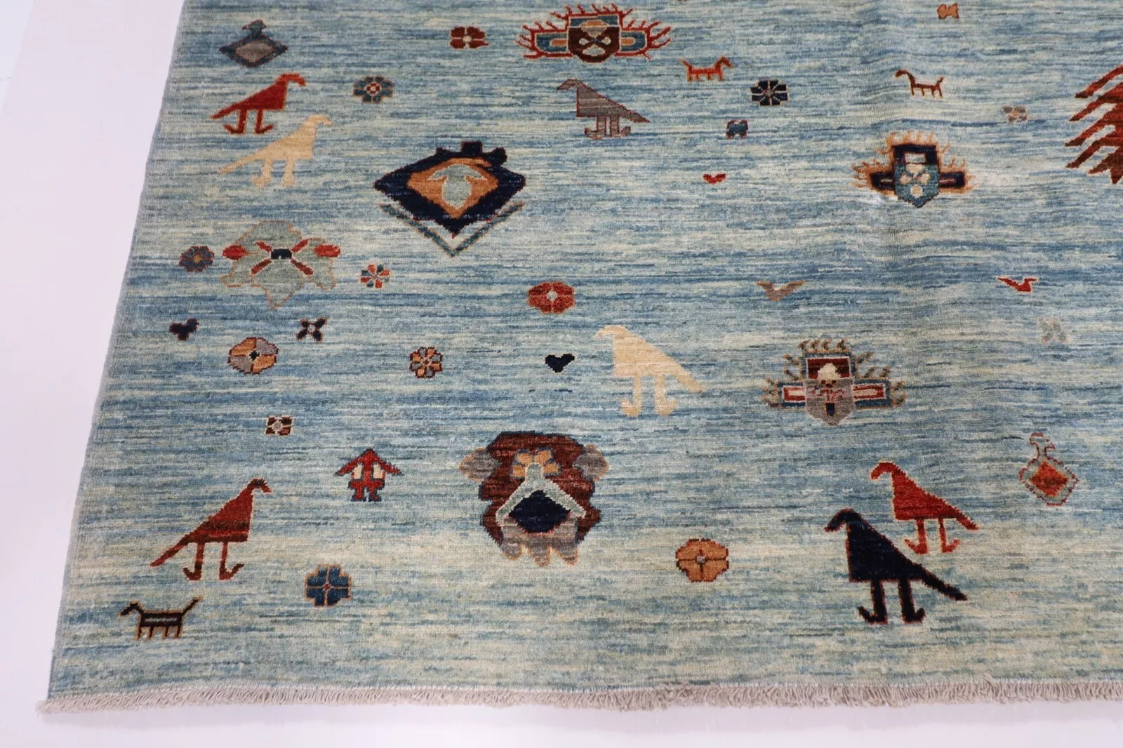190 x 268 cm | Gabbeh Animal Blue Afghan Tribal Hand Knotted Veg Dye Wool Carpet