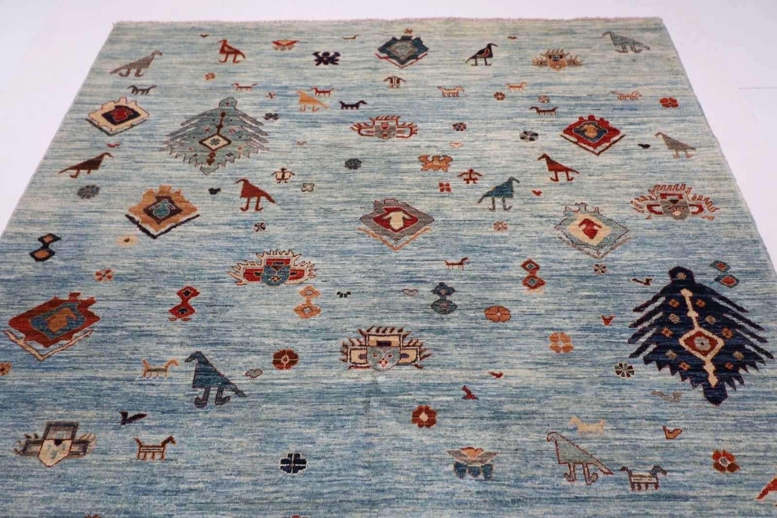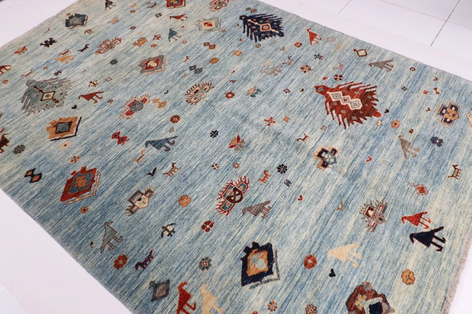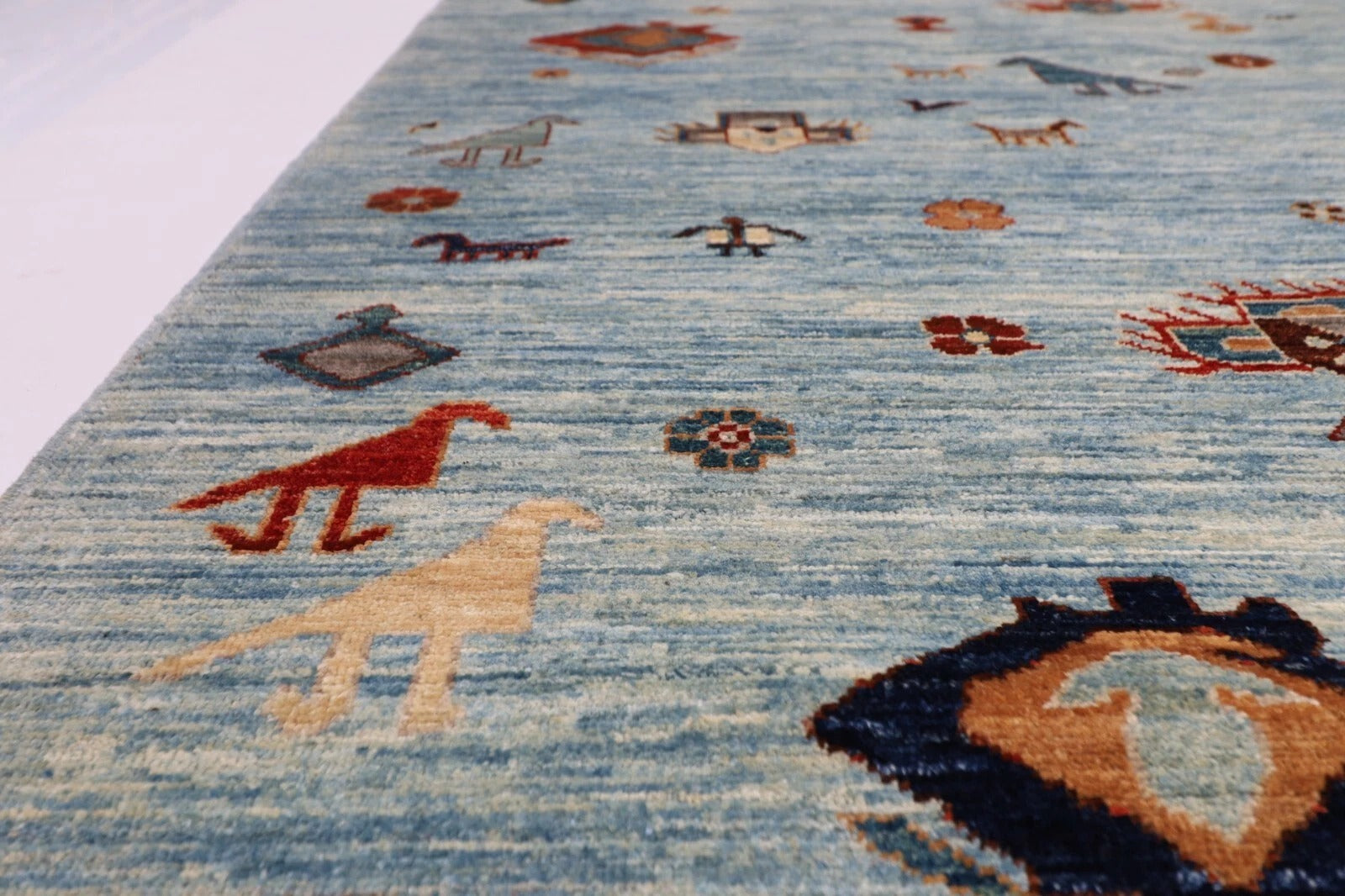 190 x 268 cm | Gabbeh Animal Blue Afghan Tribal Hand Knotted Veg Dye Wool Carpet