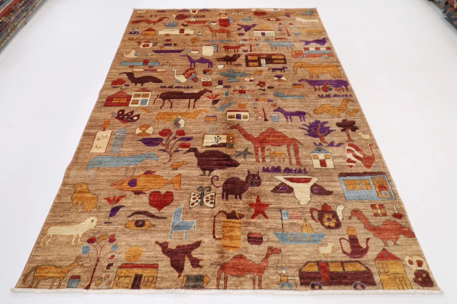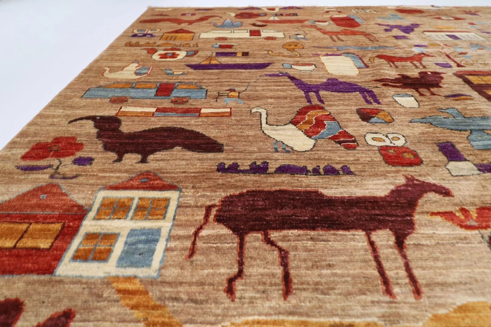 189 x 271 cm | Landscape Gabbeh Animal Afghan Tribal Hand Knotted Veg Dye Wool Carpet