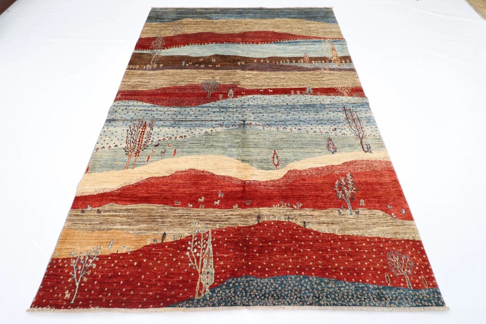 188 x 268 cm | Landscape Afghan Tribal Hand Knotted Veg Dye Wool Carpet