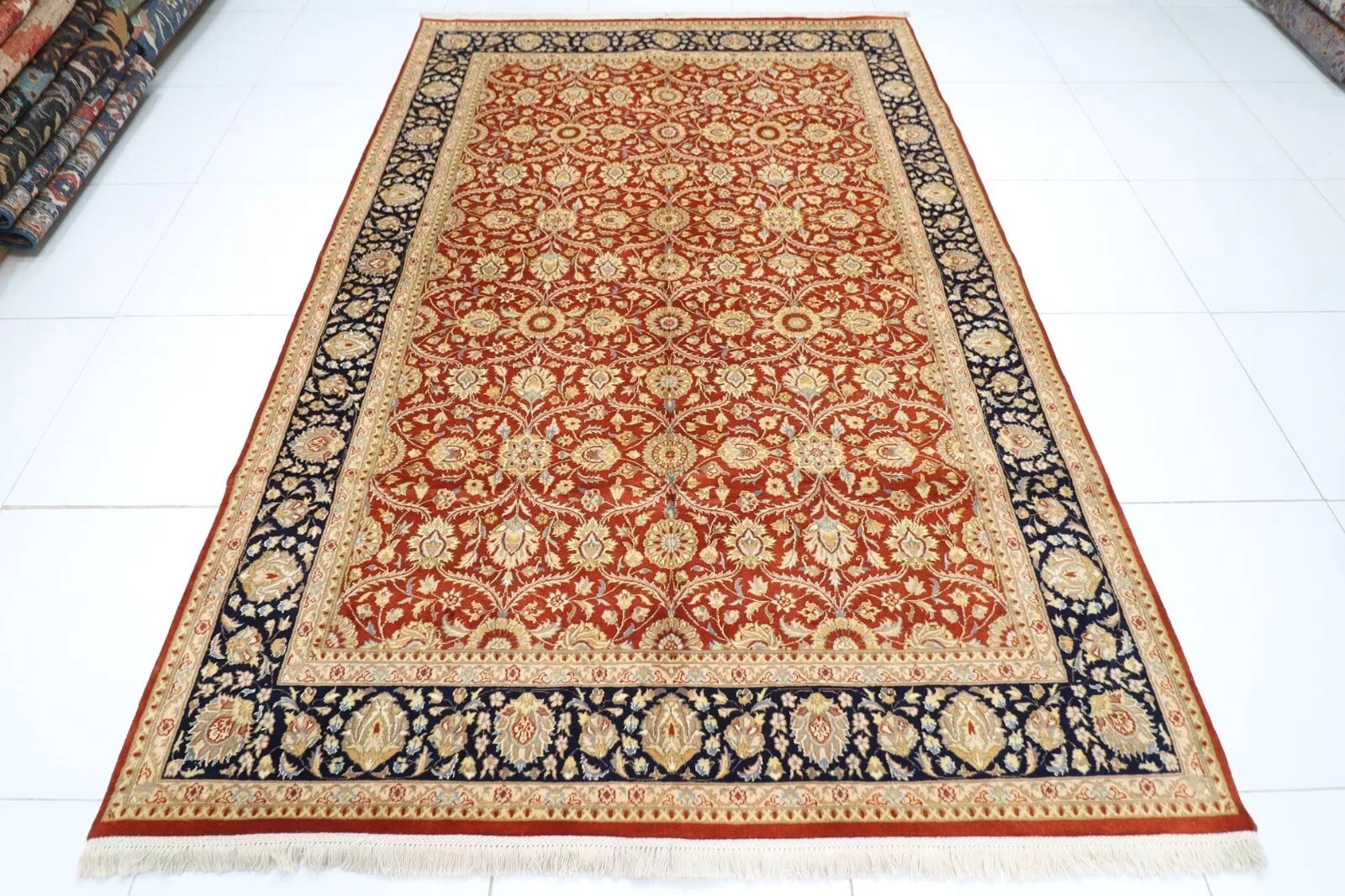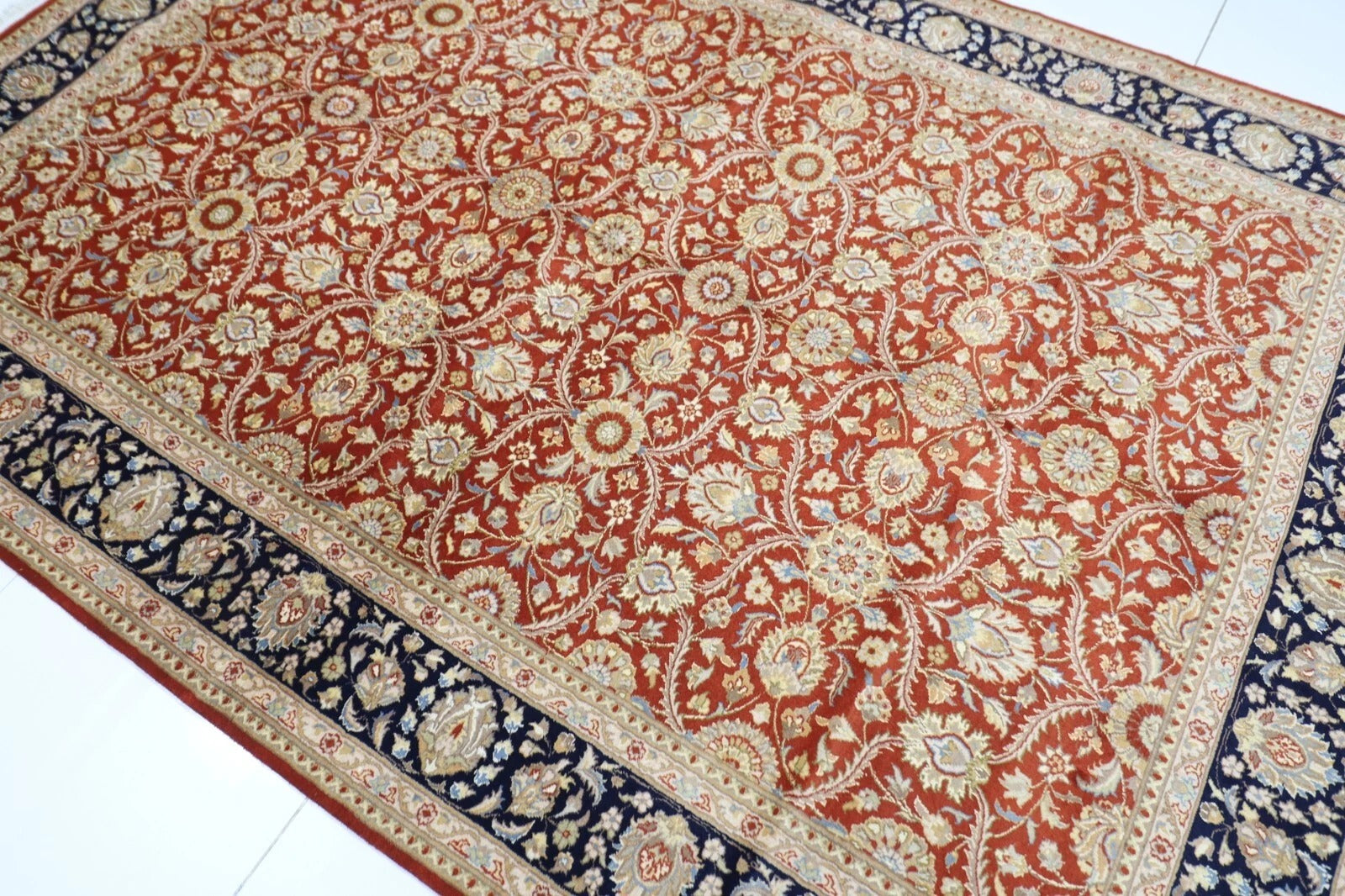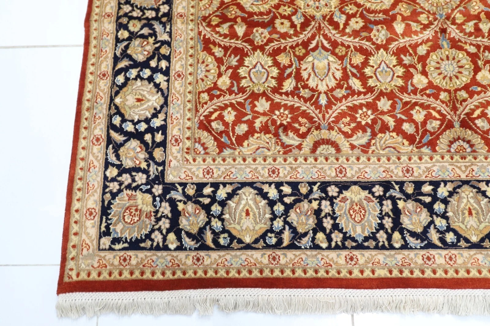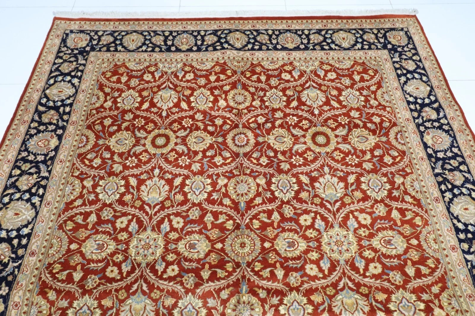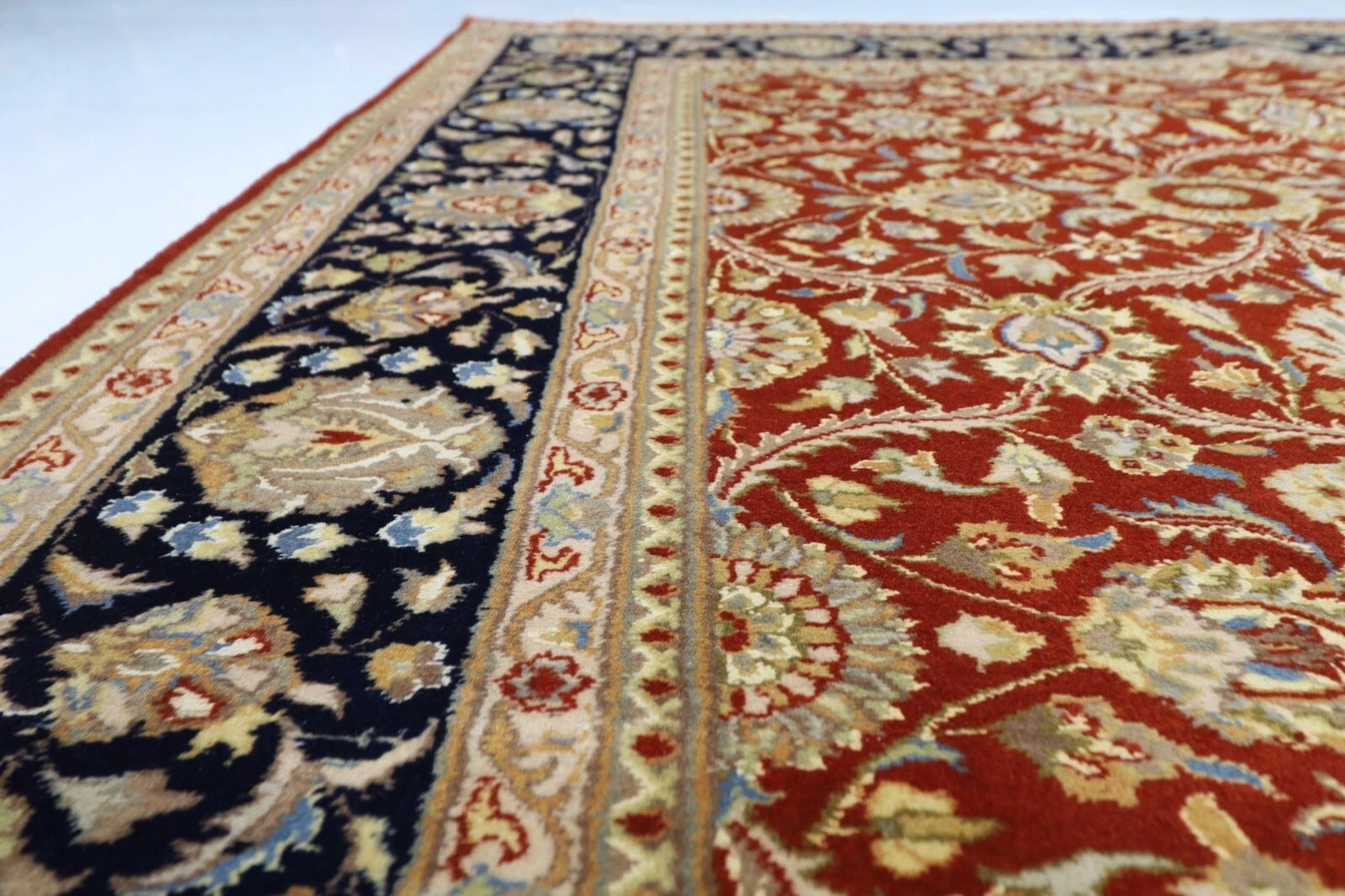 The photographs presented are captured indoor room lights without editing to show the beauty and vibrancy of the rug and also to give you the better idea that how the rug will look in your room and office, the colors in the rug will be perceived differently depending on the angle you view it from.