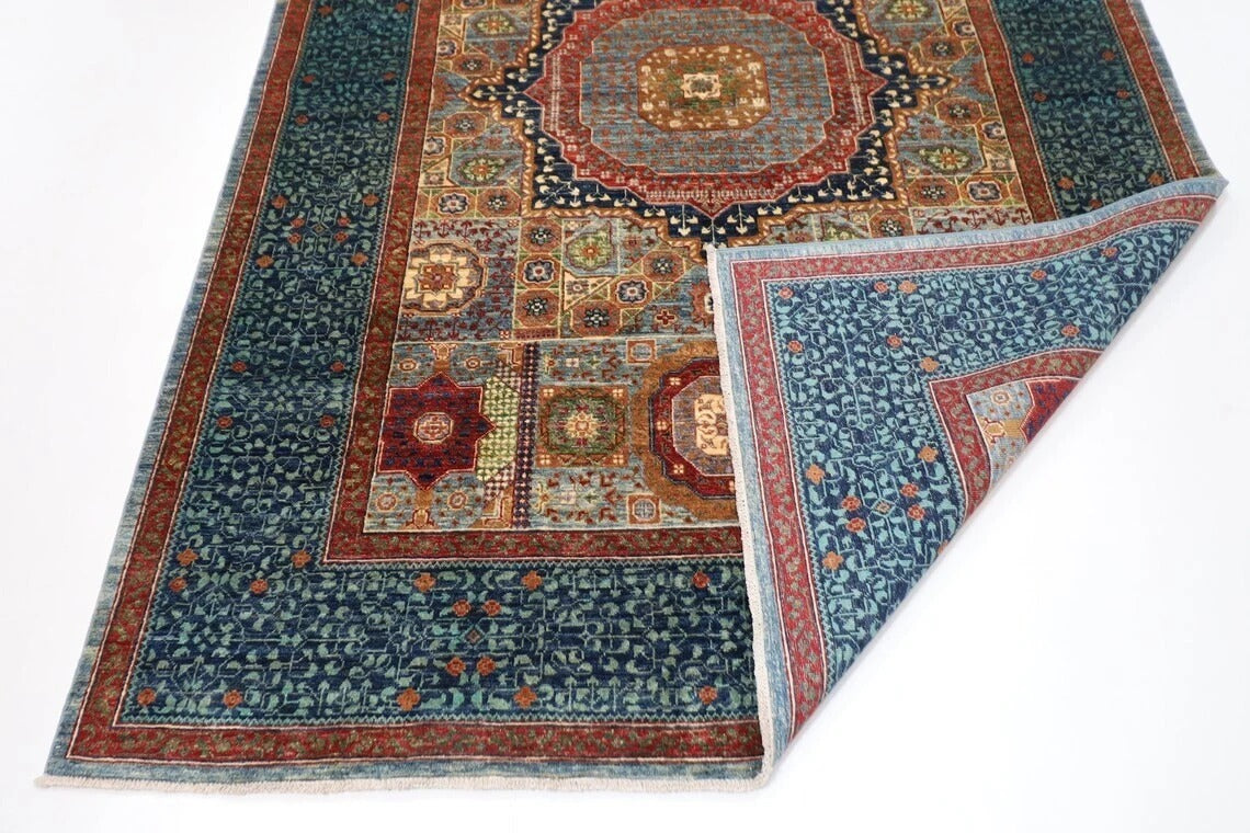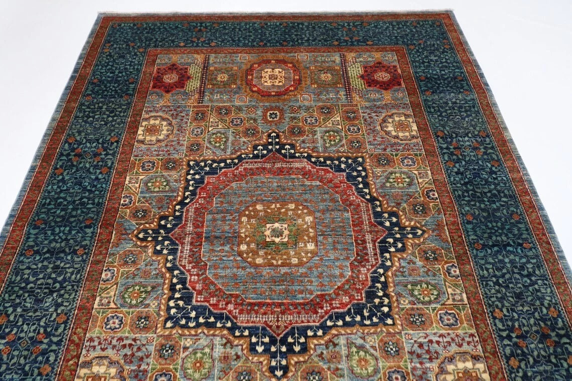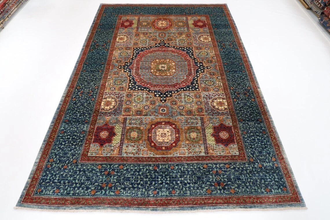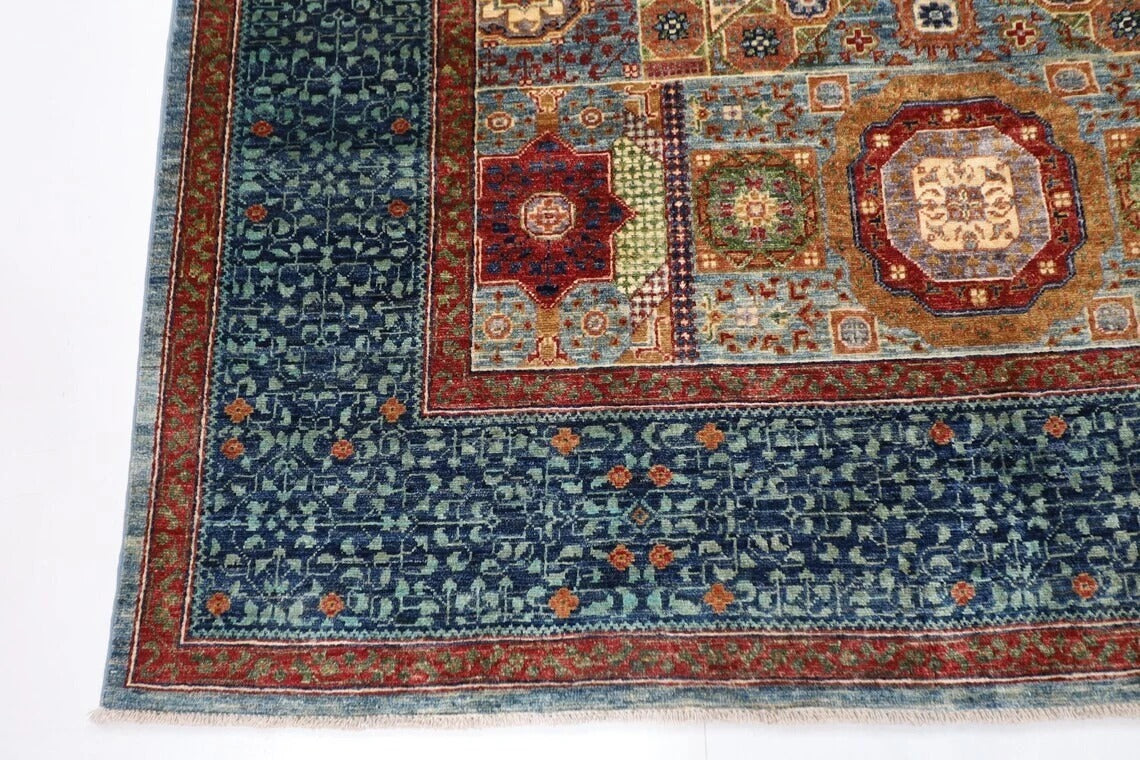 188 x 271 cm | Mamluk Blue Afghan Tribal Hand Knotted Veg Dye Wool carpet