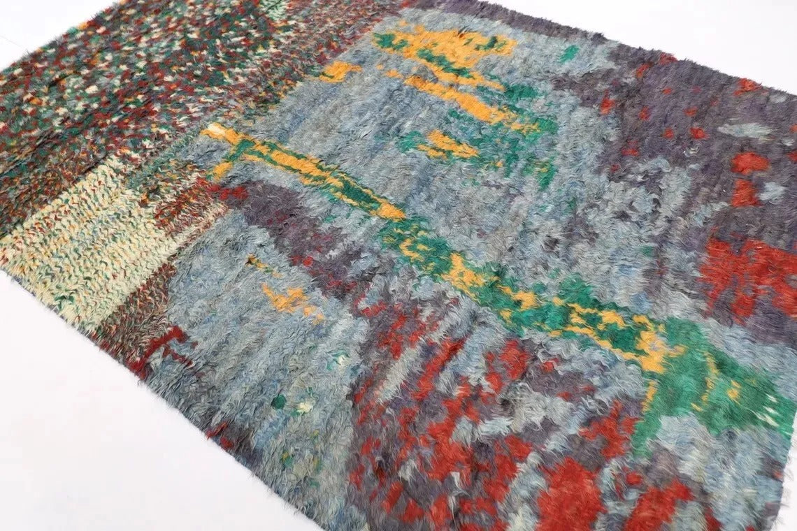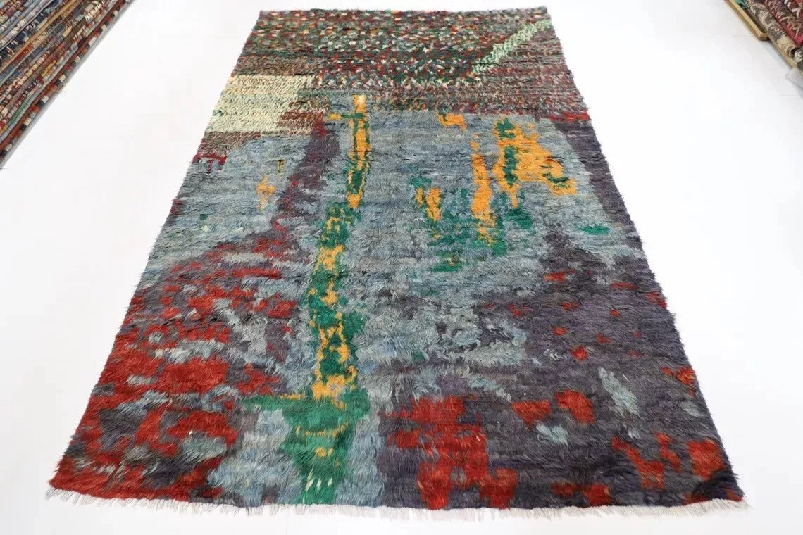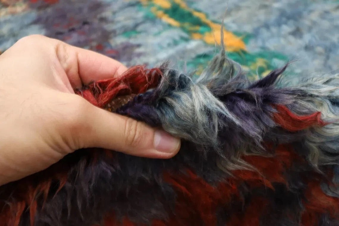 194 x 284 cm | Abstract Long Pile Afghan Tribal Hand Knotted Carpet