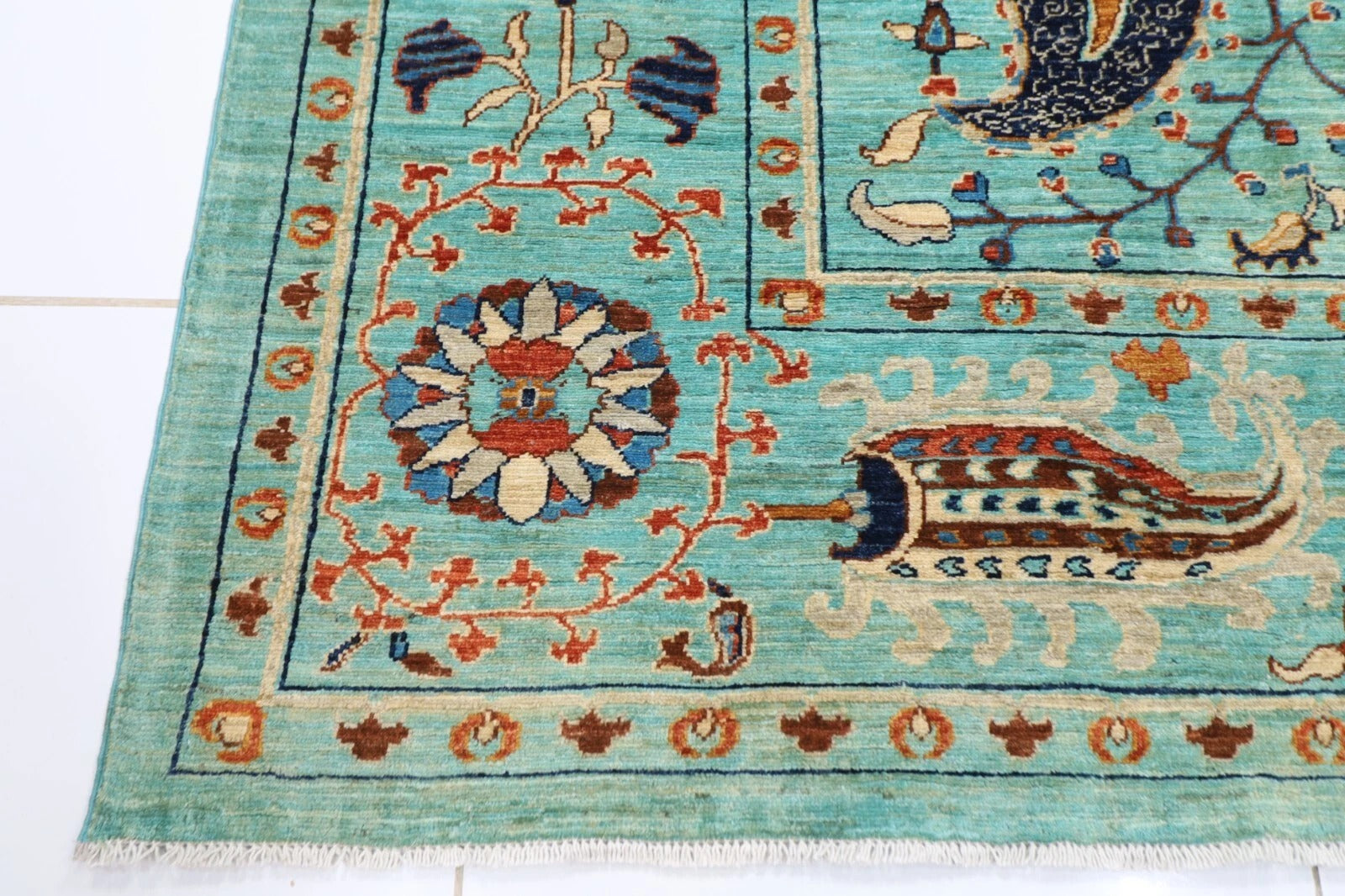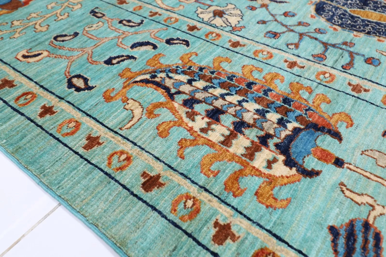 The photographs presented are captured indoor room lights without editing to show the beauty and vibrancy of the rug and also to give you the better idea that how the rug will look in your room and office, the colors in the rug will be perceived differently depending on the angle you view it from.