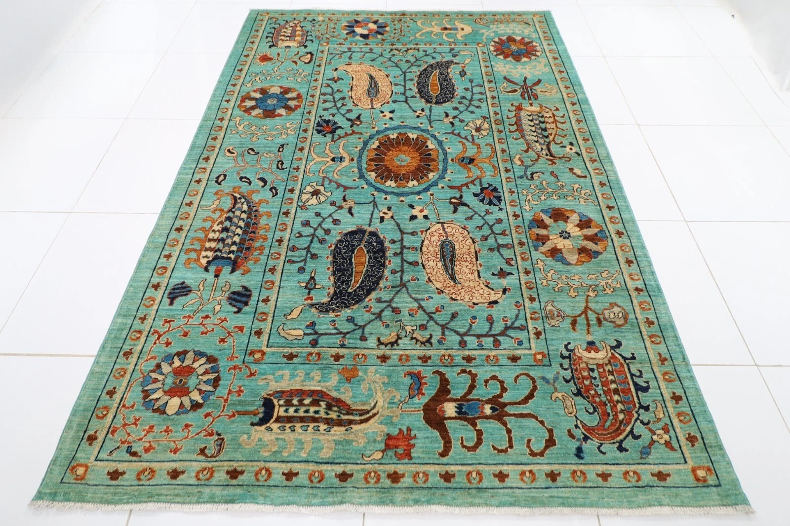 182 x 272 cm | Suzani Afghan Tribal Hand Knotted Veg Dye Wool carpet