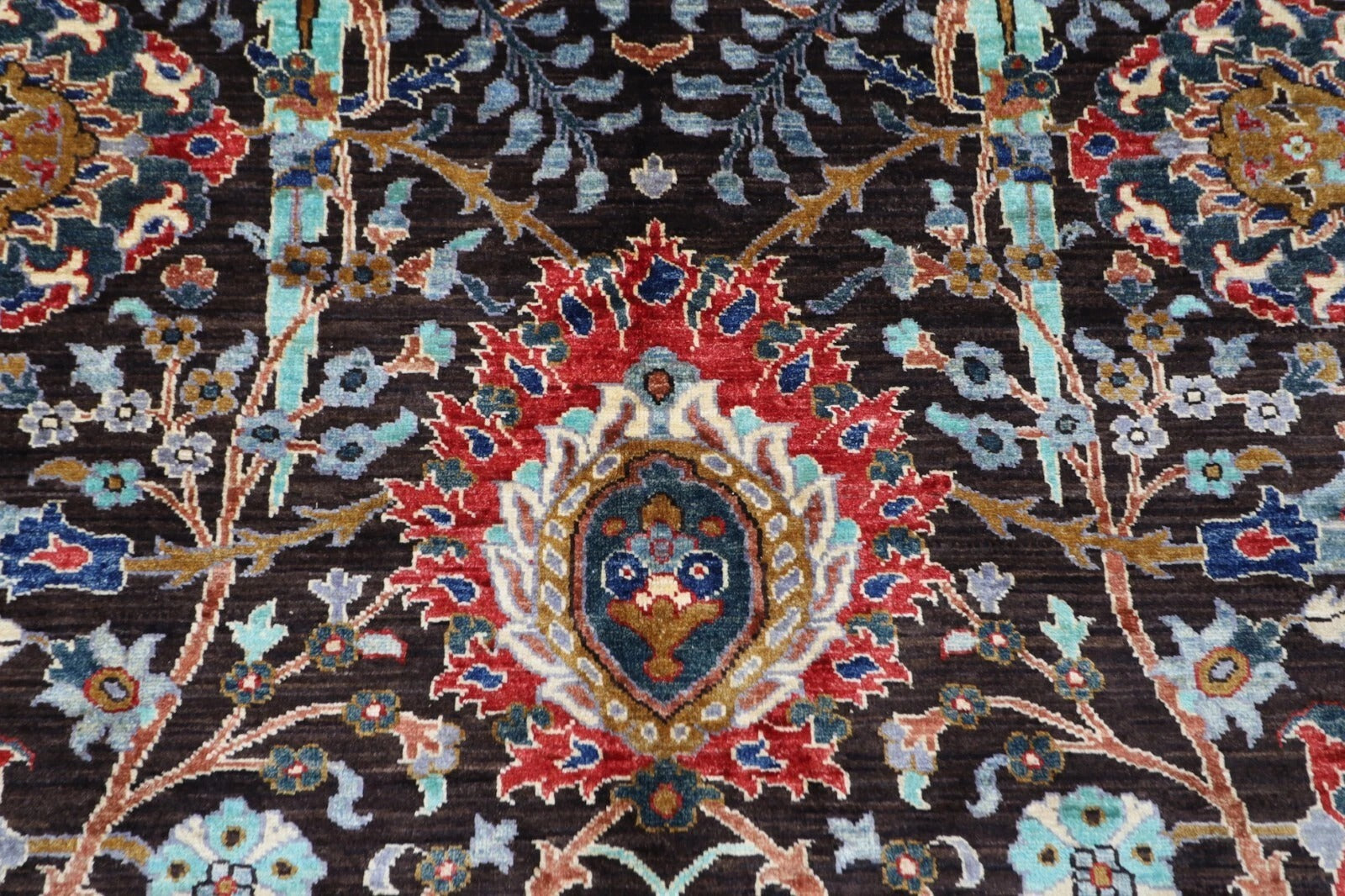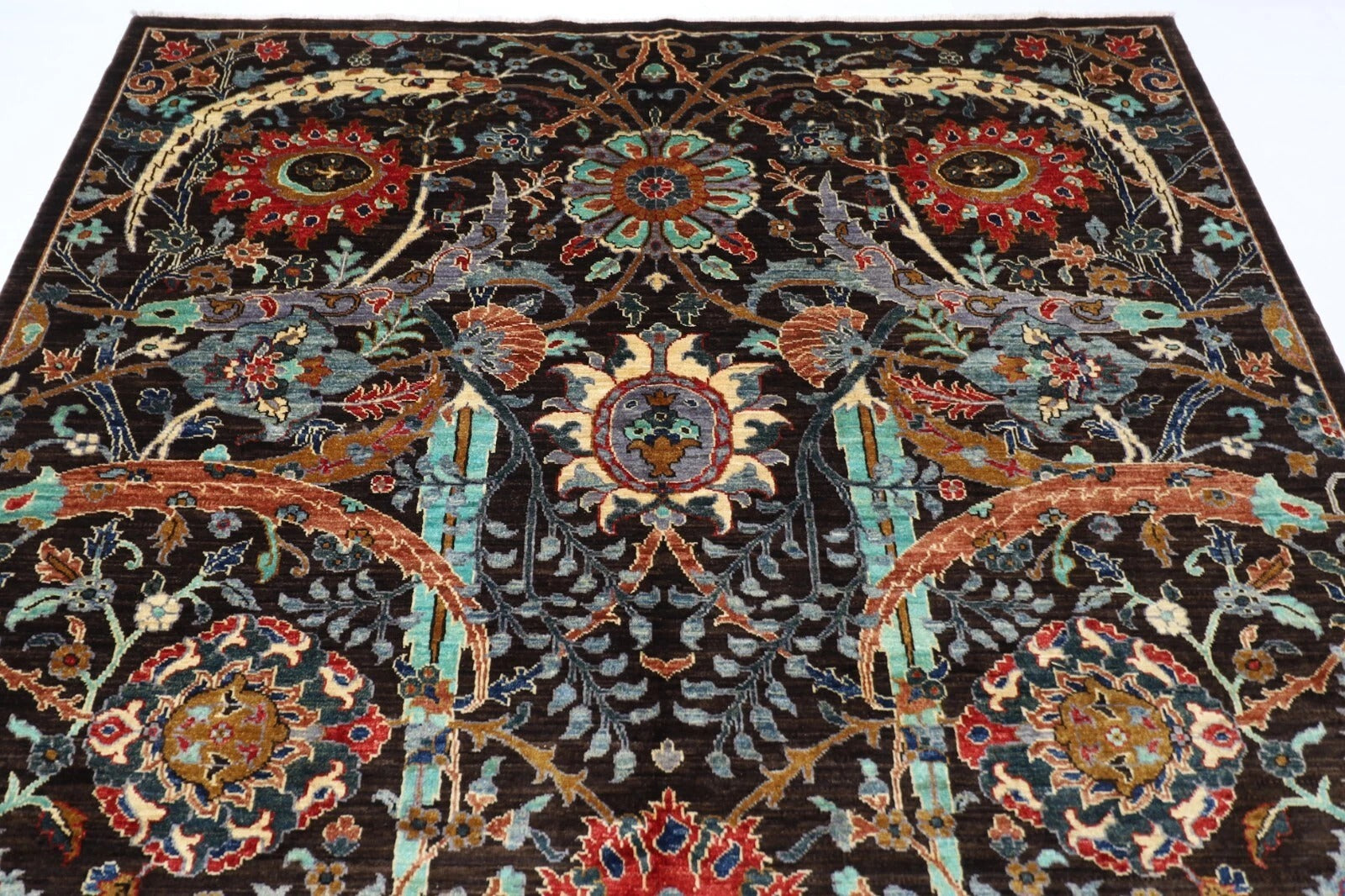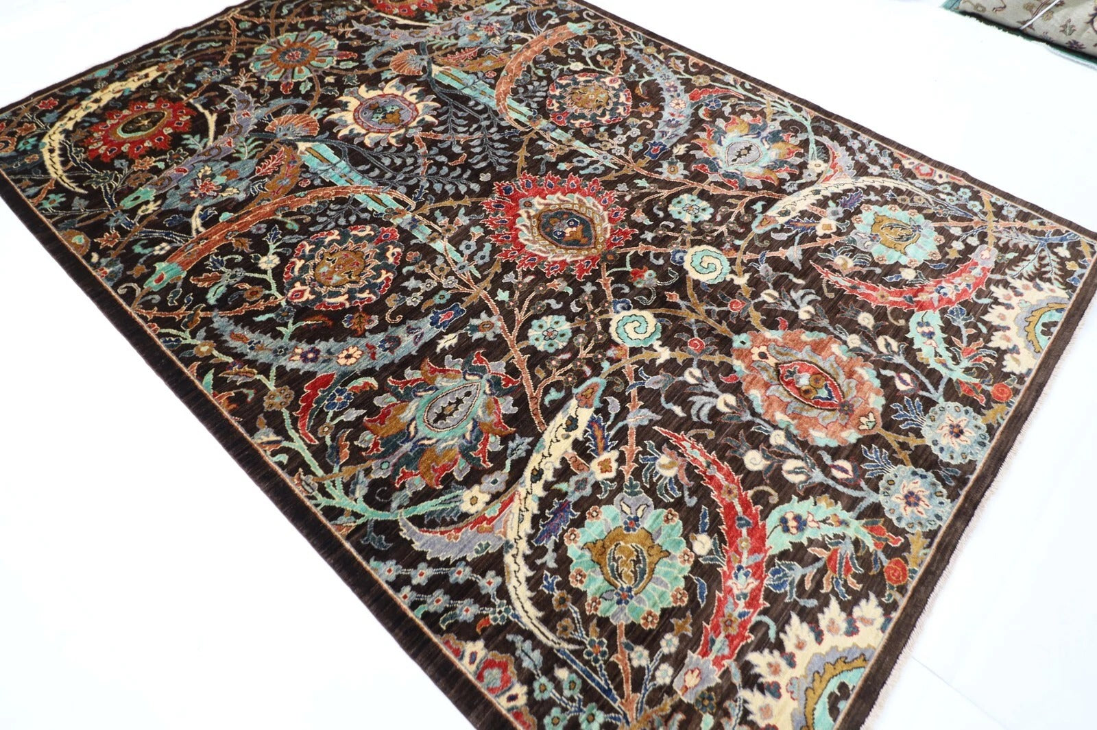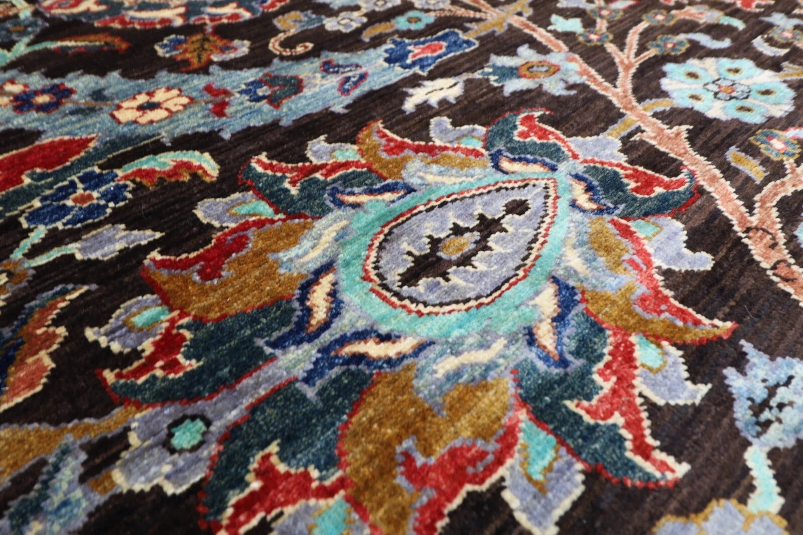 The photographs presented are captured indoor room lights without editing to show the beauty and vibrancy of the rug and also to give you the better idea that how the rug will look in your room and office, the colors in the rug will be perceived differently depending on the angle you view it from.