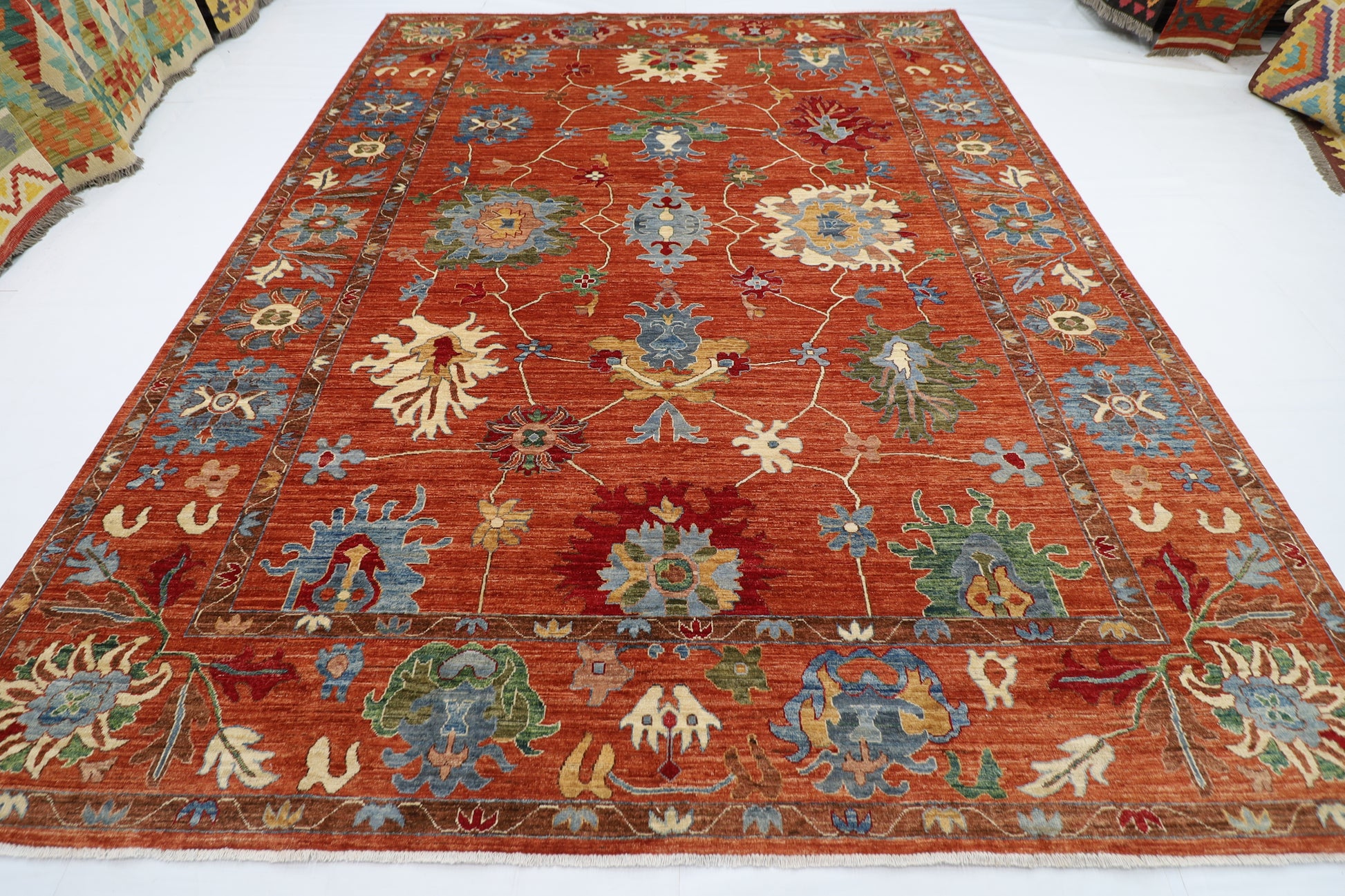 276 x 357 cm | Orange Oushak Handmade Afghan Area Rug Hand Knotted Carpet Living Room Rug