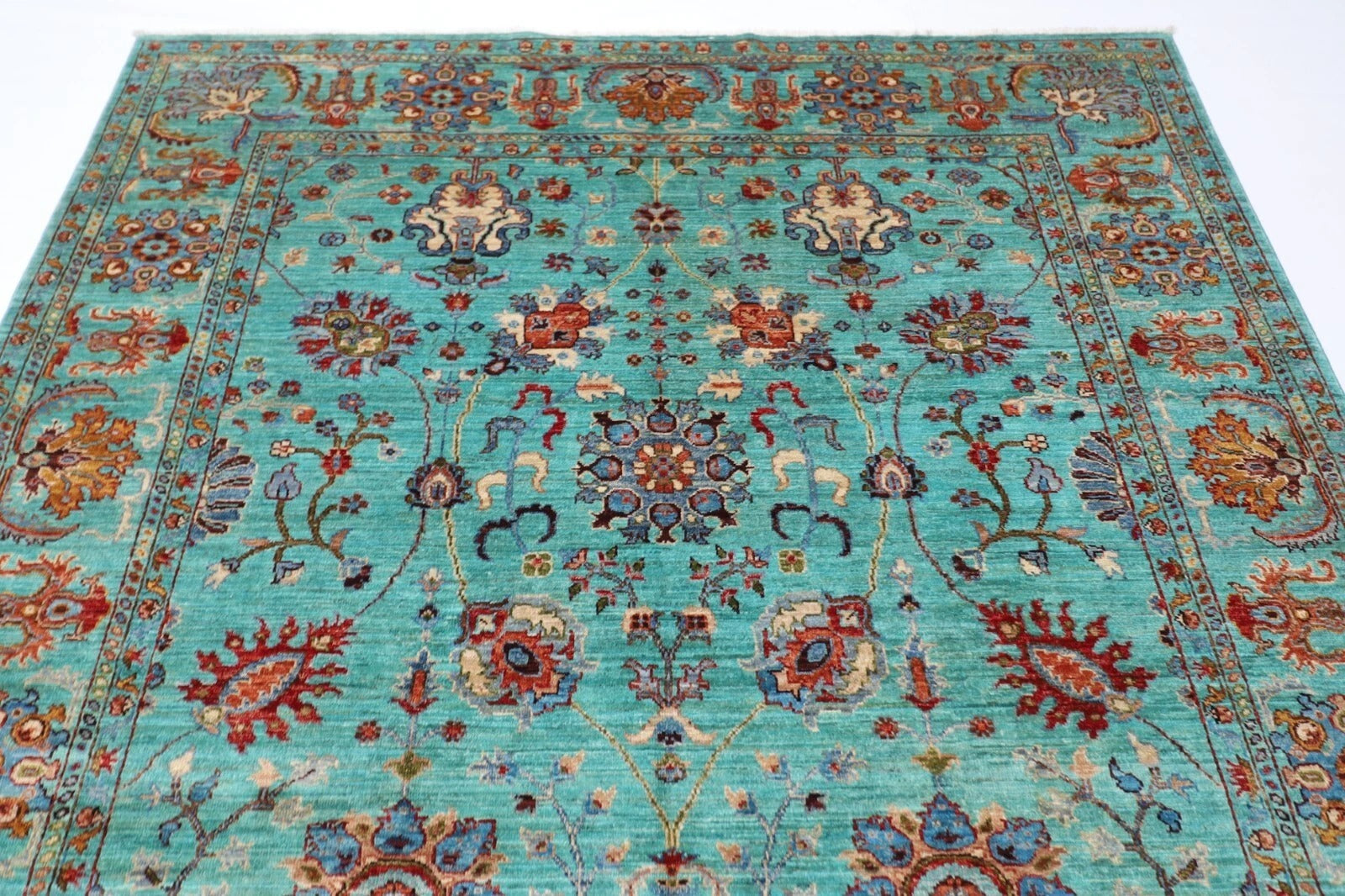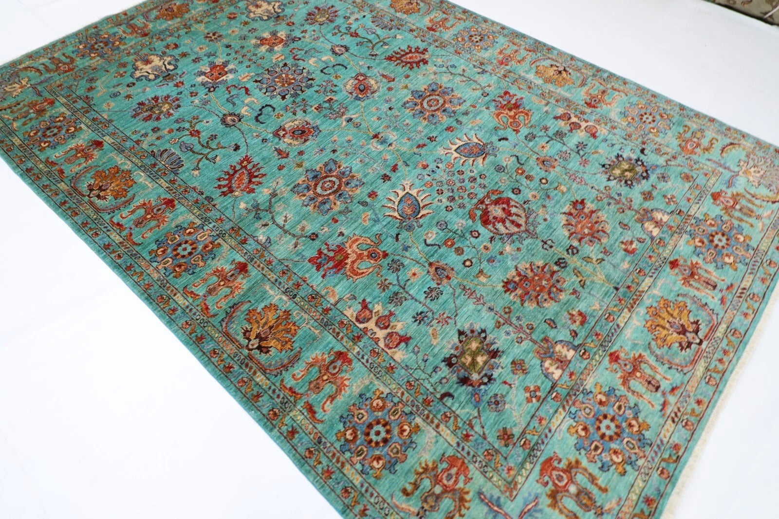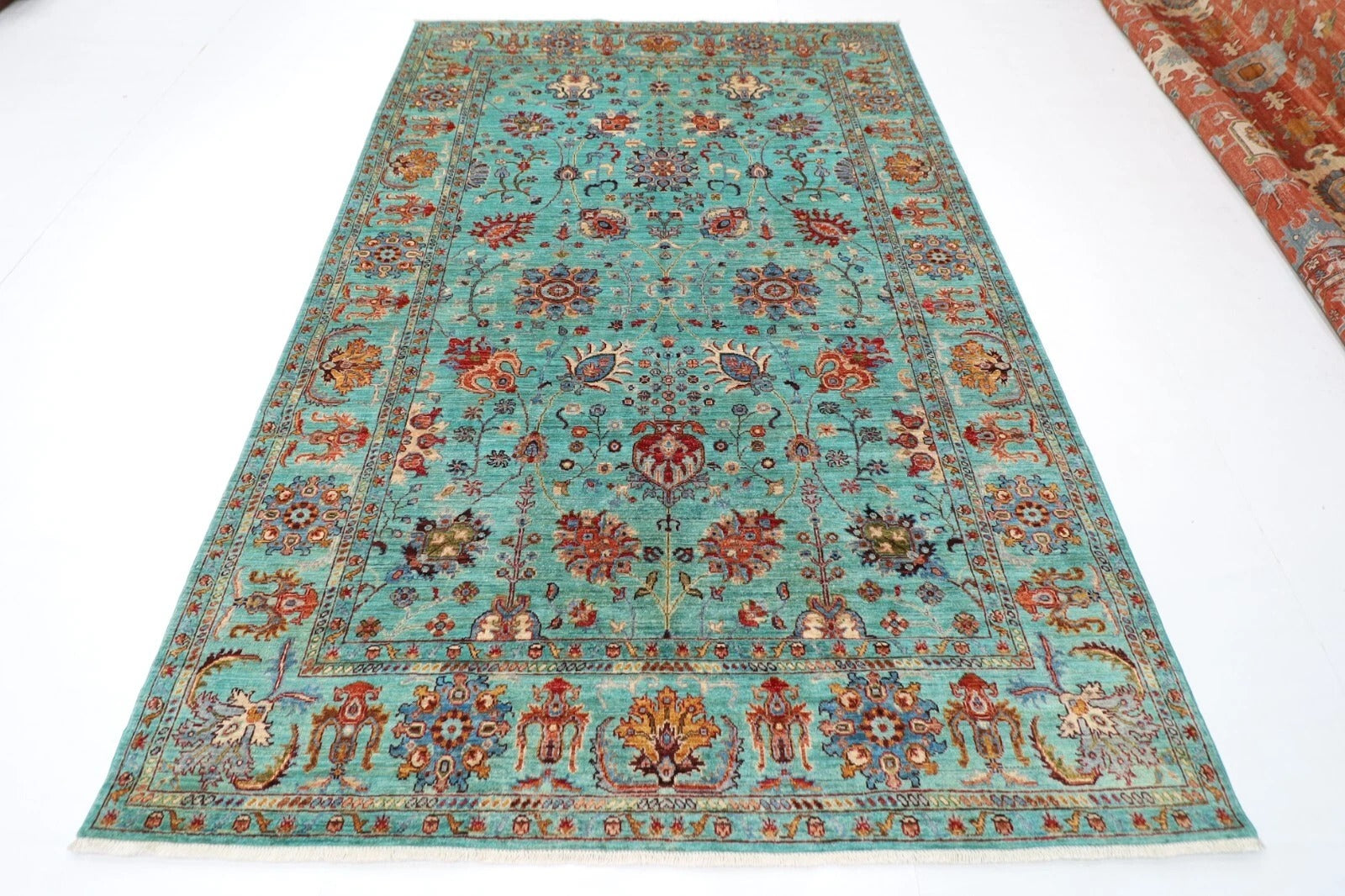 203 x 296 cm | Turquoise Afghan Tribal Hand Knotted Carpet