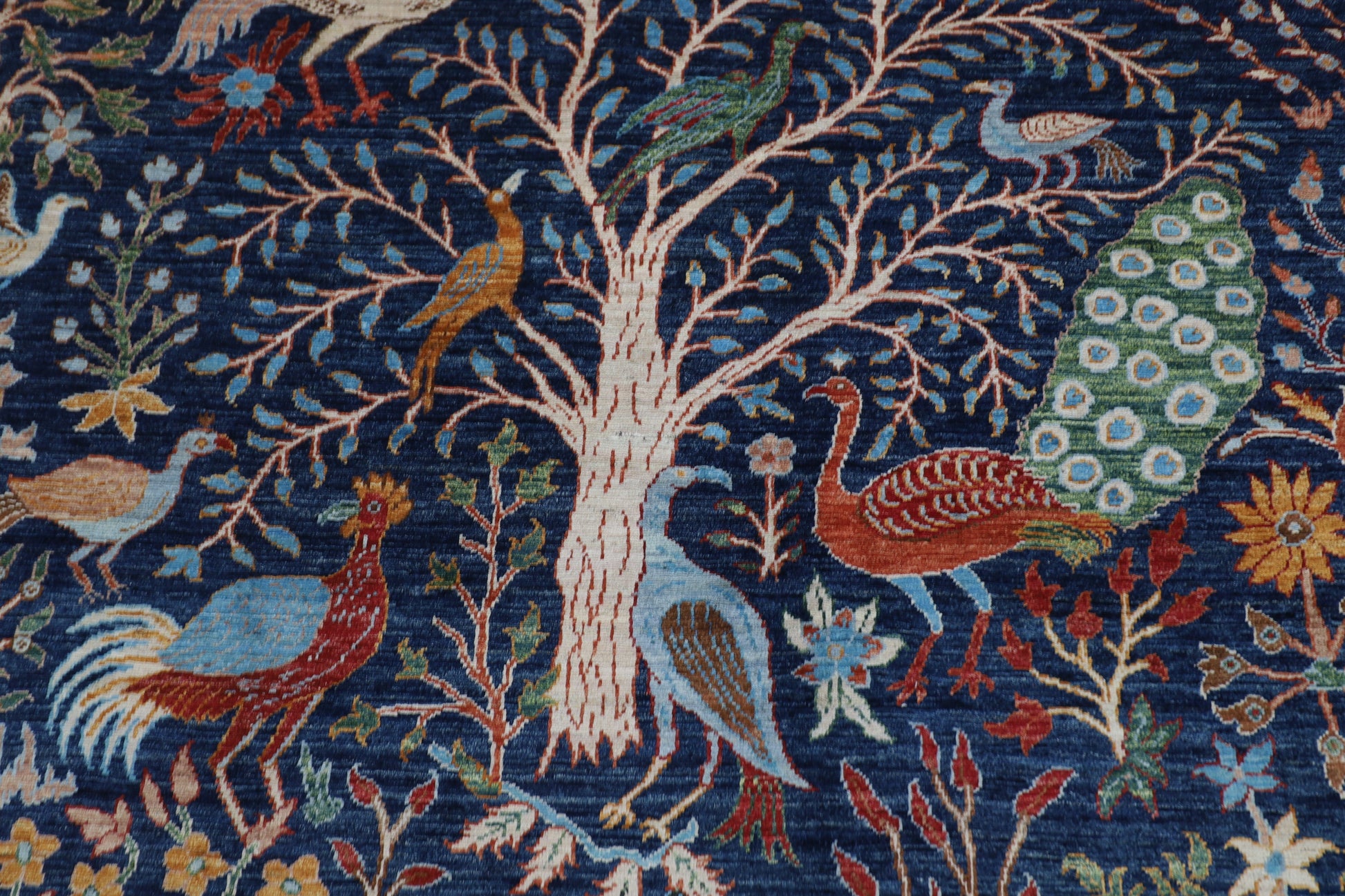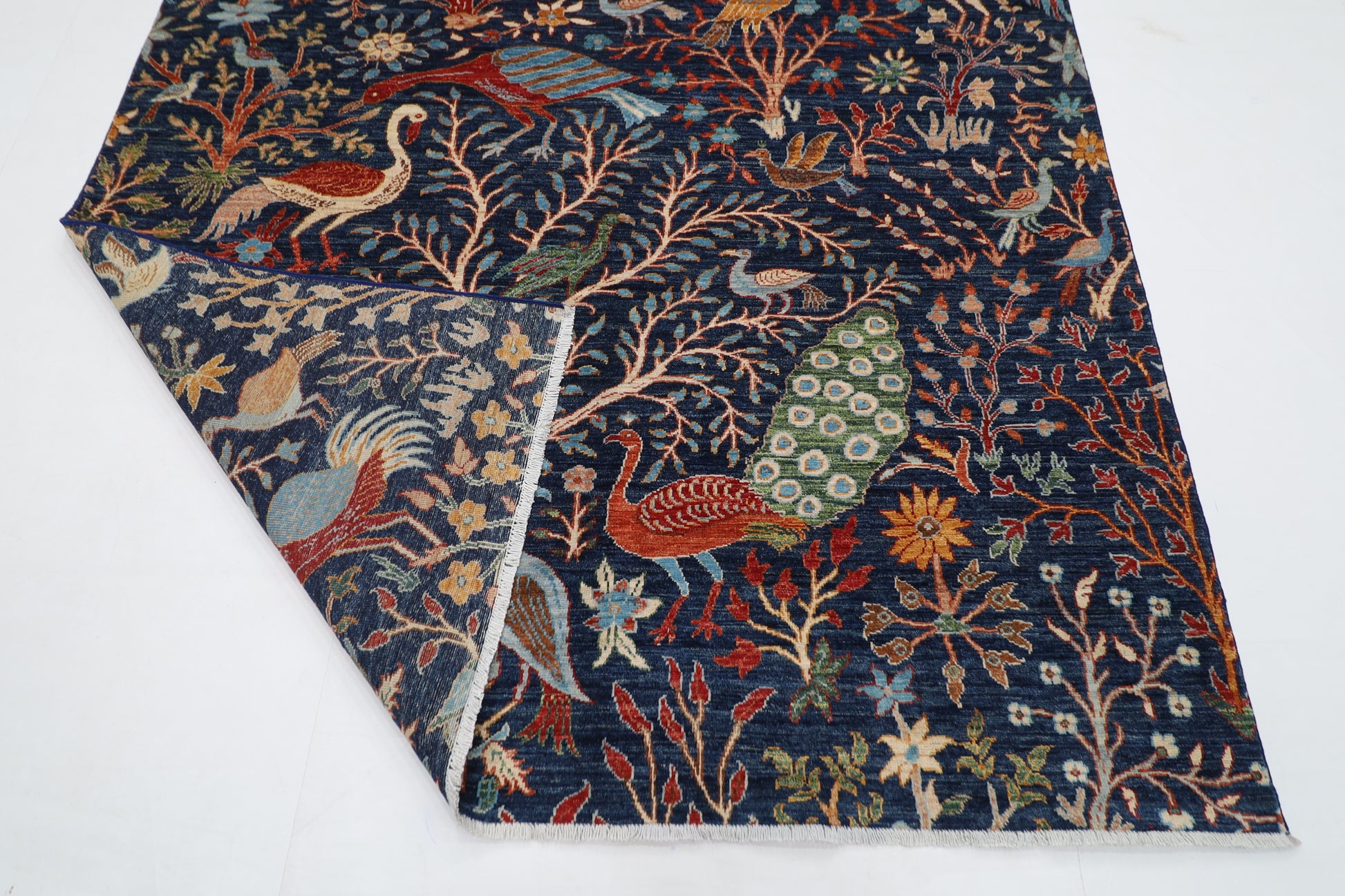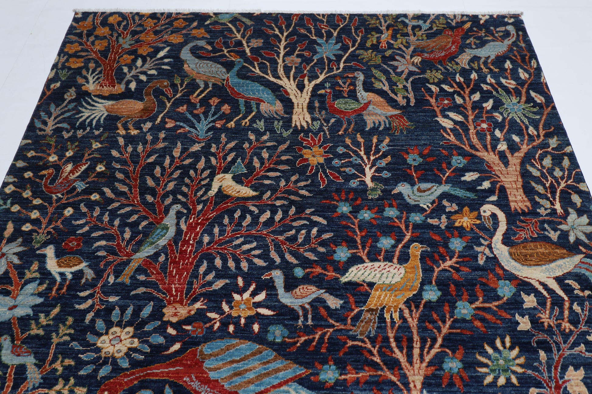 183 x 272 cm | Oriental Birds Blue Afghan Tribal Hand Knotted Wool Carpet