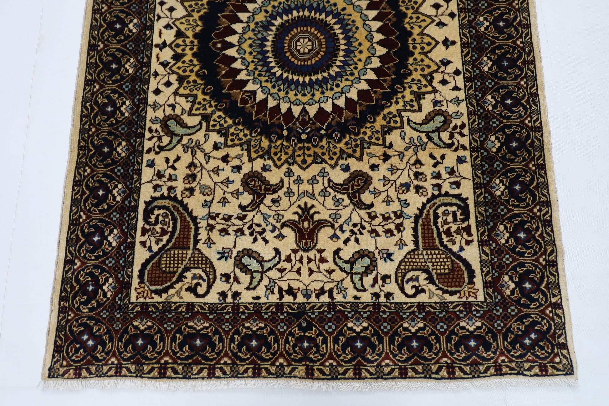105 x 146 cm | Medallion Afghan Tribal Hand Knotted Natural Veg Dye Wool Carpet