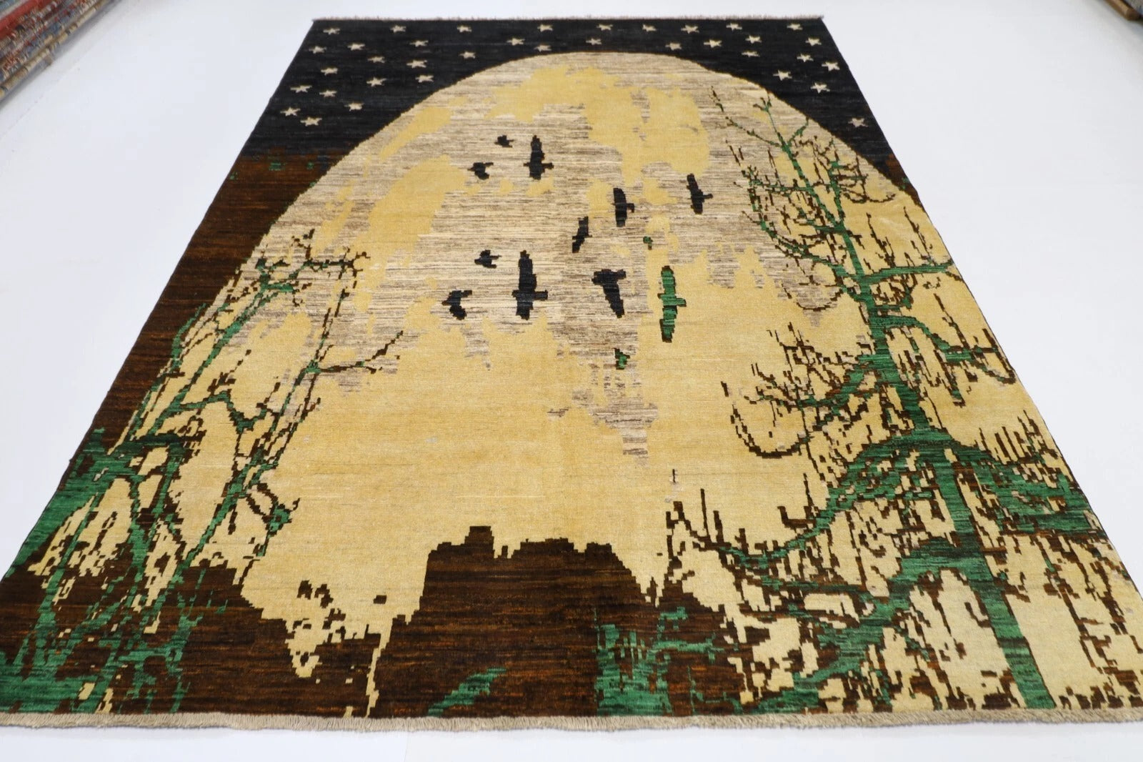 The photographs presented are captured indoor room lights without editing to show the beauty and vibrancy of the rug and also to give you the better idea that how the rug will look in your room and office, the colors in the rug will be perceived differently depending on the angle you view it from.