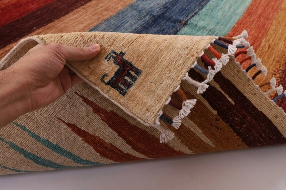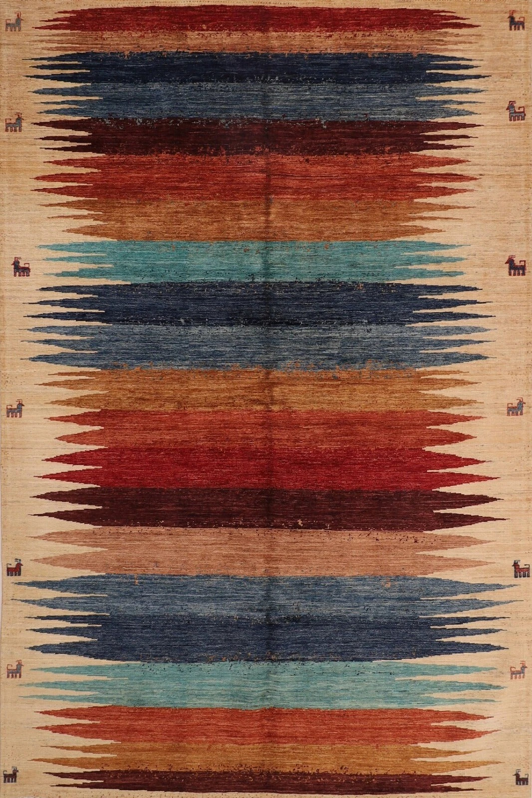 200 x 308 cm | Striped Gabbeh Afghan Tribal Hand Knotted Carpet
