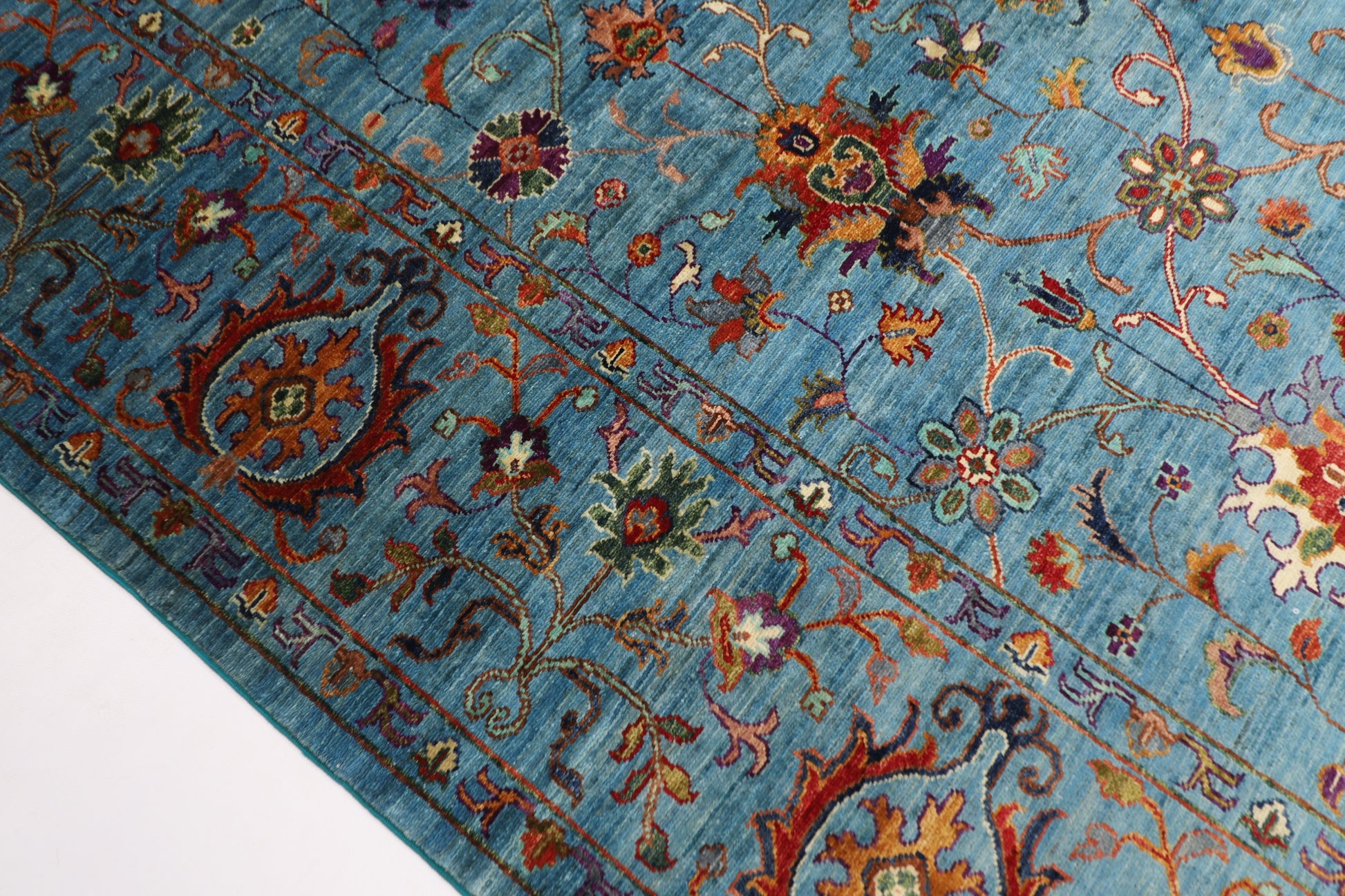The photographs presented are captured indoor room lights without editing to show the beauty and vibrancy of the rug and also to give you the better idea that how the rug will look in your room and office, the colors in the rug will be perceived differently depending on the angle you view it from.