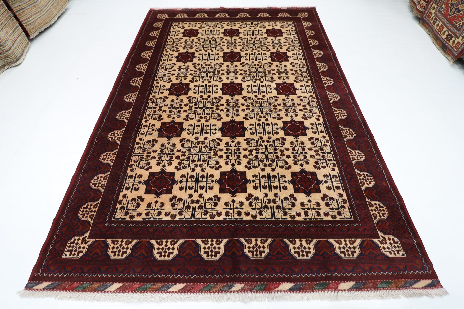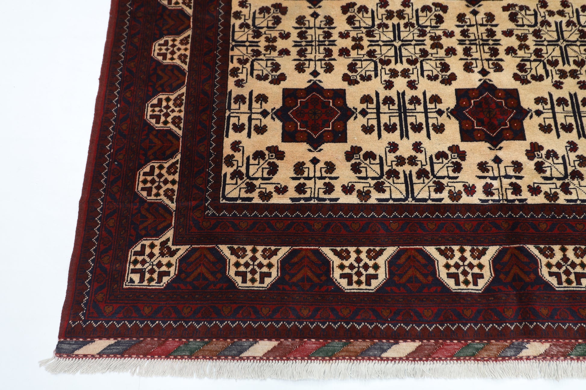 203 x 303 cm | Beige Khal Mohammadi Afghan Tribal Hand Knotted Wool Carpet