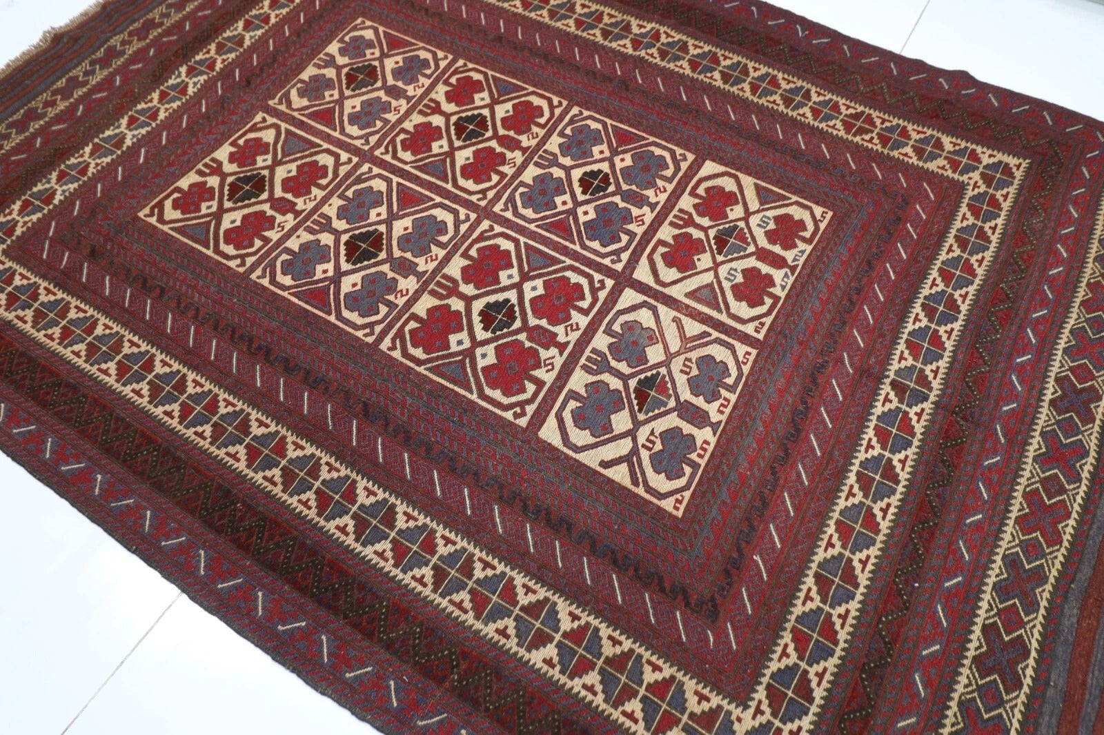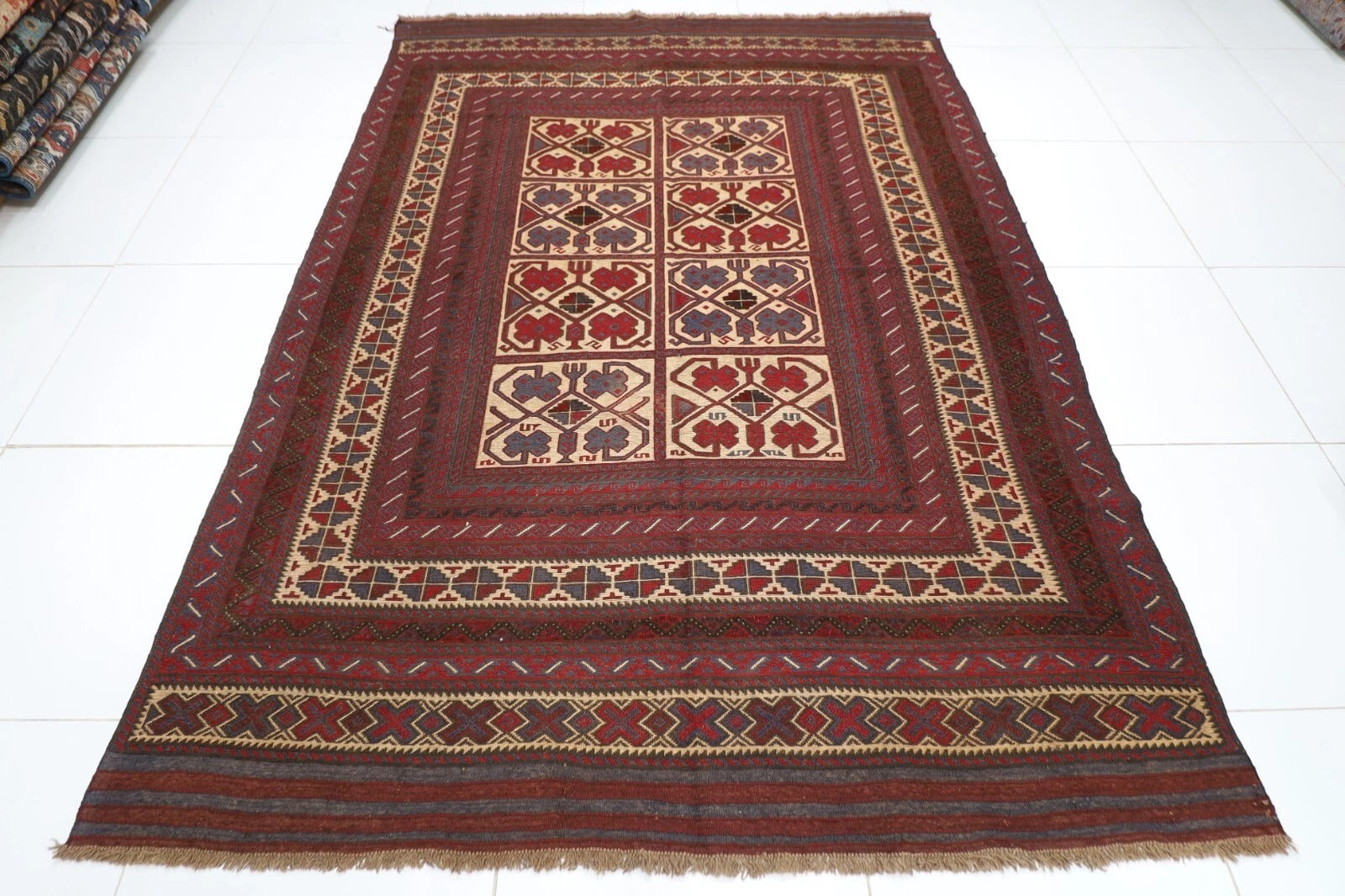 204 x 283 cm | Vintage Flat Weaved Kilim Afghan Tribal Hand Knotted Carpet