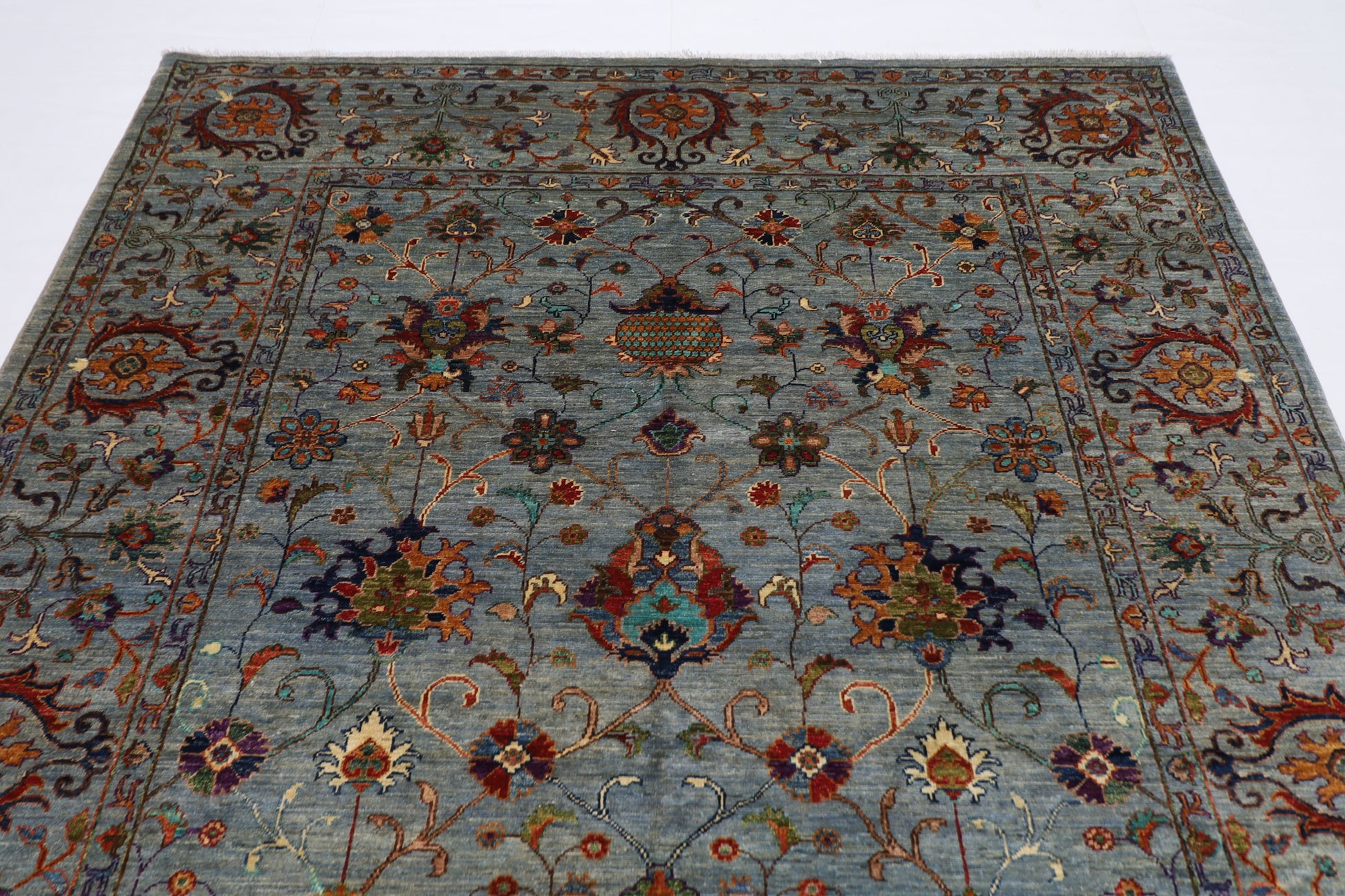 The photographs presented are captured indoor room lights without editing to show the beauty and vibrancy of the rug and also to give you the better idea that how the rug will look in your room and office, the colors in the rug will be perceived differently depending on the angle you view it from.