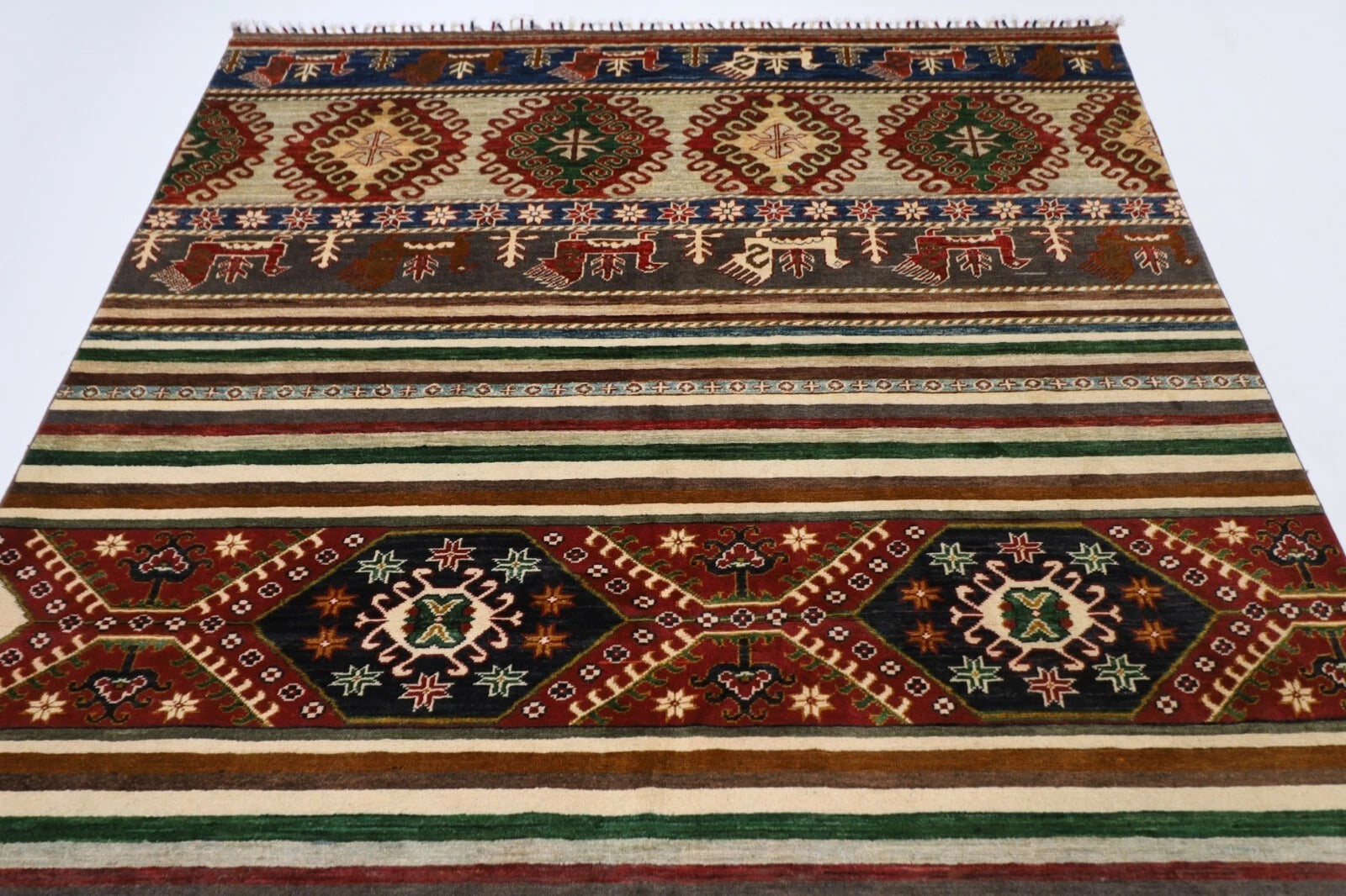 196 x 299 cm | Striped Afghan Tribal Hand Knotted Carpet