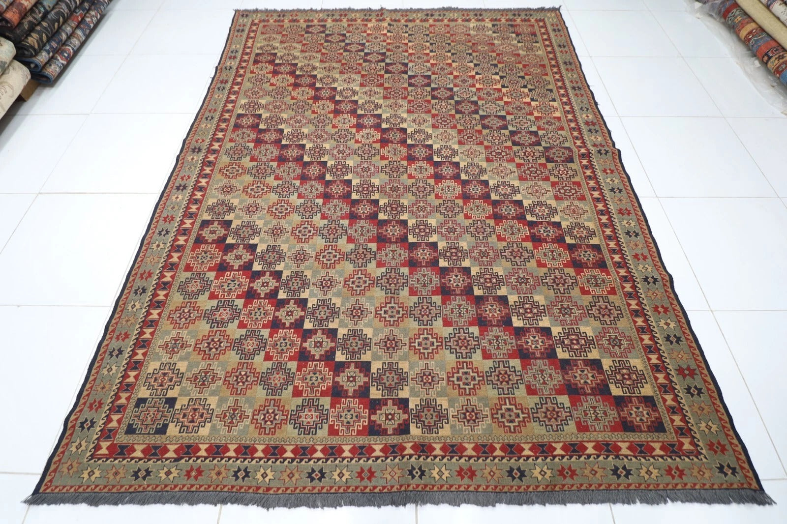 229 x 301 cm | Sumak Afghan Tribal Hand Knotted Kilim