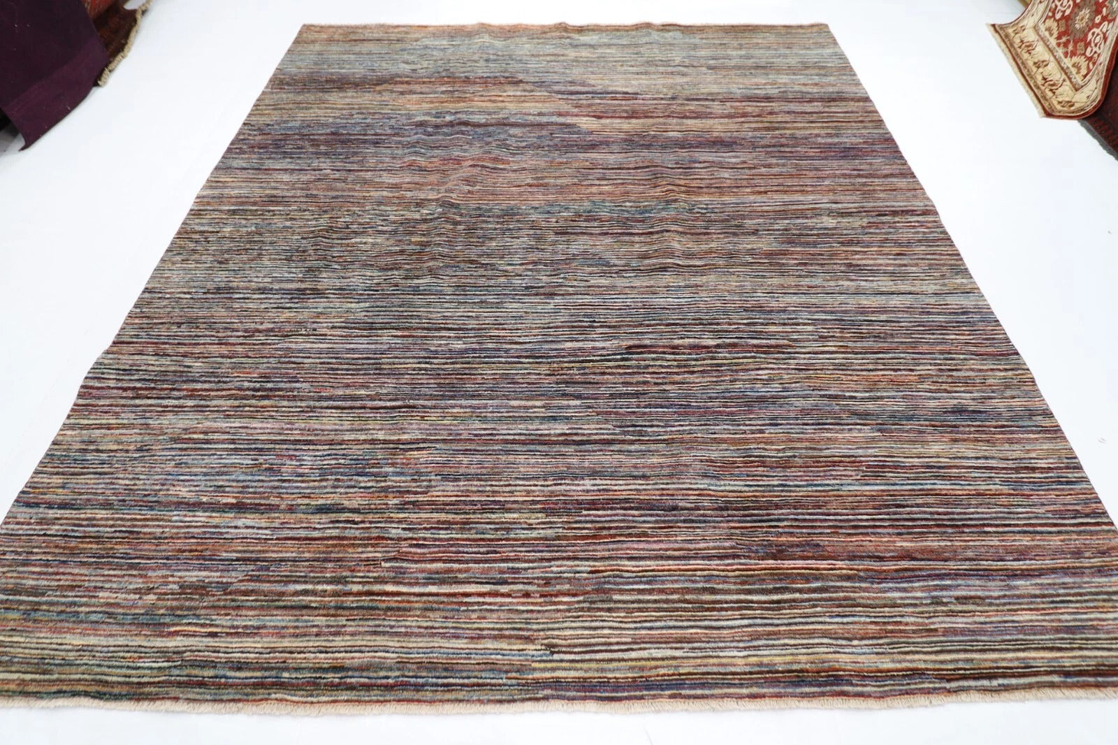 The photographs presented are captured indoor room lights without editing to show the beauty and vibrancy of the rug and also to give you the better idea that how the rug will look in your room and office, the colors in the rug will be perceived differently depending on the angle you view it from.