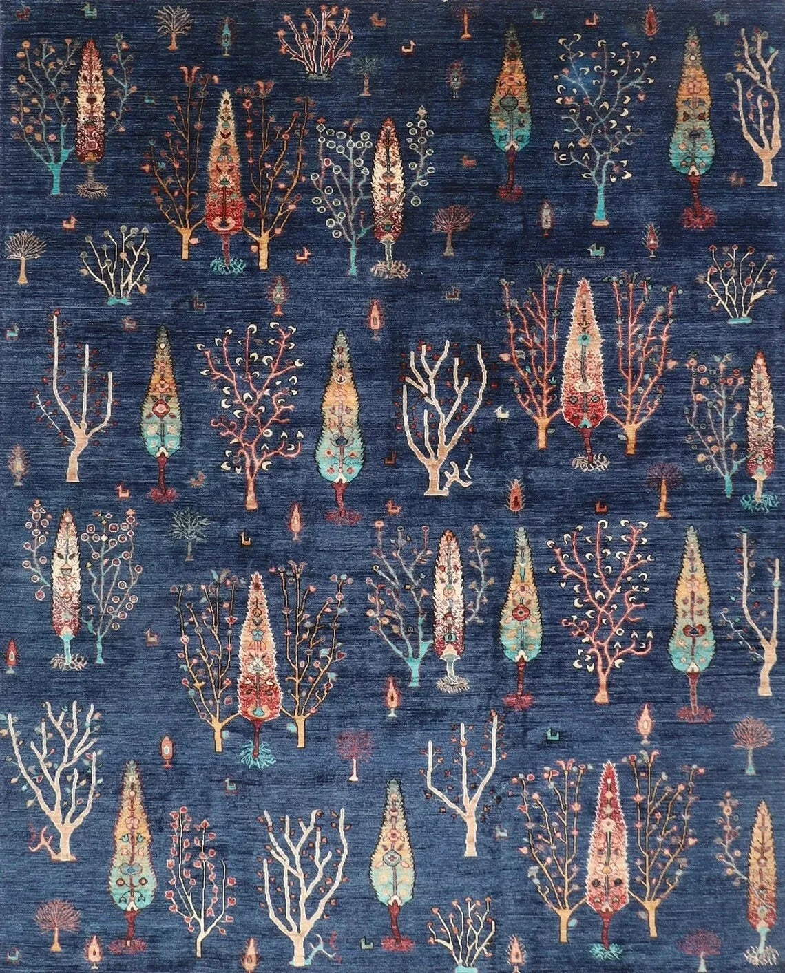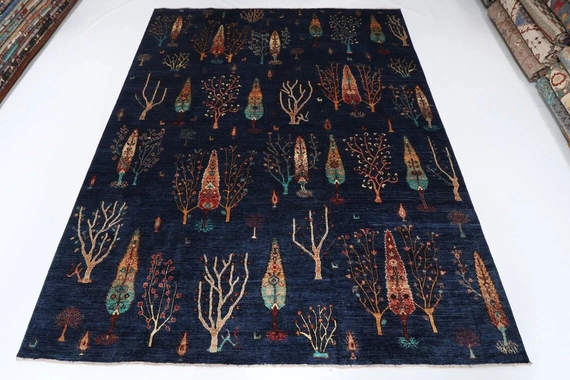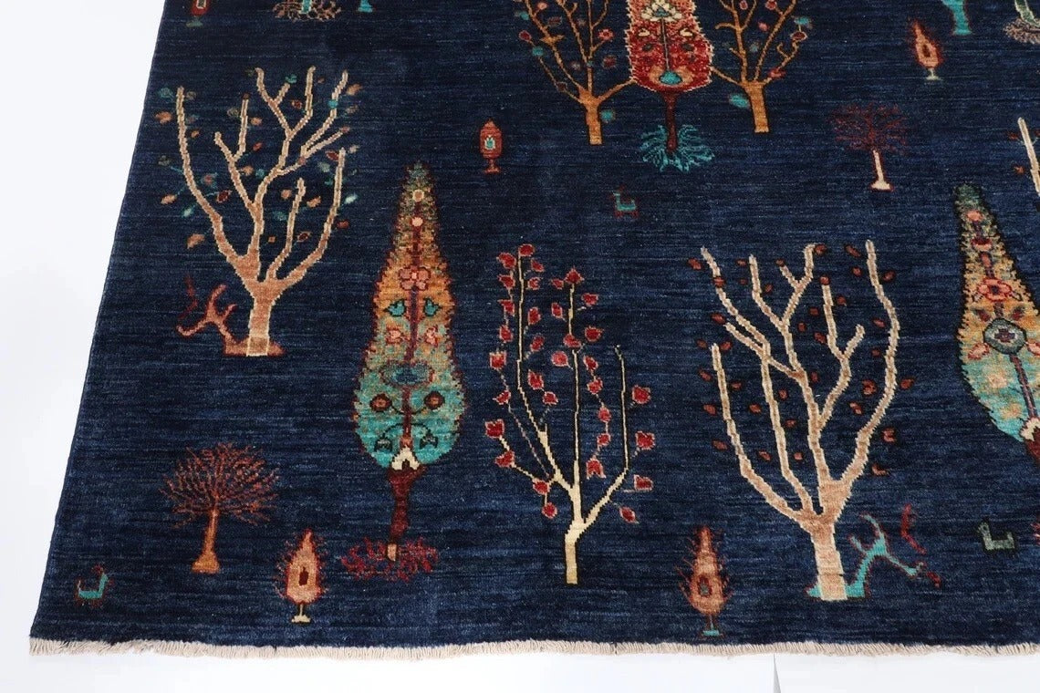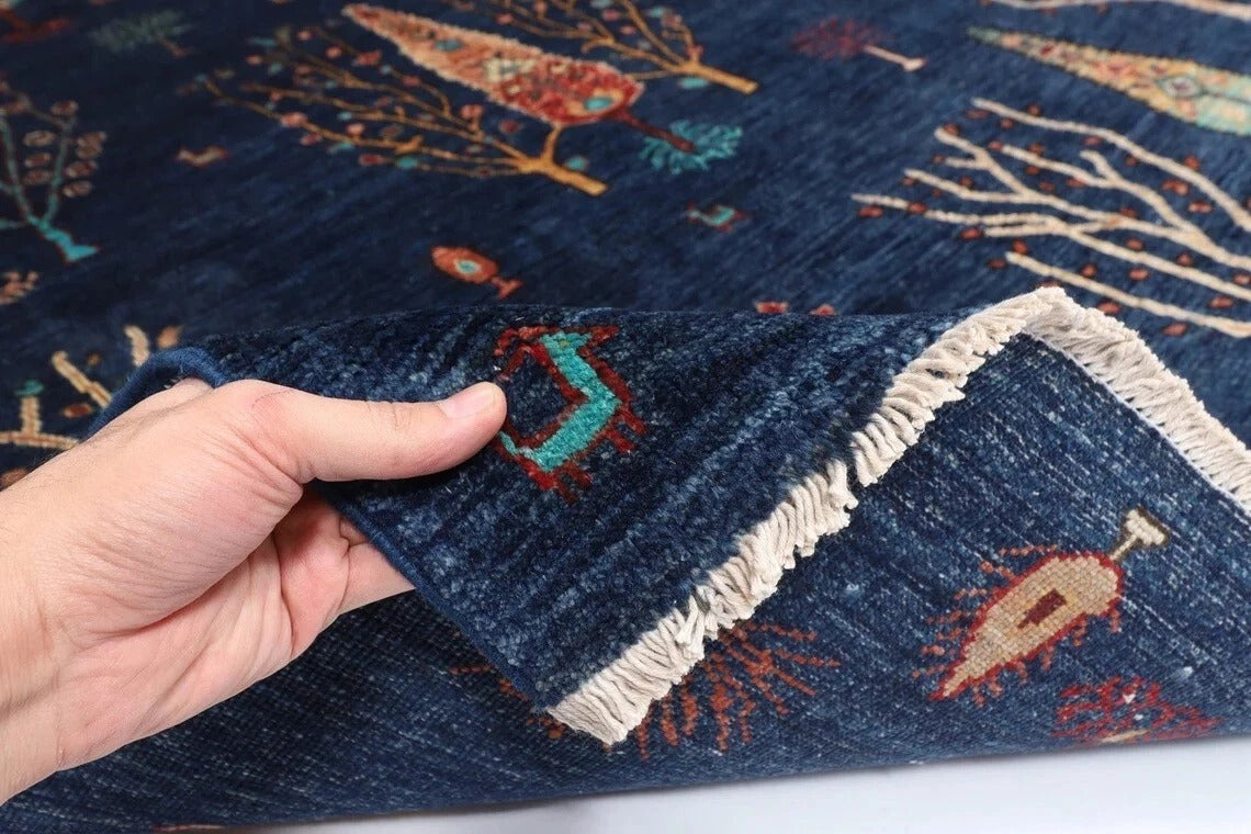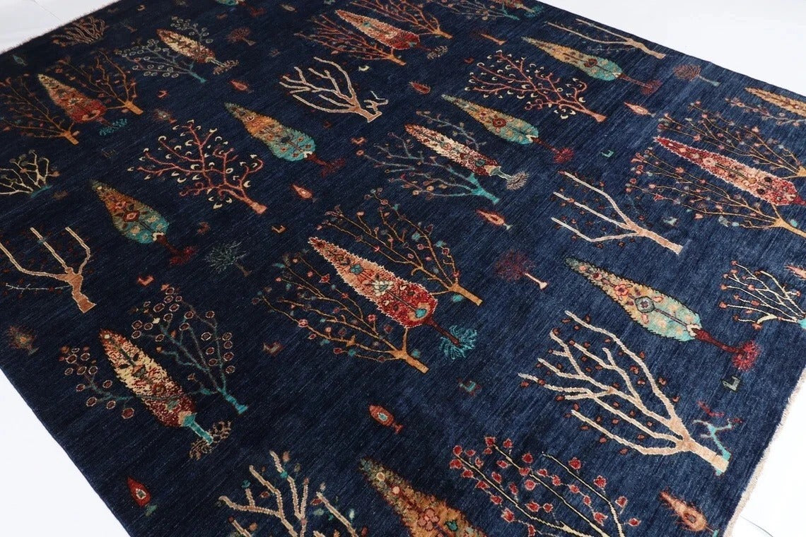 246 x 306 cm | Tree Navy Afghan Tribal Hand Knotted Carpet