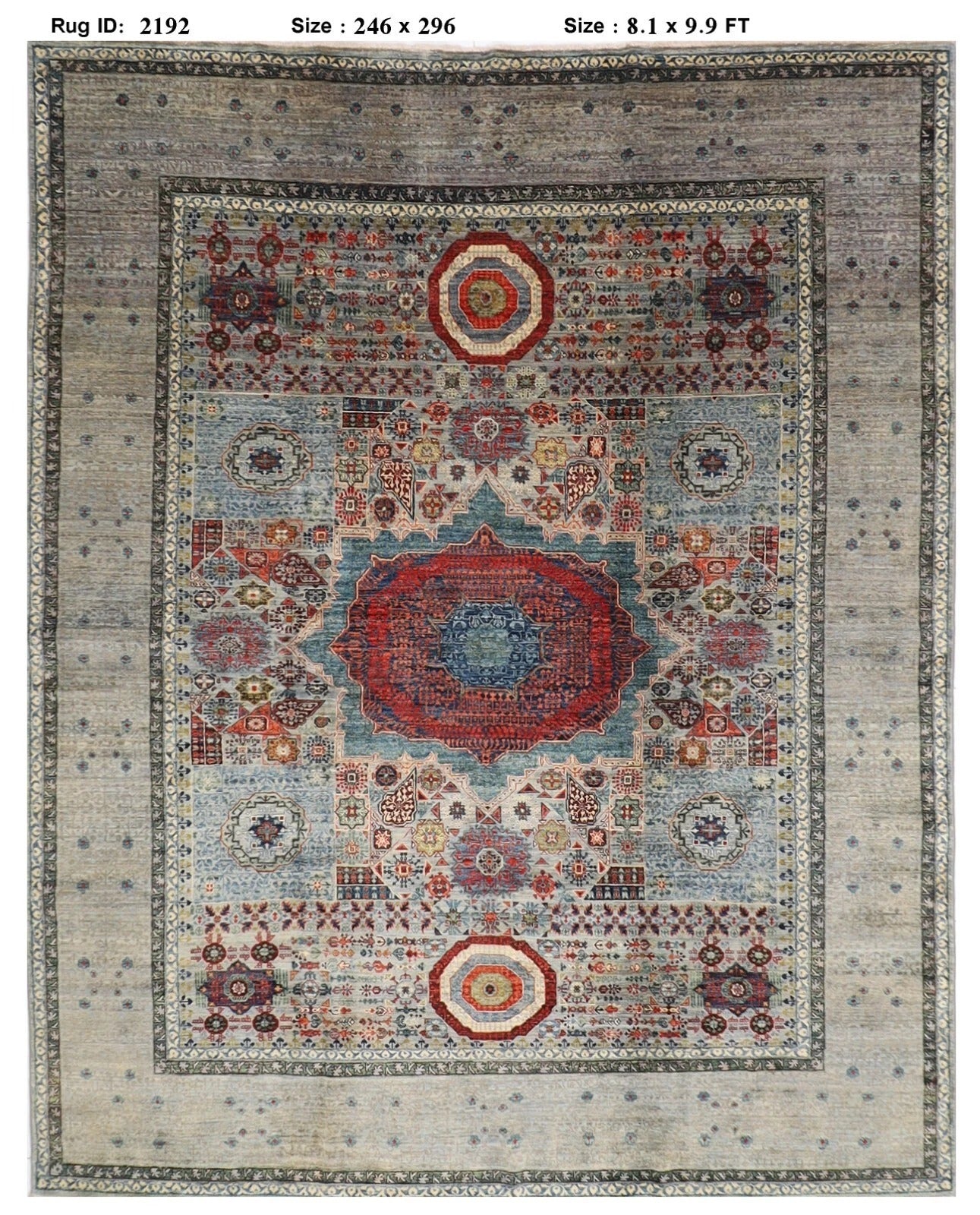 246 x 296 cm | Mamluk Afghan Tribal Hand Knotted Carpet