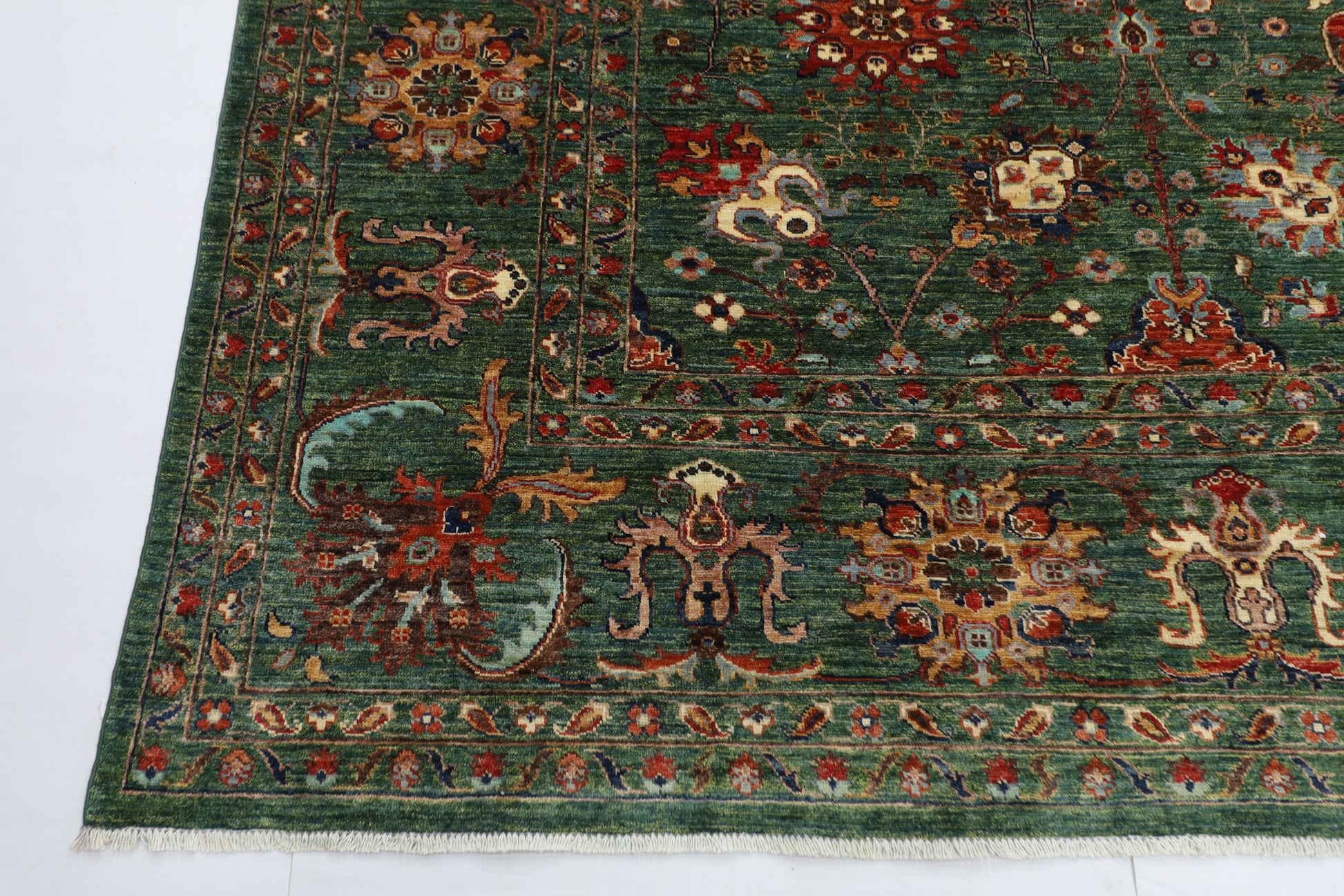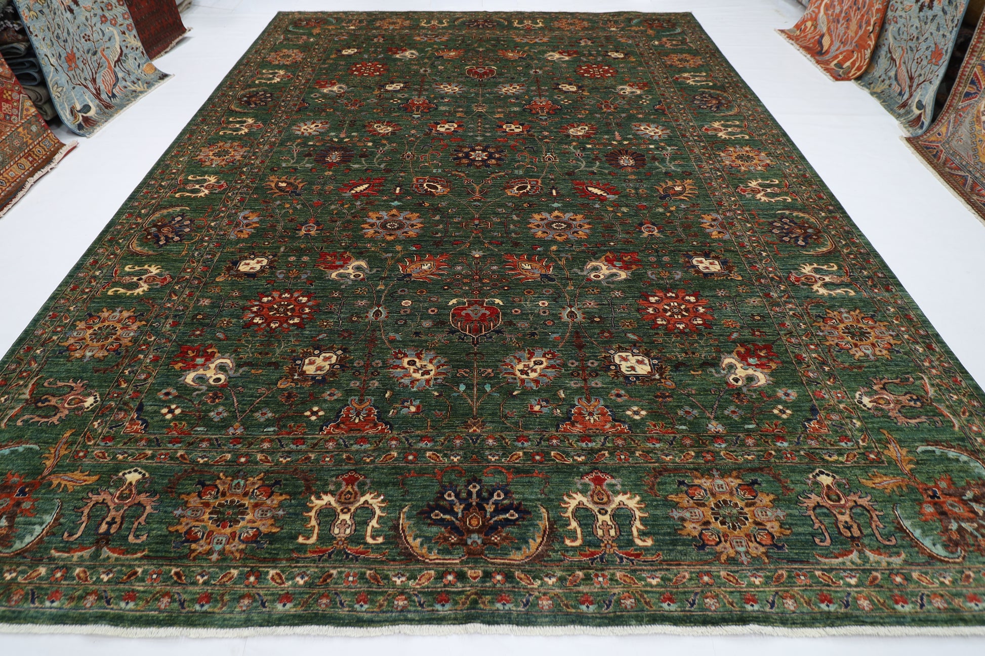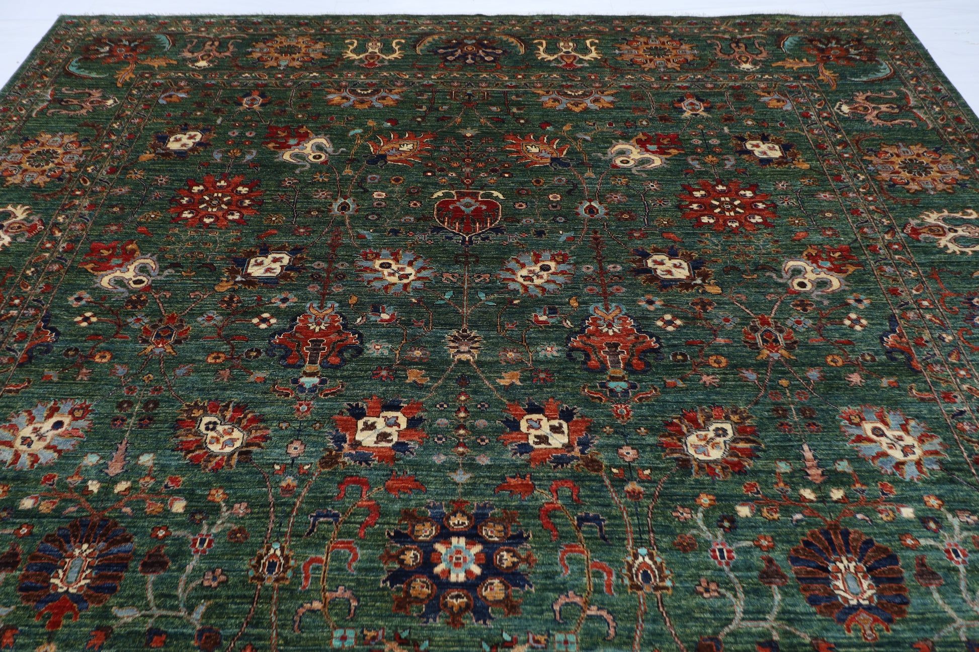 299 x 401 cm | floral Tribal green Area Rug Afghan Hand Knotted veg Dye Wool carpet