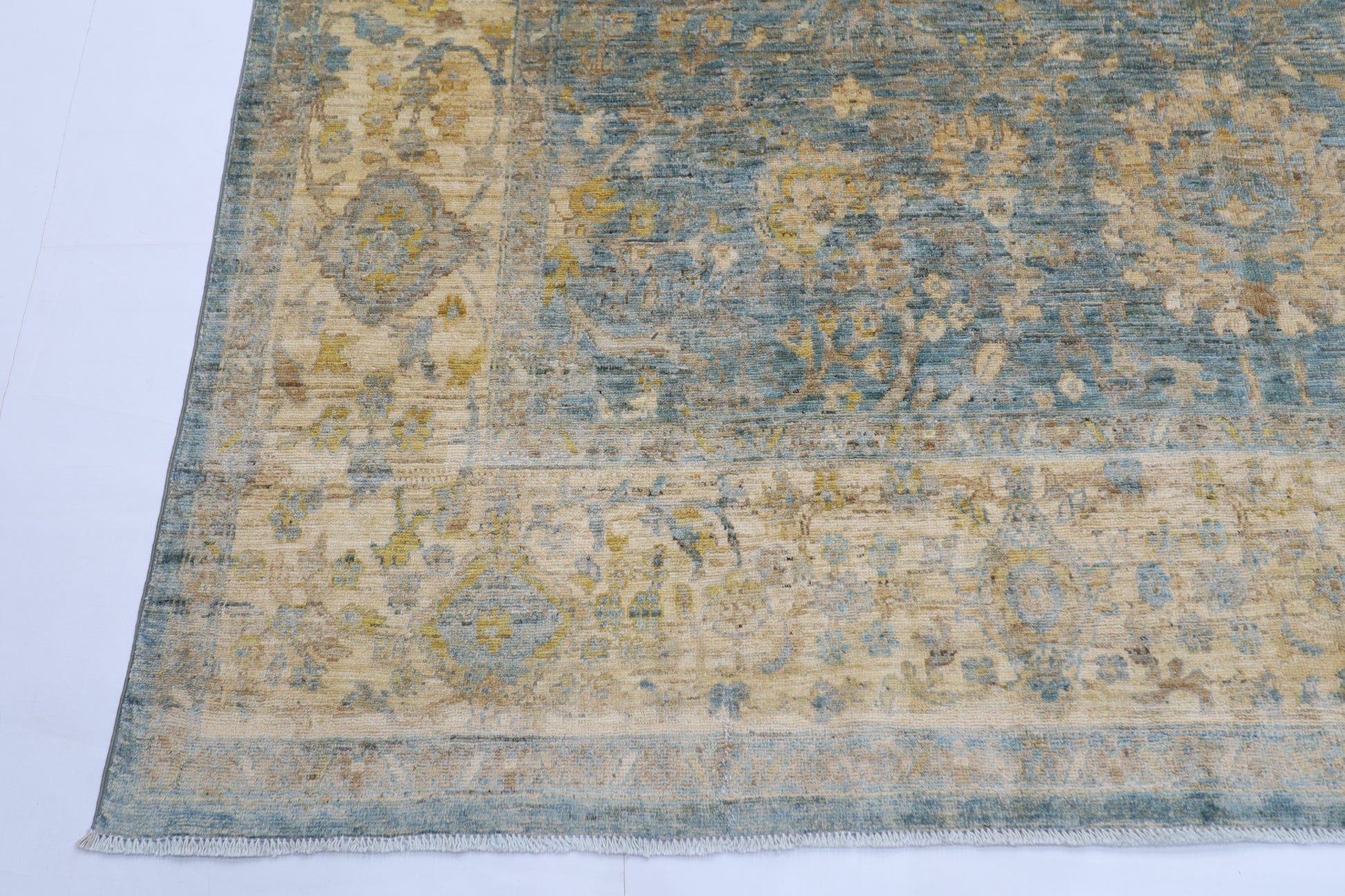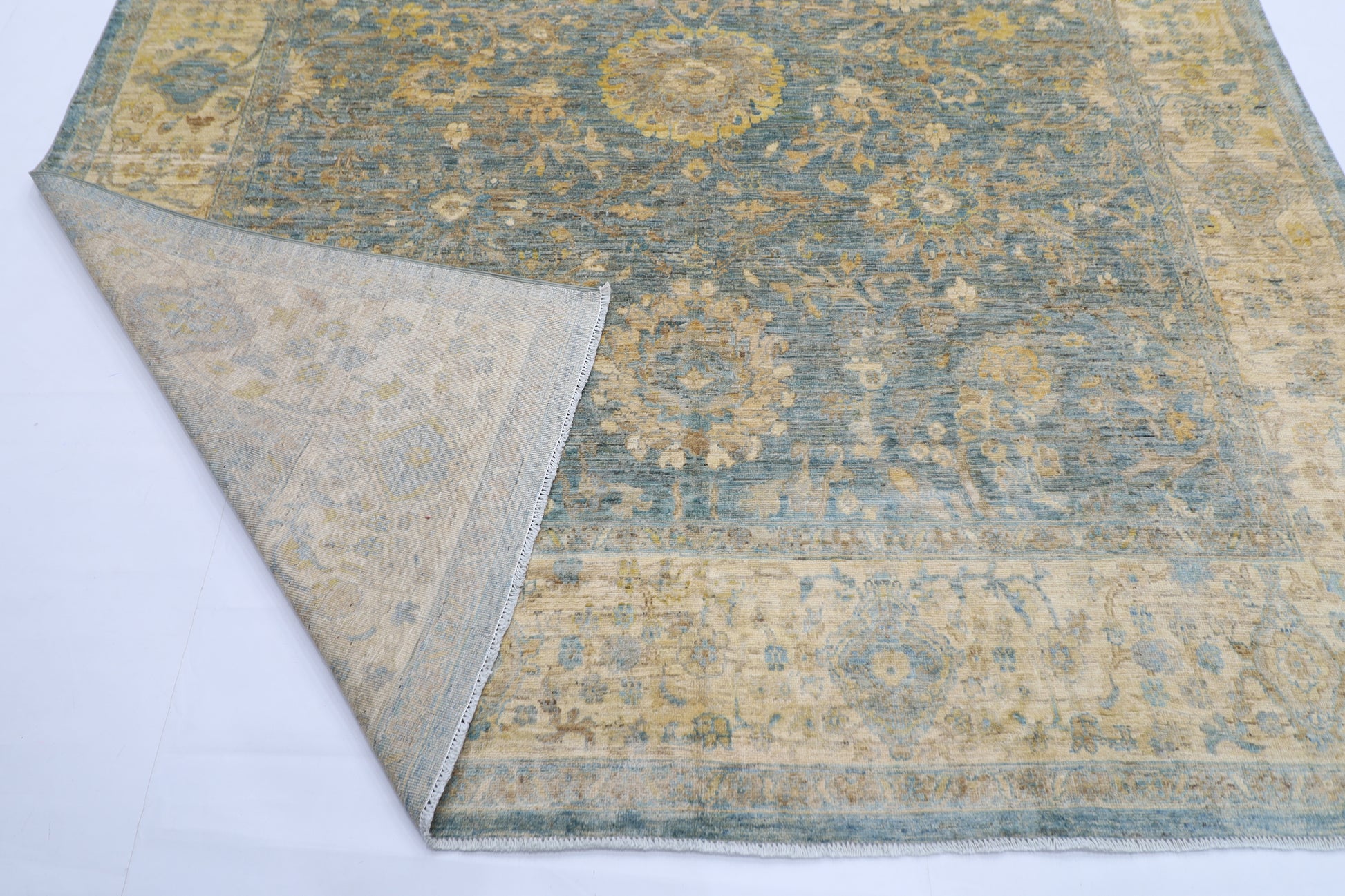 240 x 298 cm | Blue Floral Afghan Tribal Hand Knotted Wool Carpet