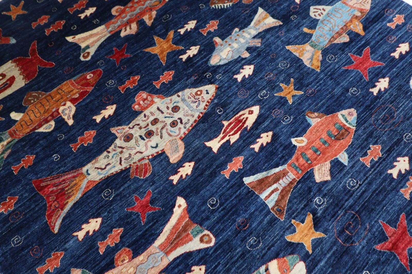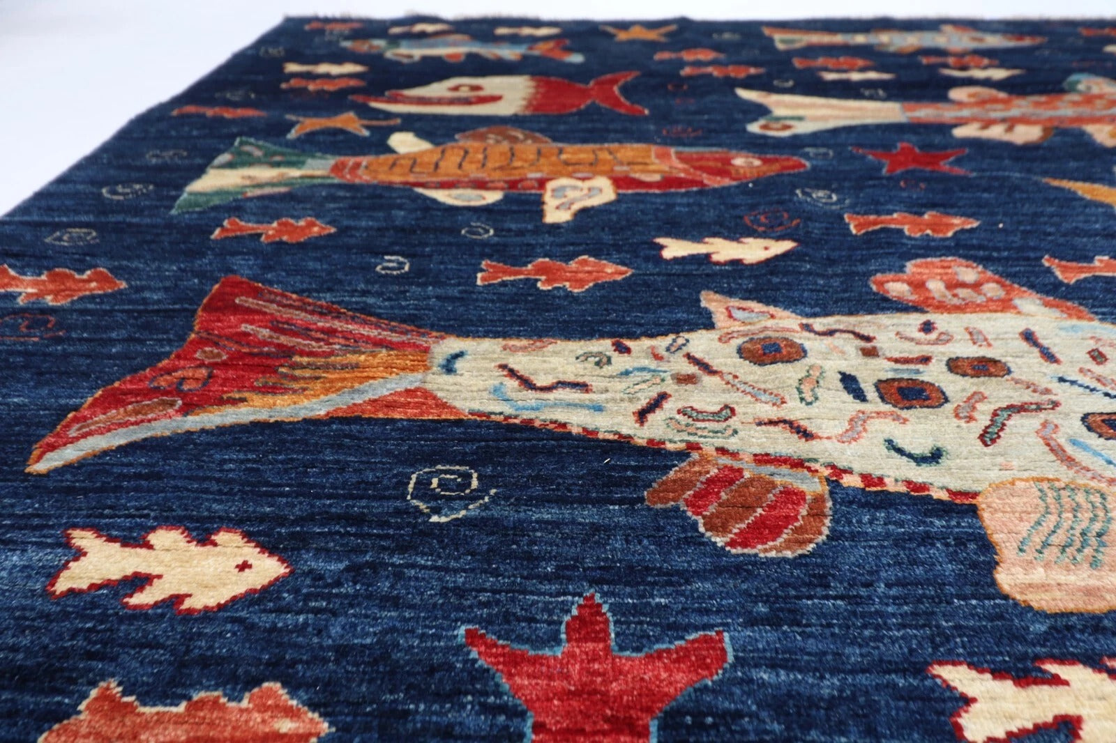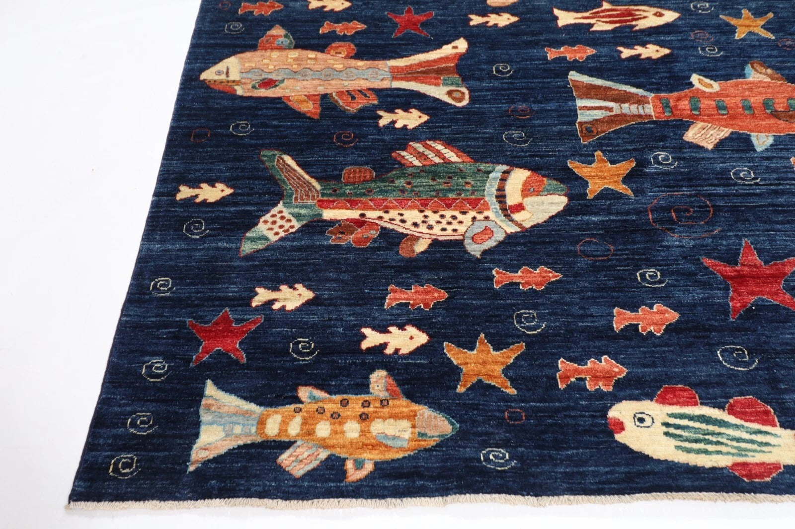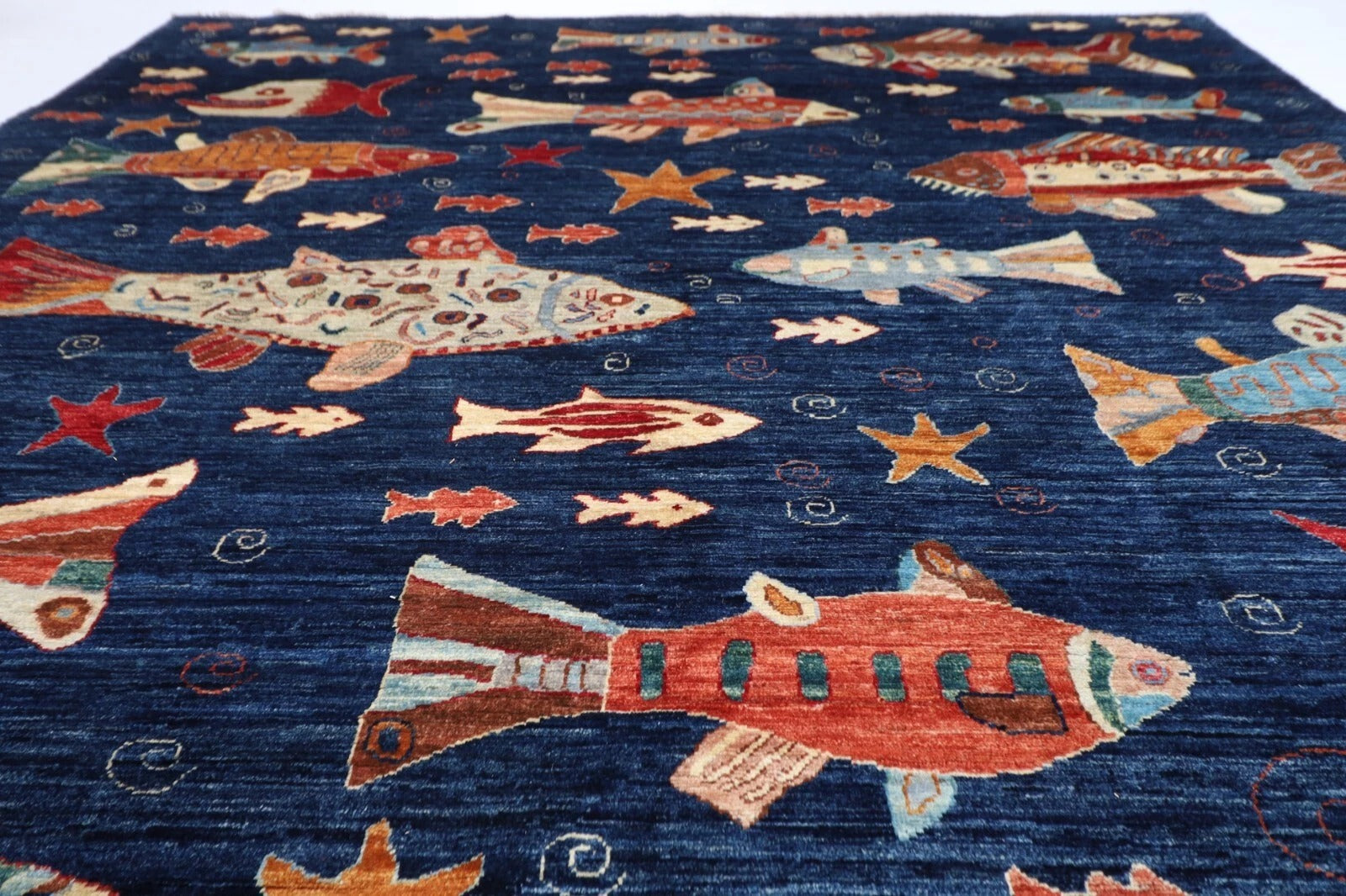 253 x 294 cm | Fish Party Afghan Tribal Hand Knotted Carpet