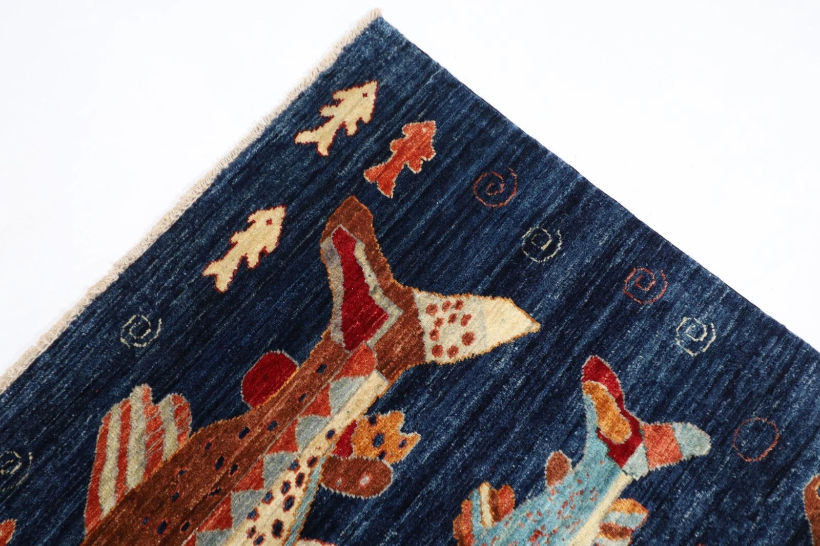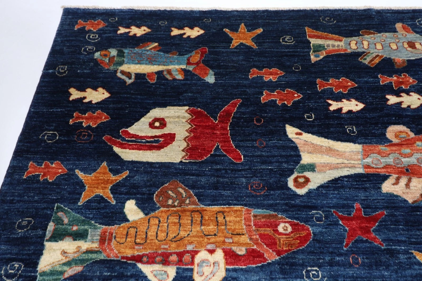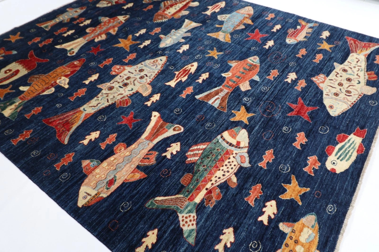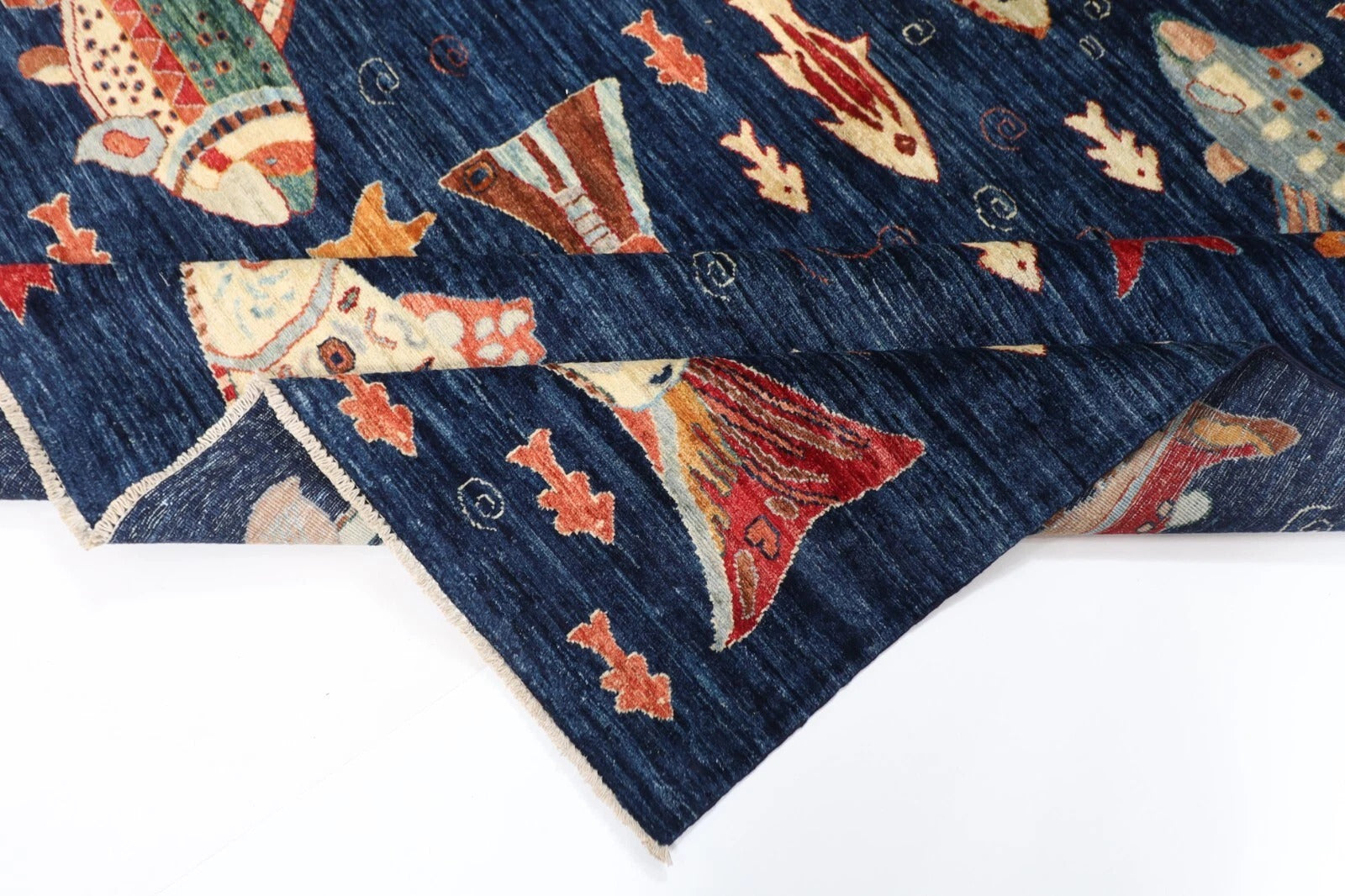253 x 294 cm | Fish Party Afghan Tribal Hand Knotted Carpet