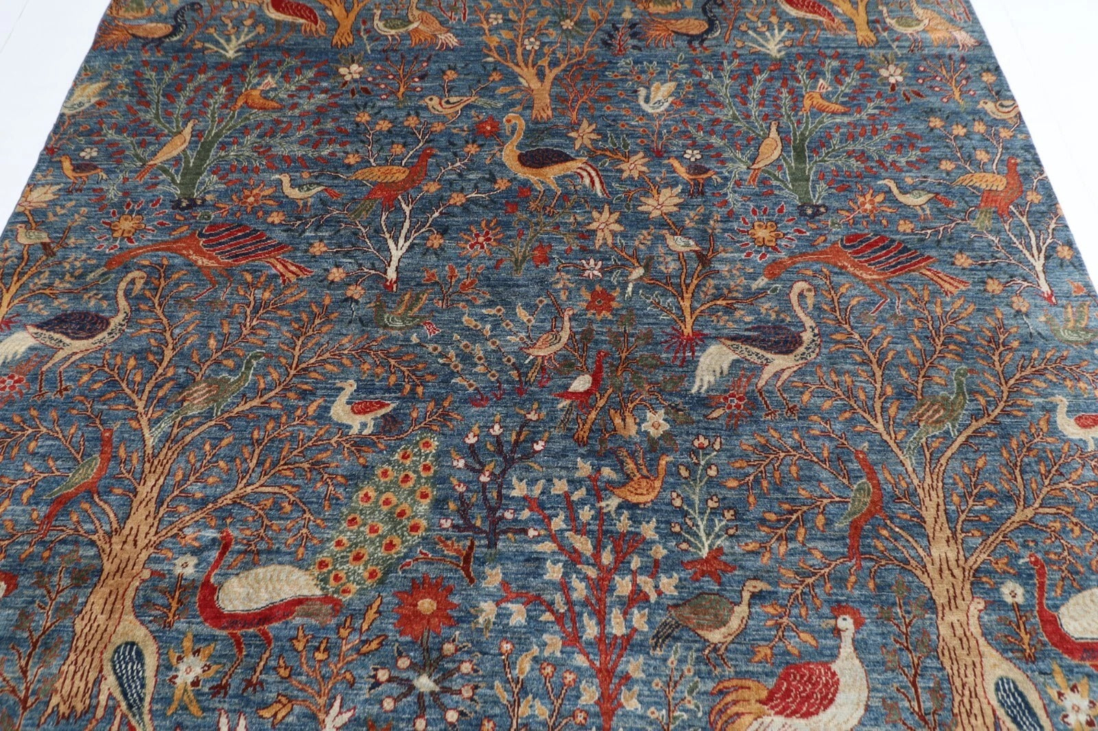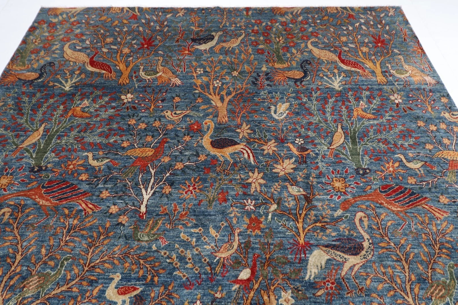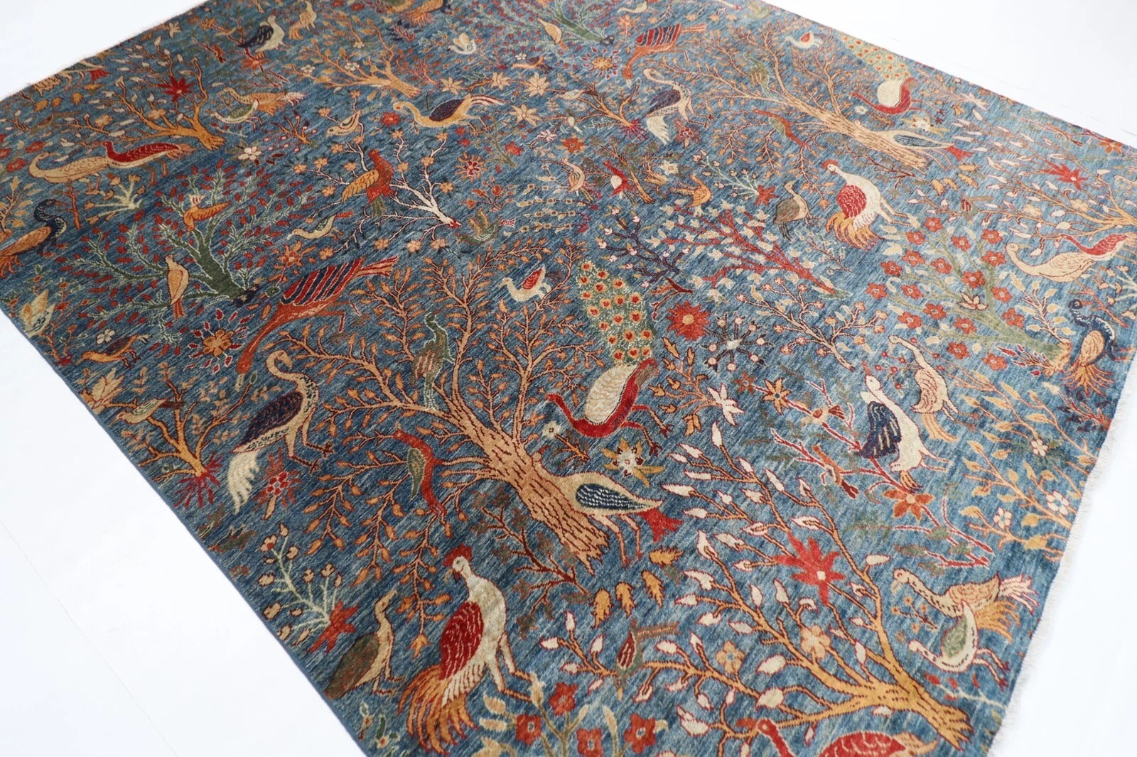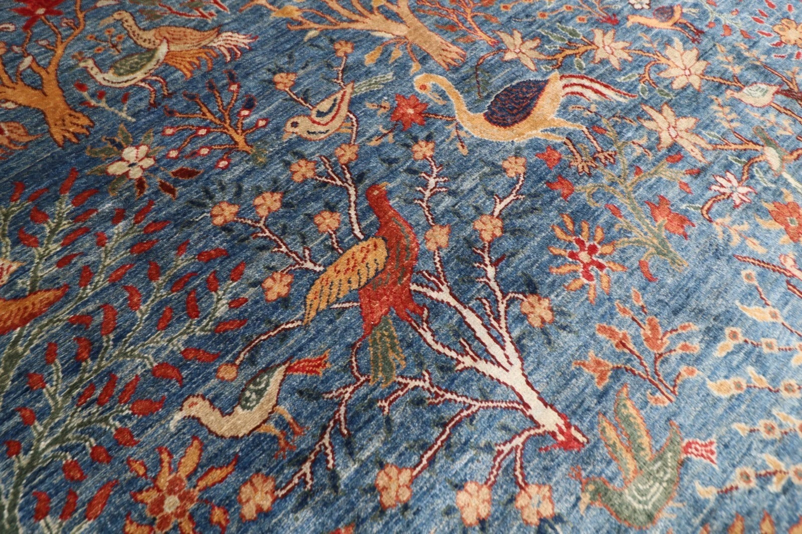 The photographs presented are captured indoor room lights without editing to show the beauty and vibrancy of the rug and also to give you the better idea that how the rug will look in your room and office, the colors in the rug will be perceived differently depending on the angle you view it from.