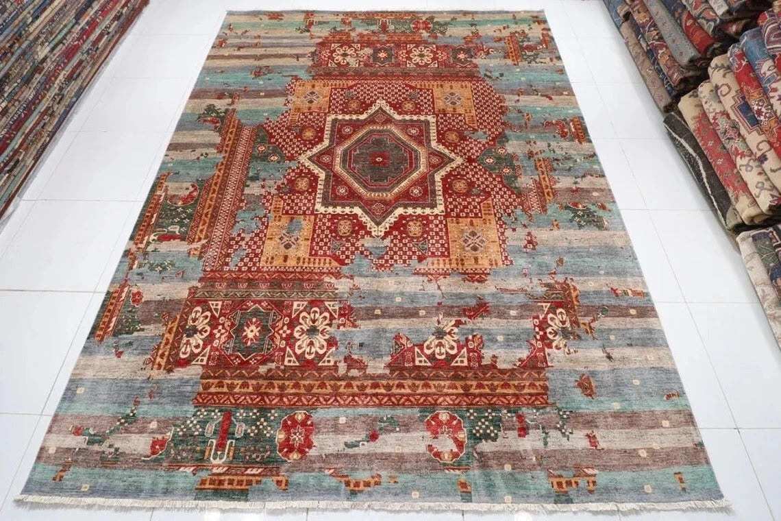 279 x 369 cm | Abstract Mamluk Afghan Hand Knotted Carpet