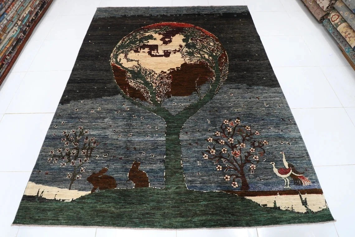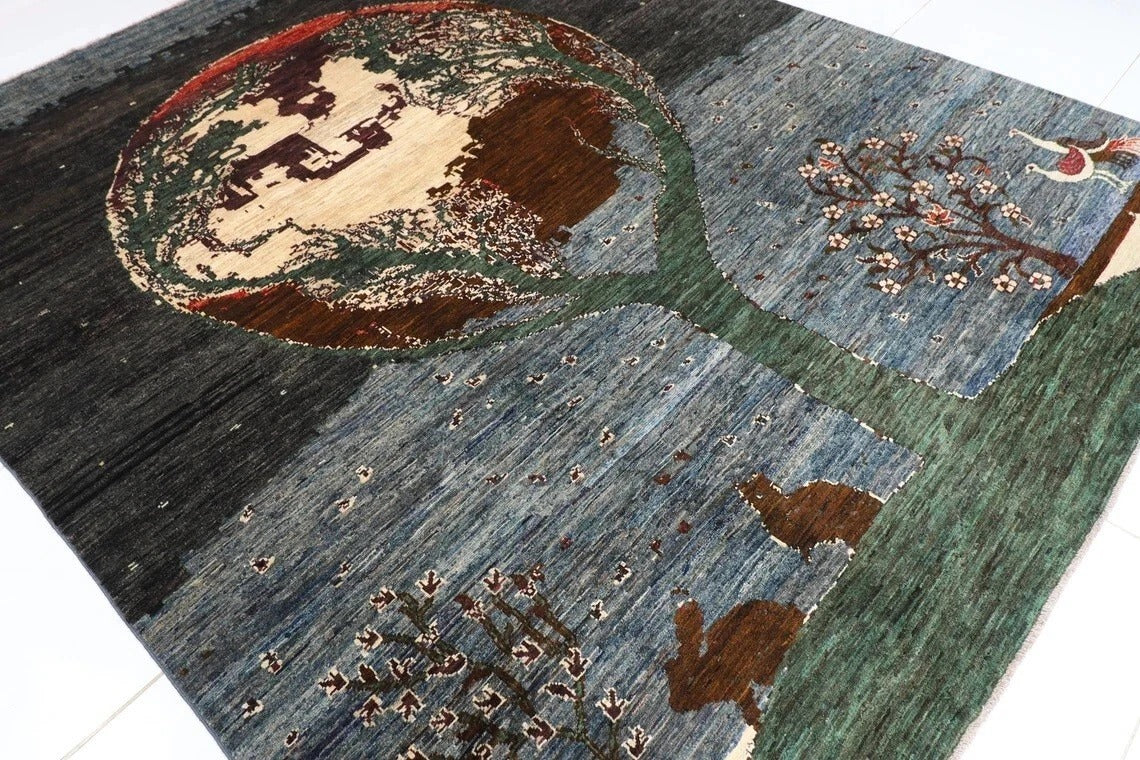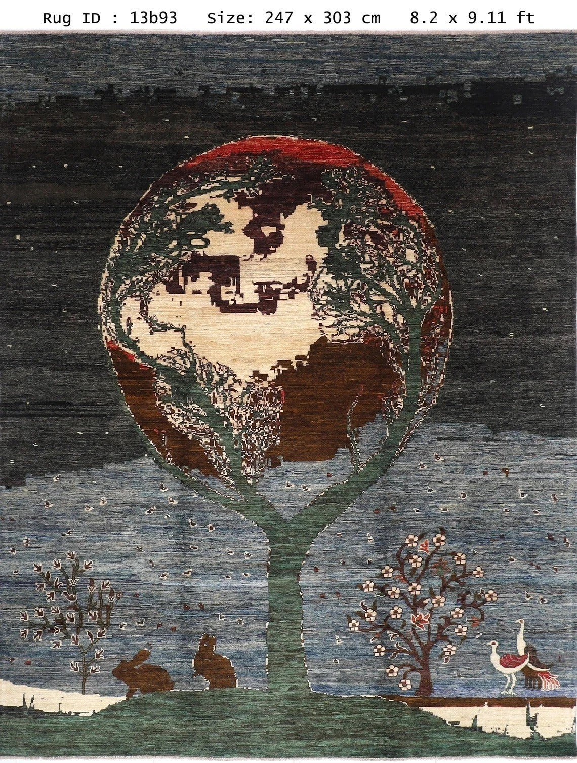 247 x 303 cm | Landscape Gabbeh Afghan Tribal Hand Knotted Carpet