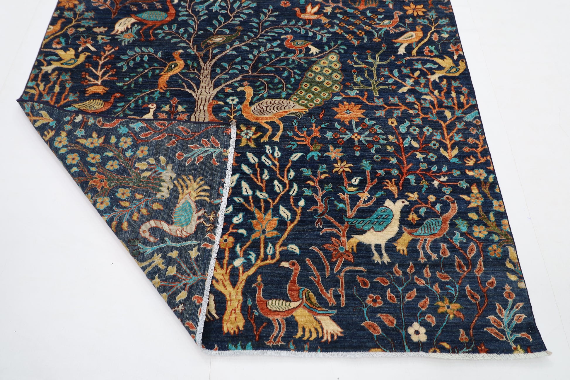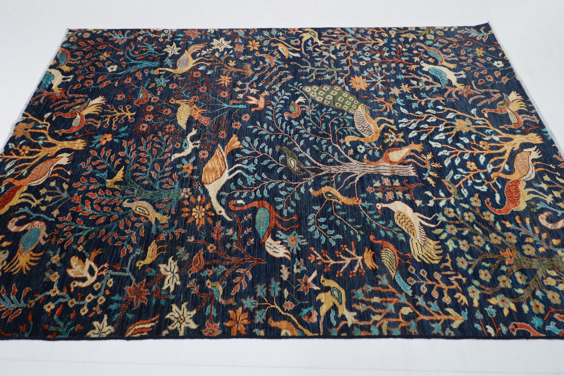 167 x 240 cm | Birds Blue Area Rug Afghan Hand Knotted veg Dye Wool carpet