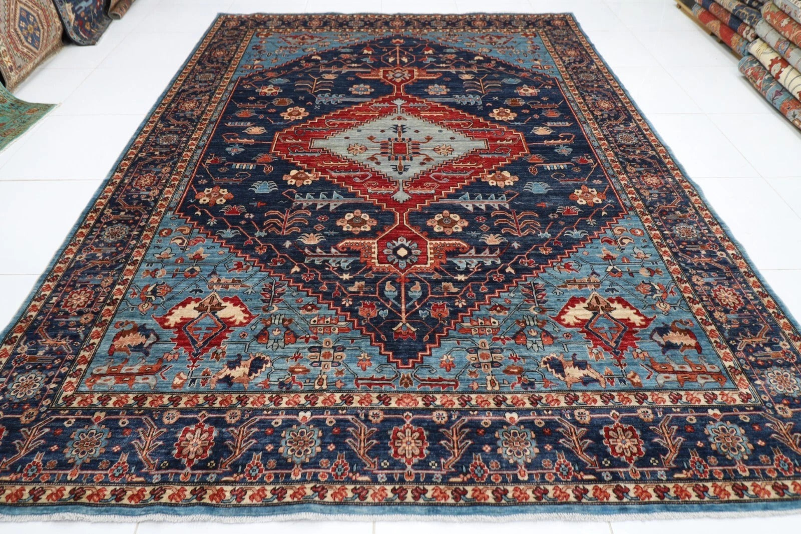 275 x 363 cm | Serapi Navy Afghan Tribal Hand Knotted Carpet