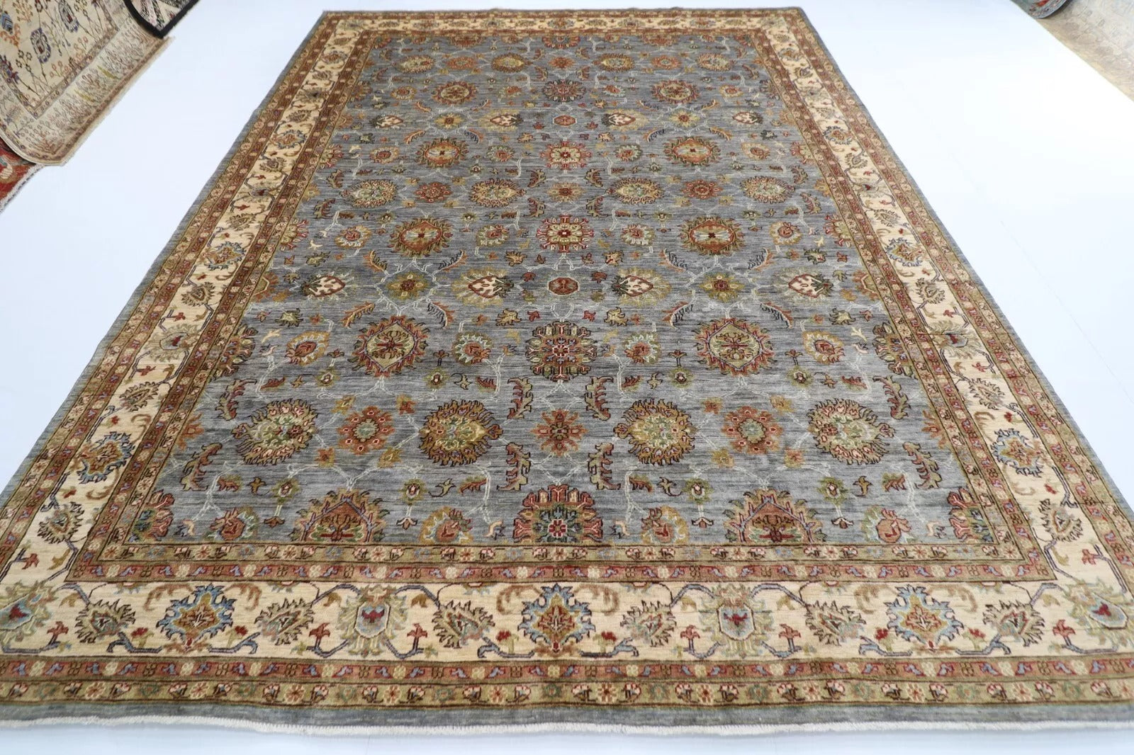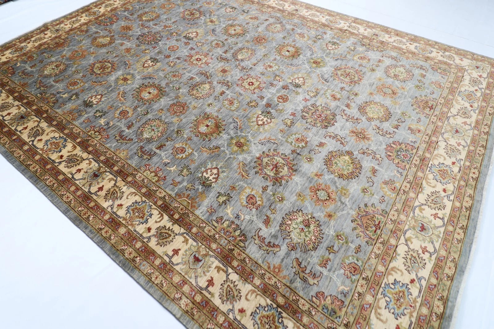 276 x 360 cm | Blueish Grey Afghan Tribal Hand Knotted Carpet